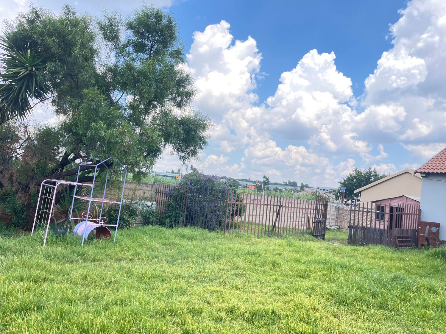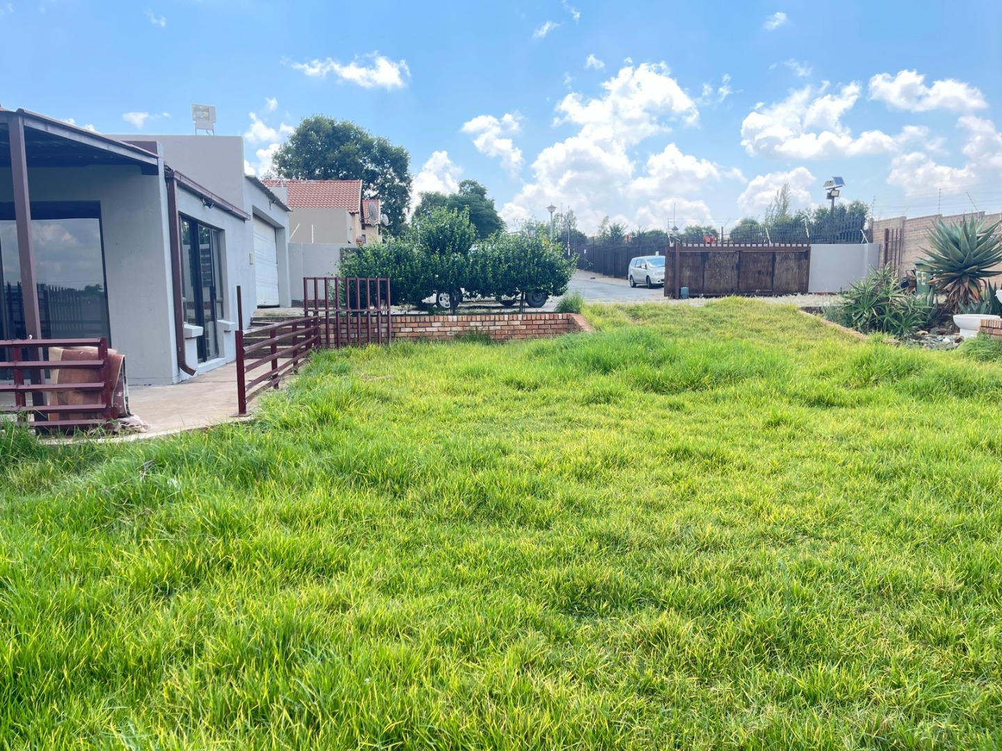 Looking for a place to call home in a secure estate? This lovely 3-bedroom, 2-bathroom house in Albemarle, Germiston, offers a fantastic opportunity to create your dream living space. Step inside and you'll find a welcoming open-plan layout, perfect for family life and entertaining. The kitchen is super practical with its U-shaped design, featuring dark wood-toned cabinets, light countertops, a gas hob, and an electric oven. There's also a double stainless steel sink and plenty of storage, plus a pantry for all your goodies. The living and dining areas flow nicely, making it easy to keep an eye on the kids or chat with guests while you cook. With three comfy bedrooms and two bathrooms, including one ensuite, there’s enough space for everyone to relax. The house is designed for easy living, and you'll appreciate the natural light streaming in through the large windows, which also come with burglar bars for peace of mind. Outside, you've got a massive 1250 sqm erf just waiting for your personal touch. Imagine transforming the spacious, currently overgrown garden into a lush oasis or a fantastic play area for the kids – there's even an old play structure to get you started! The covered patio is ideal for those sunny South African days, and the built-in braai, fire pit, and built-in bar mean you're all set for epic outdoor gatherings. Plus, there's a handy wendy house and a flatlet, offering extra space or potential for rental income. You'll also find a paved driveway leading to two garages and ample open parking for up to six vehicles. Security is a big plus here, with high perimeter walls, electric fencing, an access gate, and 24-hour security within the estate. You'll also benefit from fibre connectivity, keeping you connected to the world. This home is ready for a family to move in and make it their own, offering a blend of comfort, space, and security in a friendly estate setting. Key Features: * 3 Bedrooms, 2 Bathrooms (1 Ensuite) * Open-plan living with lounge and dining areas * Functional kitchen with gas hob and electric oven * Spacious 1250 sqm erf with garden potential * Covered patio with built-in braai, fire pit, and bar * 2 Garages and 6 additional parking spaces * Wendy house and flatlet included * High walls, electric fence, access gate, and 24-hour security * Fibre ready