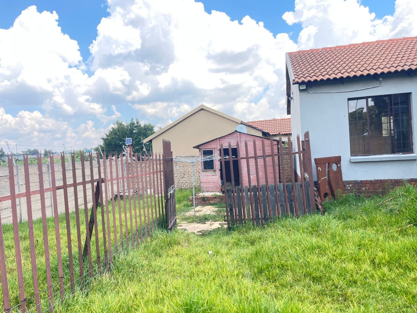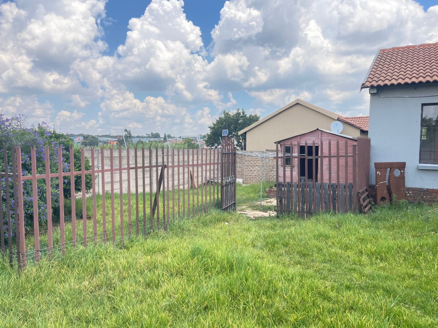 Looking for a place to call home in a secure estate? This lovely 3-bedroom, 2-bathroom house in Albemarle, Germiston, offers a fantastic opportunity to create your dream living space. Step inside and you'll find a welcoming open-plan layout, perfect for family life and entertaining. The kitchen is super practical with its U-shaped design, featuring dark wood-toned cabinets, light countertops, a gas hob, and an electric oven. There's also a double stainless steel sink and plenty of storage, plus a pantry for all your goodies. The living and dining areas flow nicely, making it easy to keep an eye on the kids or chat with guests while you cook. With three comfy bedrooms and two bathrooms, including one ensuite, there’s enough space for everyone to relax. The house is designed for easy living, and you'll appreciate the natural light streaming in through the large windows, which also come with burglar bars for peace of mind. Outside, you've got a massive 1250 sqm erf just waiting for your personal touch. Imagine transforming the spacious, currently overgrown garden into a lush oasis or a fantastic play area for the kids – there's even an old play structure to get you started! The covered patio is ideal for those sunny South African days, and the built-in braai, fire pit, and built-in bar mean you're all set for epic outdoor gatherings. Plus, there's a handy wendy house and a flatlet, offering extra space or potential for rental income. You'll also find a paved driveway leading to two garages and ample open parking for up to six vehicles. Security is a big plus here, with high perimeter walls, electric fencing, an access gate, and 24-hour security within the estate. You'll also benefit from fibre connectivity, keeping you connected to the world. This home is ready for a family to move in and make it their own, offering a blend of comfort, space, and security in a friendly estate setting. Key Features: * 3 Bedrooms, 2 Bathrooms (1 Ensuite) * Open-plan living with lounge and dining areas * Functional kitchen with gas hob and electric oven * Spacious 1250 sqm erf with garden potential * Covered patio with built-in braai, fire pit, and bar * 2 Garages and 6 additional parking spaces * Wendy house and flatlet included * High walls, electric fence, access gate, and 24-hour security * Fibre ready