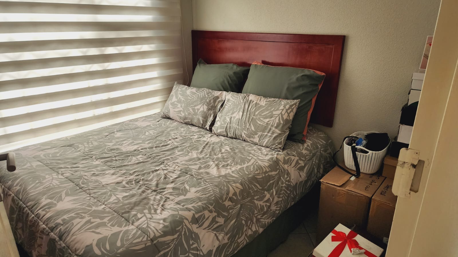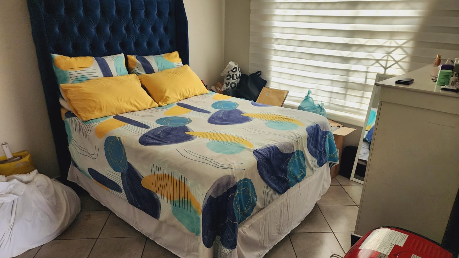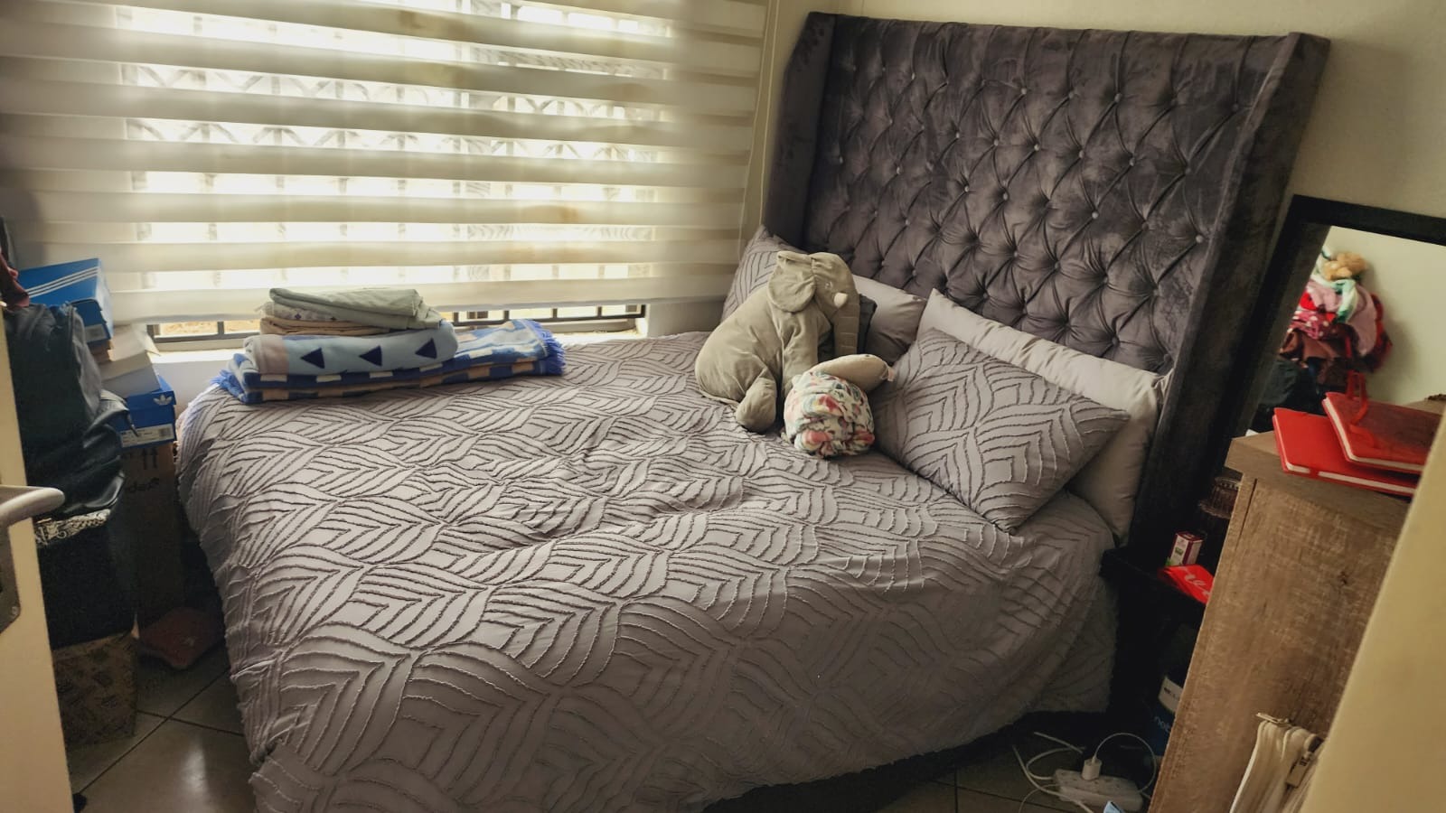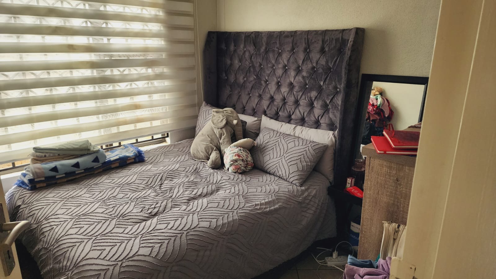 Step inside to find a functional interior designed for comfortable living. The home features tiled flooring throughout, ensuring easy maintenance. The compact kitchen is equipped with a modern stainless steel refrigerator, a practical sink with a tiled backsplash, and light wood-effect cabinetry, providing essential amenities for daily meal preparation. While currently featuring a portable gas stove, this space offers potential for future upgrades to suit your culinary preferences. The living area provides a versatile space, ready to be furnished to your taste, complete with window blinds for privacy and light control.The house does not have fitted warddrobes in the bedrooms.