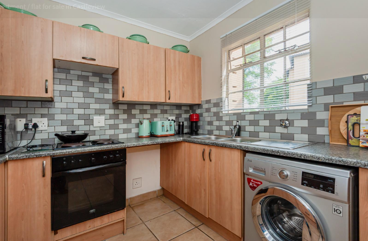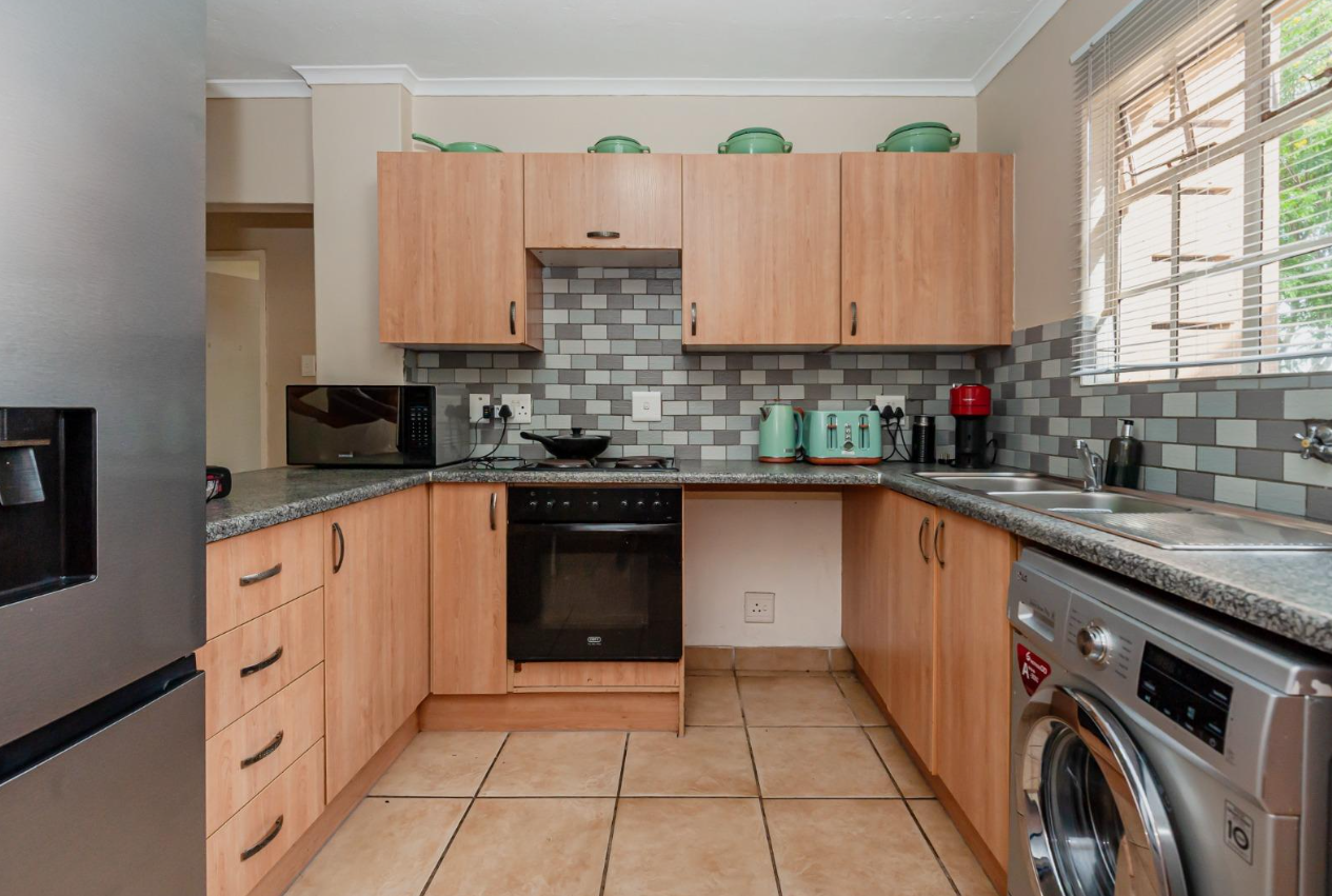 A well-sized kitchen with ample cupboard space,
