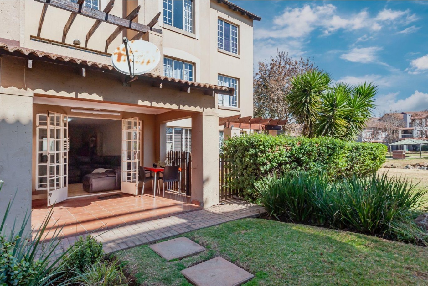 This lovely ground?floor unit offers a light?filled lounge, a spacious kitchen with granite tops, ample cupboard and appliance space, and three well?sized bedrooms with built?in cupboards. Two bathrooms, including an en?suite, add convenience, while a covered patio and private fenced garden (pet?friendly with body corporate approval) create the perfect outdoor retreat.