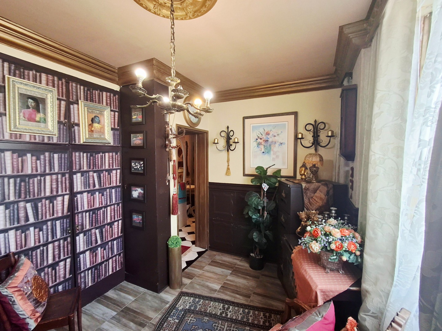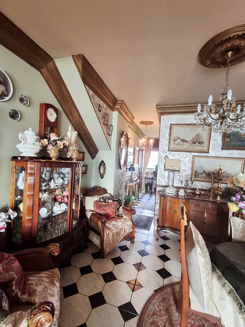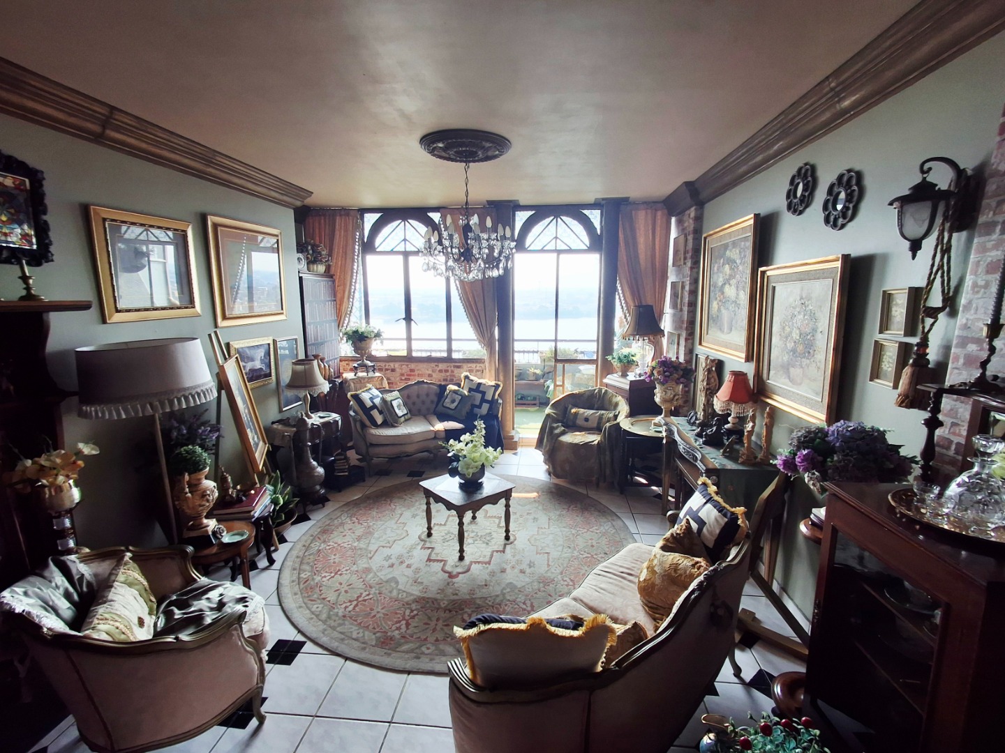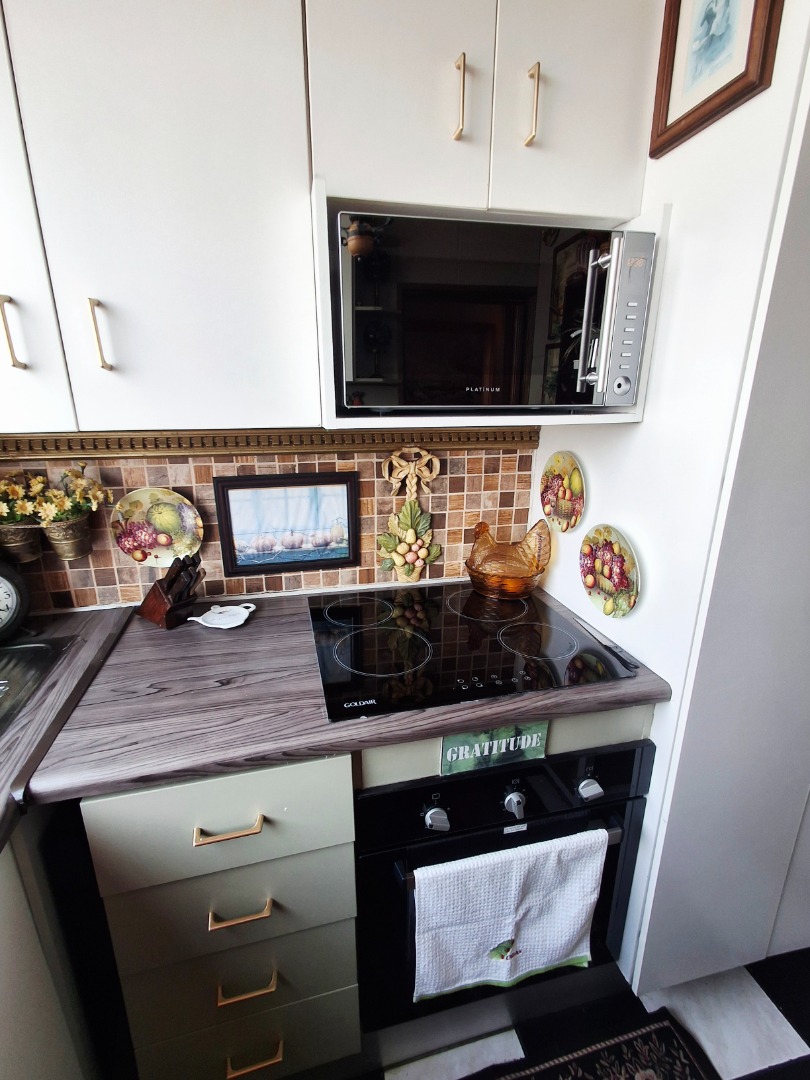 Inside, this well-appointed residence offers an open-plan layout encompassing three comfortable bedrooms and two bathrooms. The living spaces include a dedicated lounge, a dining room, and an additional family TV room, providing ample space for relaxation and entertainment. The kitchen boasts modern white cabinetry and practical wicker-fronted storage drawers, catering to contemporary needs. A special balcony feature provides a quaint nook with scenic outdoor views, perfect for enjoying quiet moments.