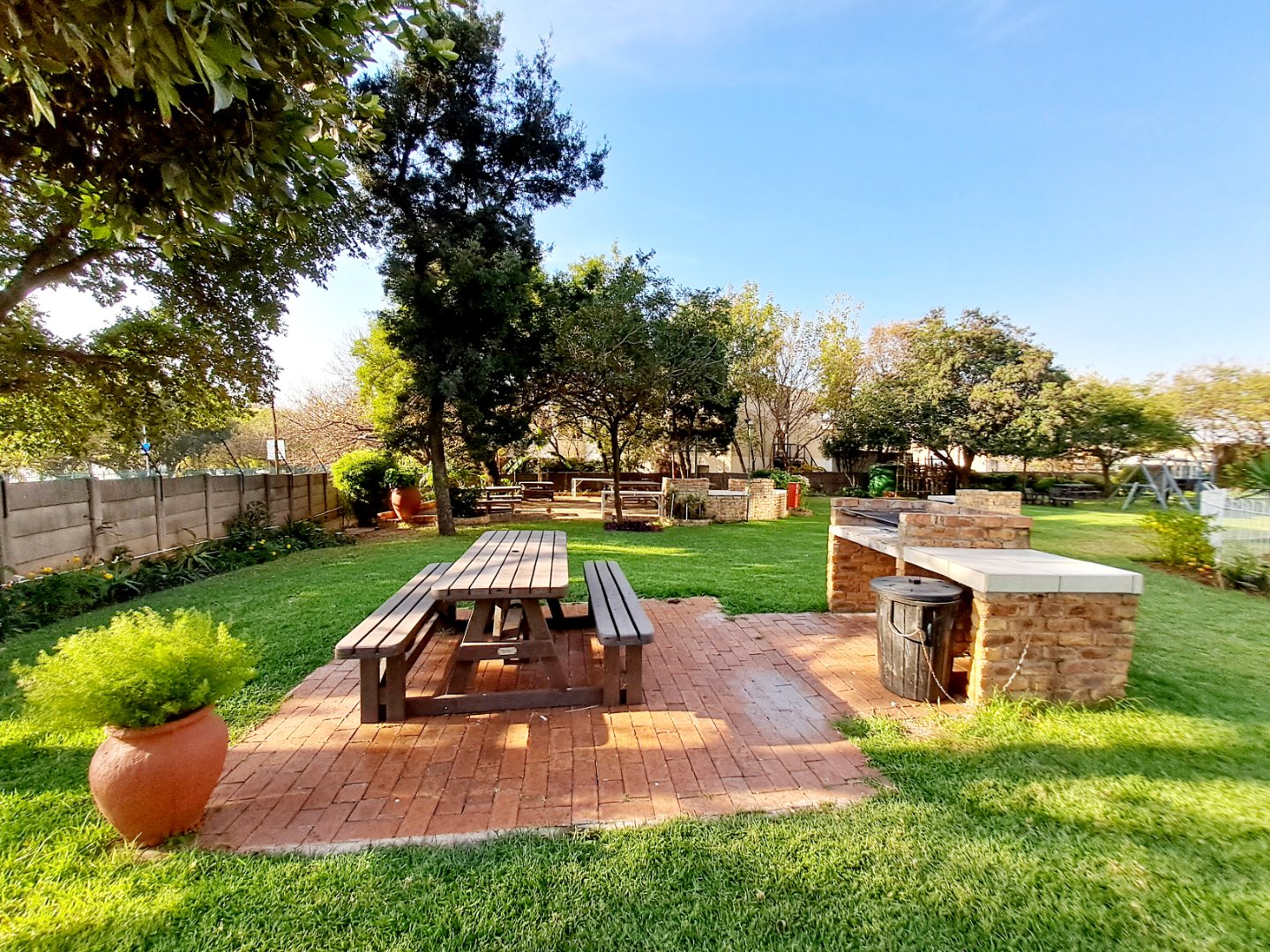 Residents can enjoy a host of lifestyle amenities, including a communal swimming pool, a lapa, and a built-in braai area, ideal for outdoor gatherings. The property also benefits from a garden and a dedicated parking bay. Pets are allowed, adding to the home's appeal. Security is paramount with 24-hour surveillance, an access gate, security post, and burglar bars, all within a totally walled complex. Fibre connectivity is available, ensuring high-speed internet access.