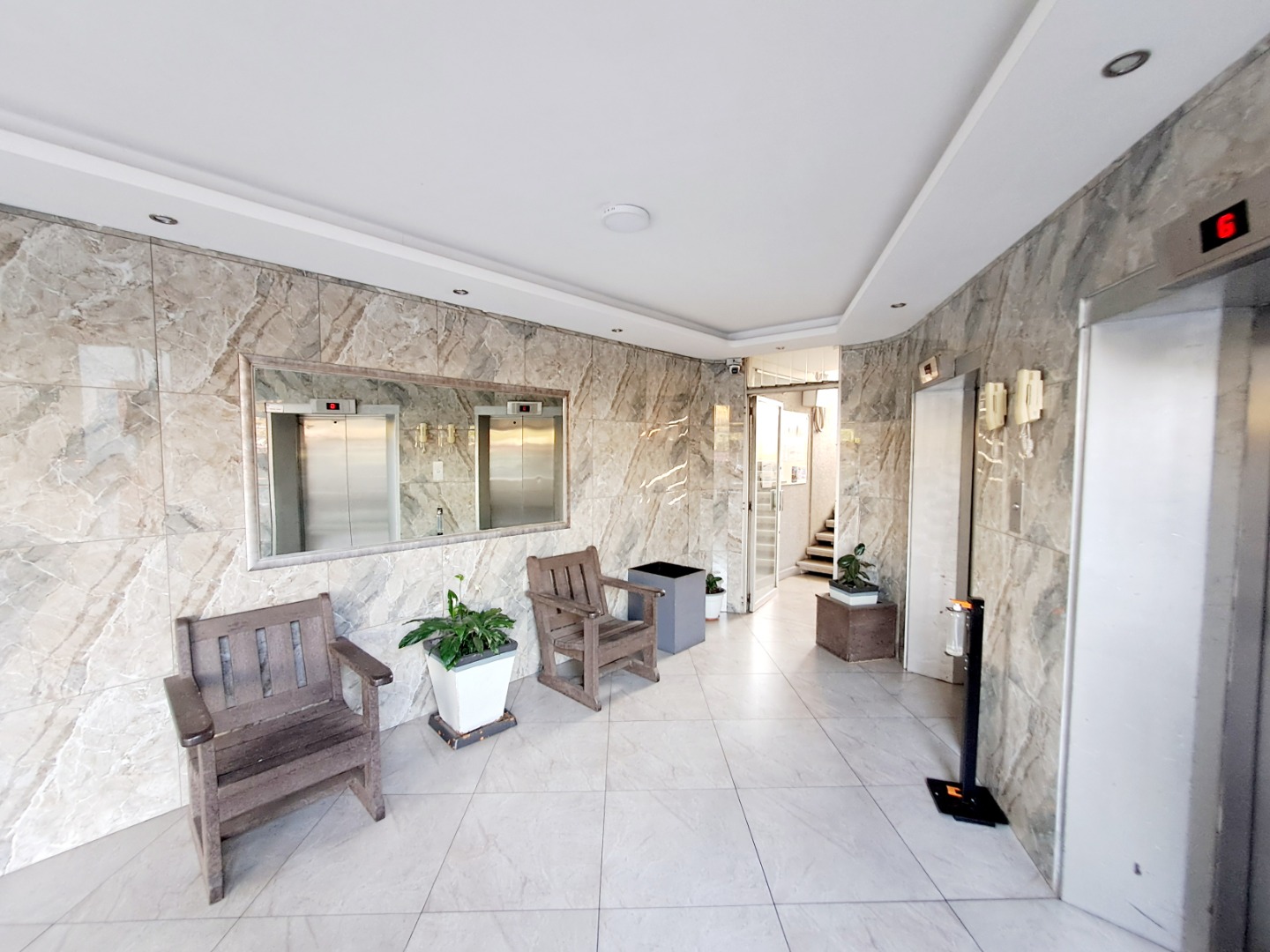 Discover modern living in this spacious 107 sqm apartment, ideally situated within a secure estate in the suburban Denlee area of Germiston. The building itself presents a distinctive curved architectural design, complemented by a welcoming lobby featuring marble-patterned walls, clean tiled floors, and efficient stainless steel elevators. Recessed lighting and a security camera enhance the common areas, which are also wheelchair-friendly, ensuring accessibility for all residents.