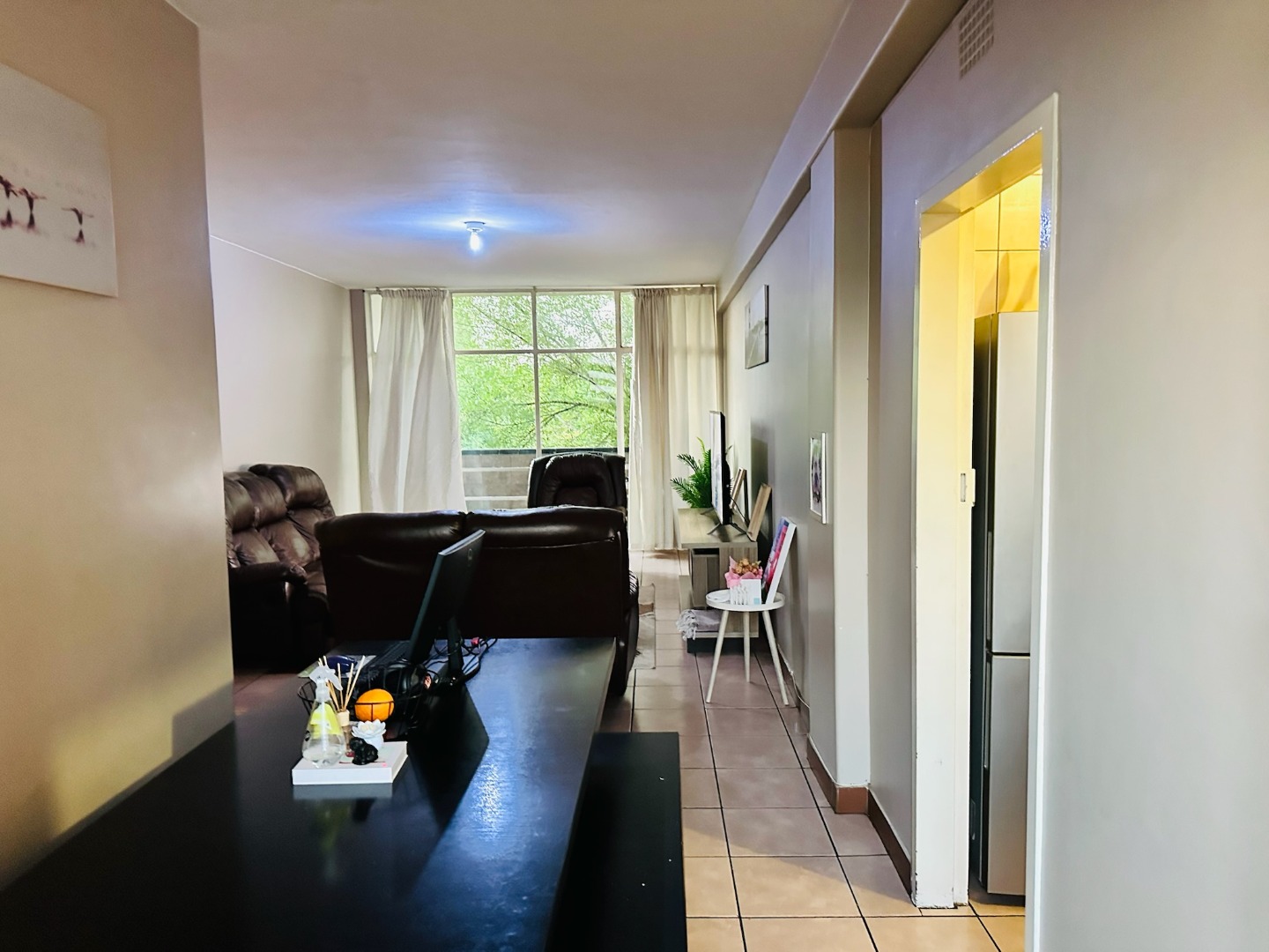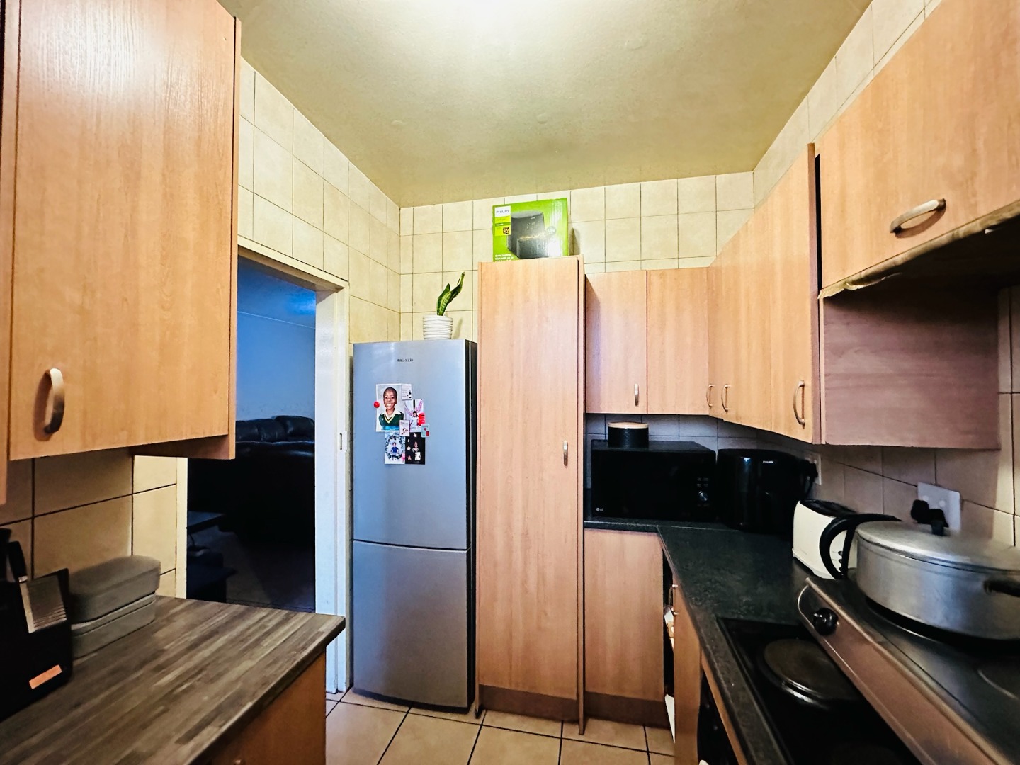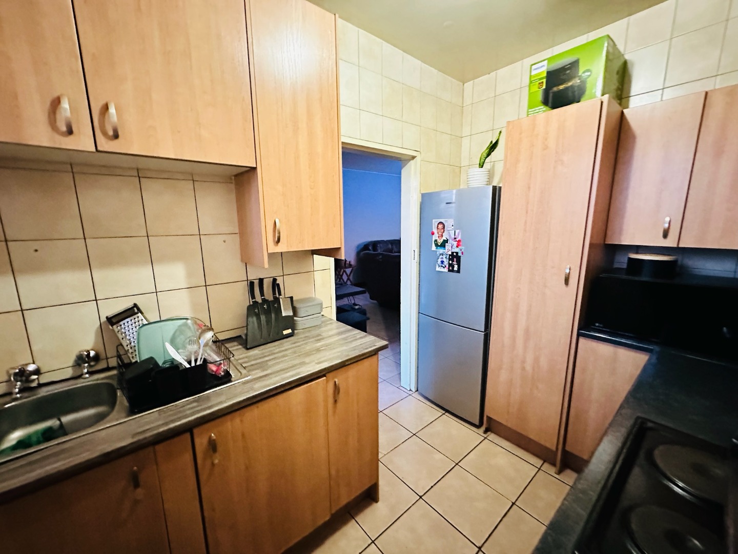 Discover this well-appointed apartment located in the established suburb of Dinwiddie, Germiston. This residential offering provides a practical and secure living environment, ideal for individuals or small families seeking convenience and comfort. The interior features a functional kitchen equipped with light wood-toned cabinetry, dark countertops, and tiled floors and walls, ensuring easy maintenance. It includes a built-in oven and hob, ample storage, and space for a modern stainless steel refrigerator. The spacious living area is bathed in natural light, boasting tiled flooring and providing direct access to a private balcony, perfect for enjoying the outdoors. This apartment comprises two comfortable bedrooms and 1.5 bathrooms, offering adequate space for daily living. While specific details on bedroom finishes are not provided, the overall aesthetic is designed for practicality and ease of upkeep. Residents benefit from robust security measures within the complex, including a secure gated entrance, perimeter fencing, electric wiring, and barbed wire, ensuring peace of mind. The property also offers ample off-street parking, with two dedicated parking spaces available, and features a well-maintained communal lawn area with mature trees, enhancing the outdoor appeal. Situated in Dinwiddie, Germiston, this property offers a suburban lifestyle with convenient access to local amenities and transport routes. The multi-story brick construction of "Casa Santiago" presents a functional and enduring kerb appeal. Key Features: * Two bedrooms, 1.5 bathrooms * Functional kitchen with built-in oven/hob * Spacious living area with balcony access * Secure gated complex with electric fencing * Two dedicated parking spaces * Communal lawn area with mature trees * Tiled flooring throughout living spaces * Located in Dinwiddie, Germiston