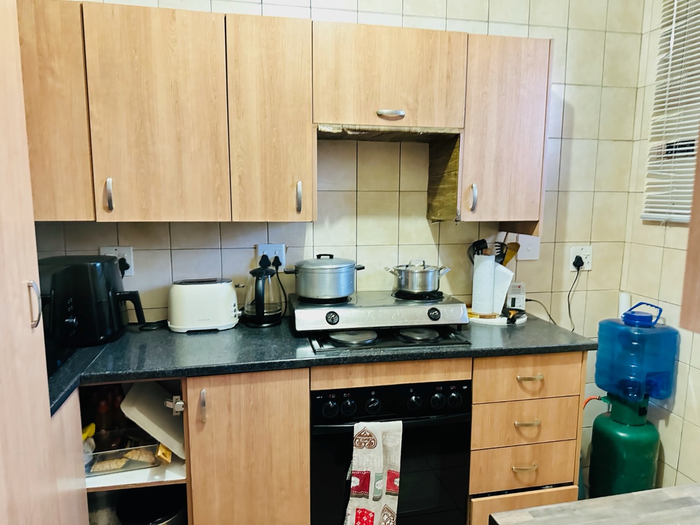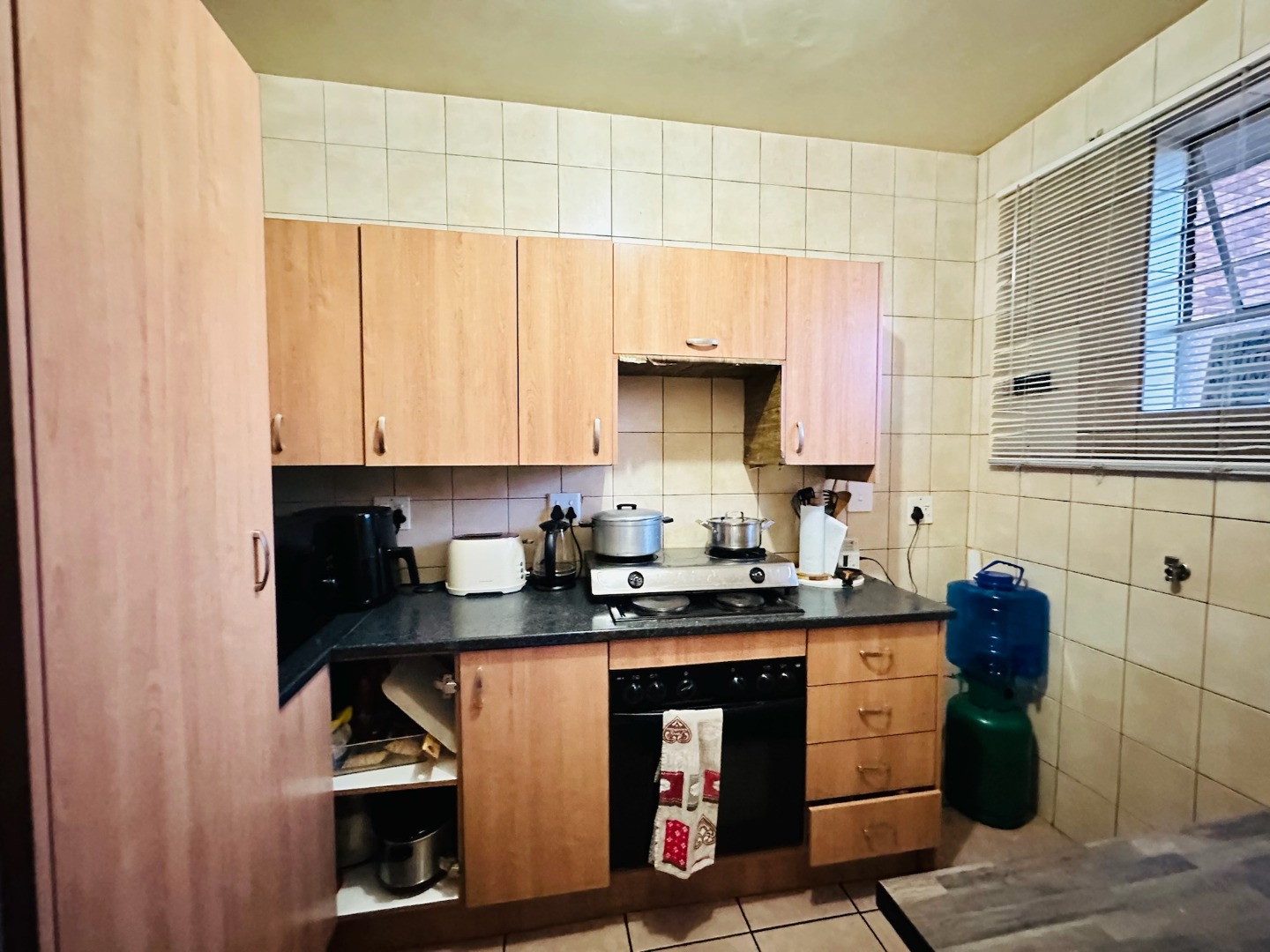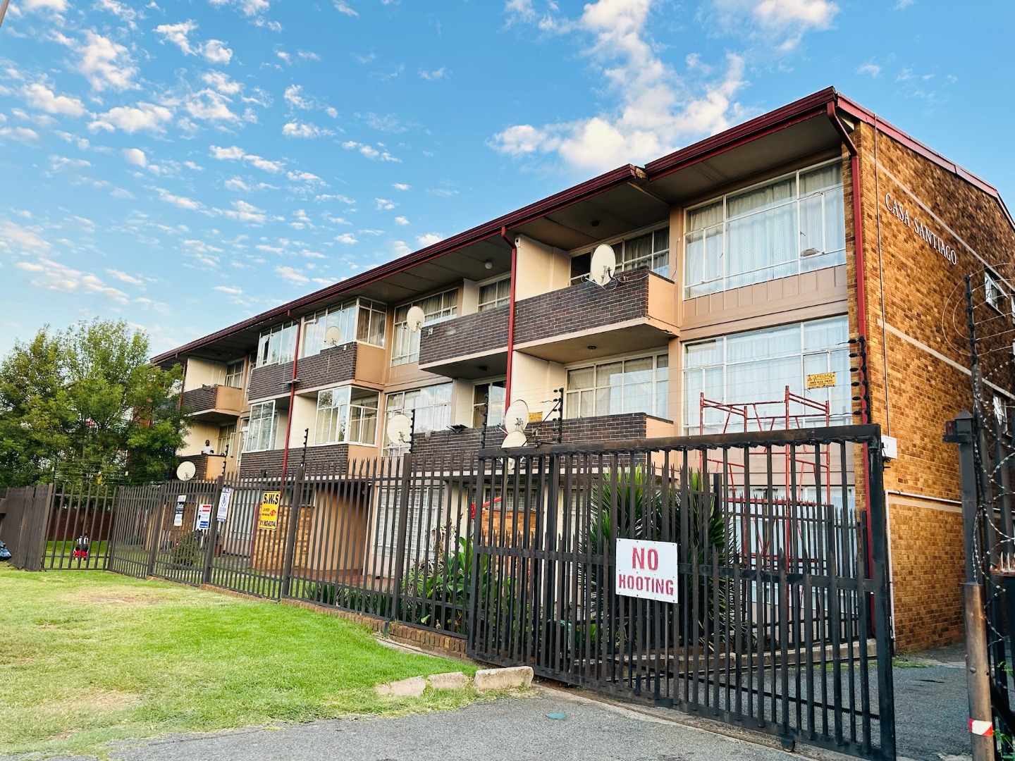 Discover this well-appointed apartment located in the established suburb of Dinwiddie, Germiston. This residential offering provides a practical and secure living environment, ideal for individuals or small families seeking convenience and comfort. The interior features a functional kitchen equipped with light wood-toned cabinetry, dark countertops, and tiled floors and walls, ensuring easy maintenance. It includes a built-in oven and hob, ample storage, and space for a modern stainless steel refrigerator. The spacious living area is bathed in natural light, boasting tiled flooring and providing direct access to a private balcony, perfect for enjoying the outdoors. This apartment comprises two comfortable bedrooms and 1.5 bathrooms, offering adequate space for daily living. While specific details on bedroom finishes are not provided, the overall aesthetic is designed for practicality and ease of upkeep. Residents benefit from robust security measures within the complex, including a secure gated entrance, perimeter fencing, electric wiring, and barbed wire, ensuring peace of mind. The property also offers ample off-street parking, with two dedicated parking spaces available, and features a well-maintained communal lawn area with mature trees, enhancing the outdoor appeal. Situated in Dinwiddie, Germiston, this property offers a suburban lifestyle with convenient access to local amenities and transport routes. The multi-story brick construction of "Casa Santiago" presents a functional and enduring kerb appeal. Key Features: * Two bedrooms, 1.5 bathrooms * Functional kitchen with built-in oven/hob * Spacious living area with balcony access * Secure gated complex with electric fencing * Two dedicated parking spaces * Communal lawn area with mature trees * Tiled flooring throughout living spaces * Located in Dinwiddie, Germiston