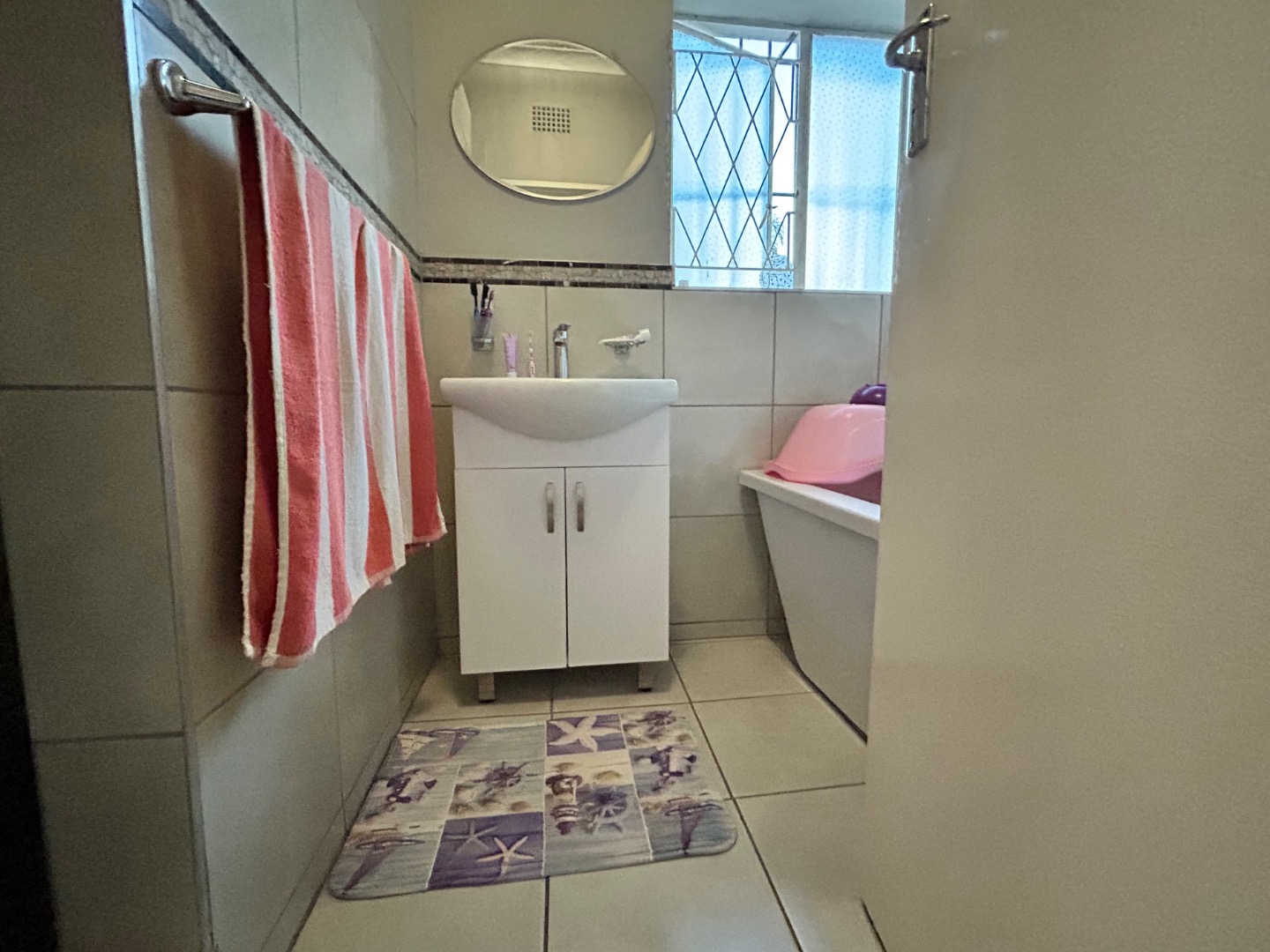 Discover this inviting 3-bedroom, 1.5-bathroom family home situated in the established suburban area of Dinwiddie, Germiston. The property immediately presents a sense of security and neatness, featuring a gated entry with a paved driveway leading to a well-maintained front lawn and a clean exterior with white walls and a grey tiled roof. Enhanced security is provided by a sturdy precast fence and window bars, ensuring peace of mind for residents.