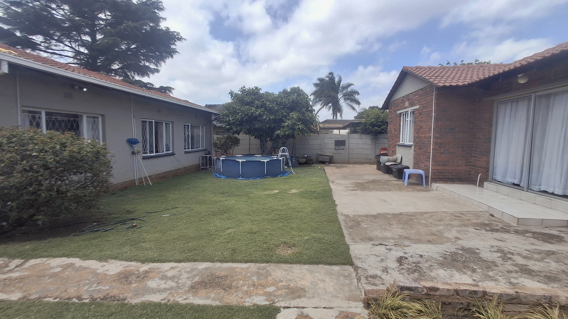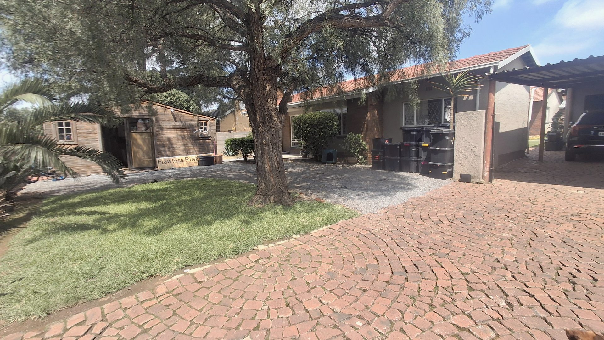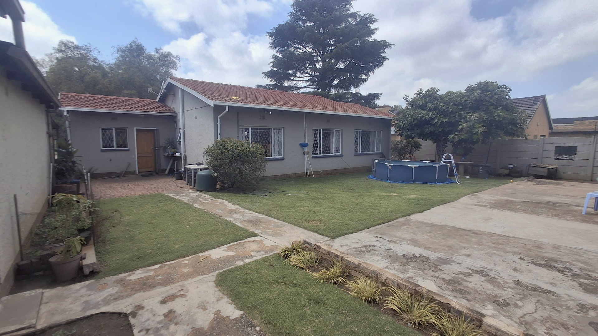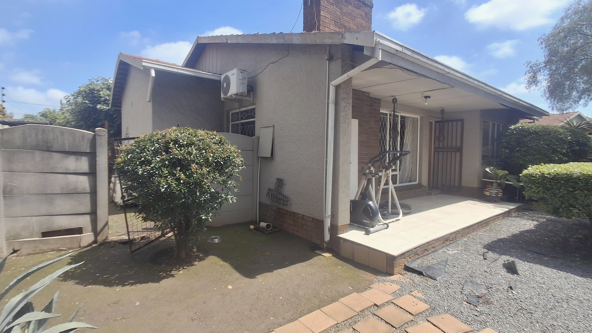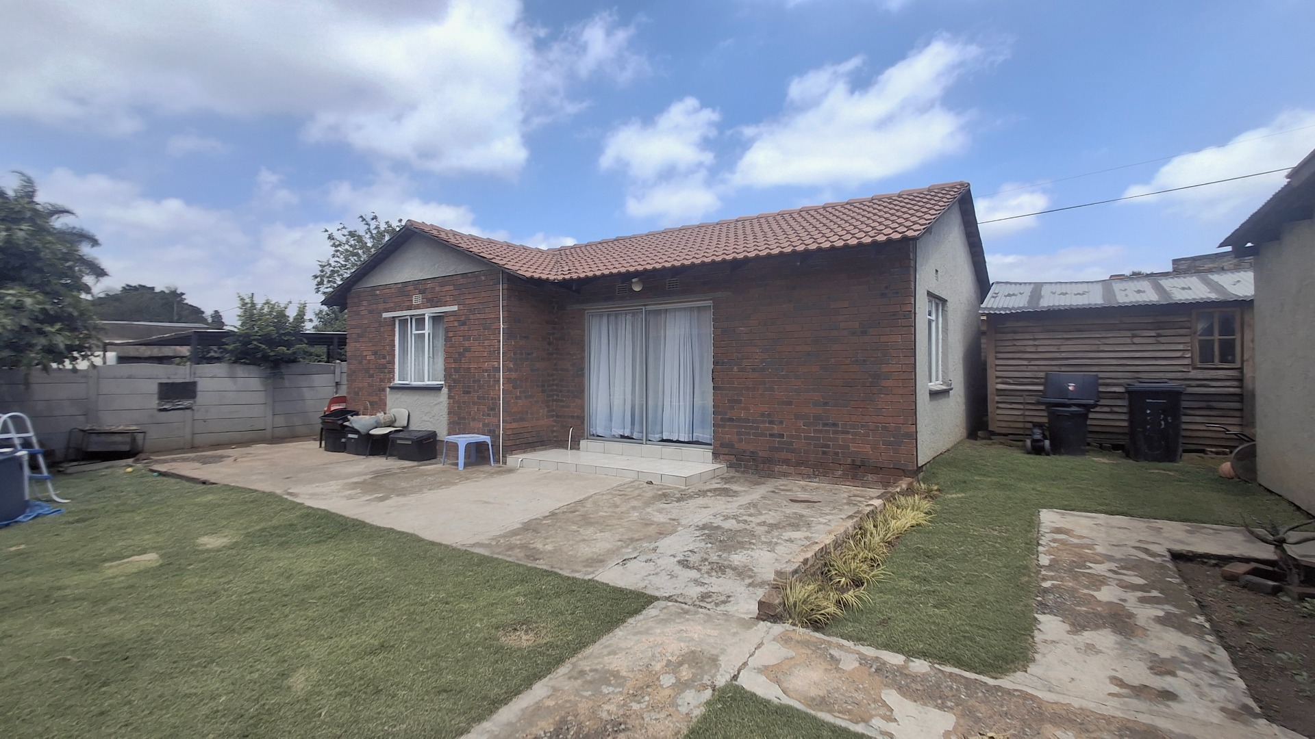 Discover this inviting 3-bedroom residence, perfectly situated on a generous 773 sqm erf in the established suburb of Dinwiddie, Germiston. The property offers appealing kerb appeal with a large gravel driveway providing ample parking, shaded by a mature tree. Neat hedges frame the front, complementing the single-story design and tiled roof. A separate wooden outbuilding adds versatile space for storage or a potential workshop, enhancing the property's functionality.