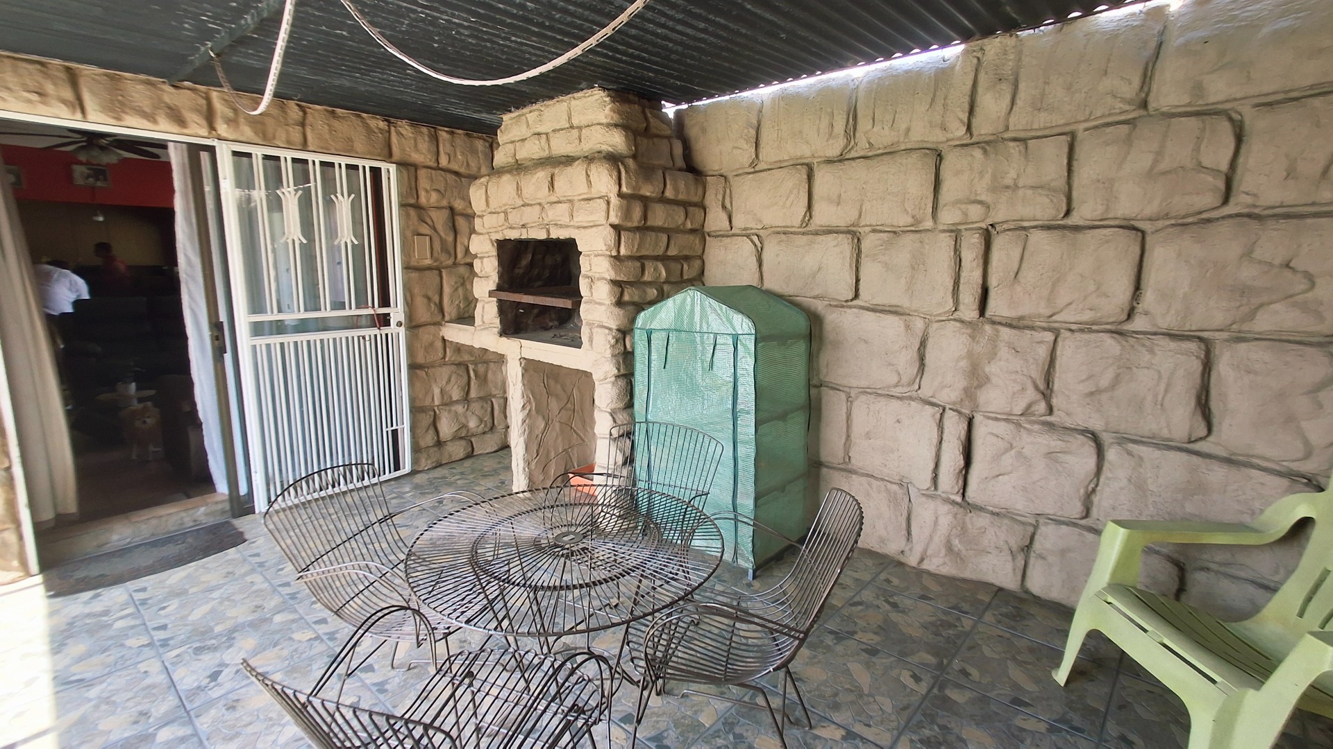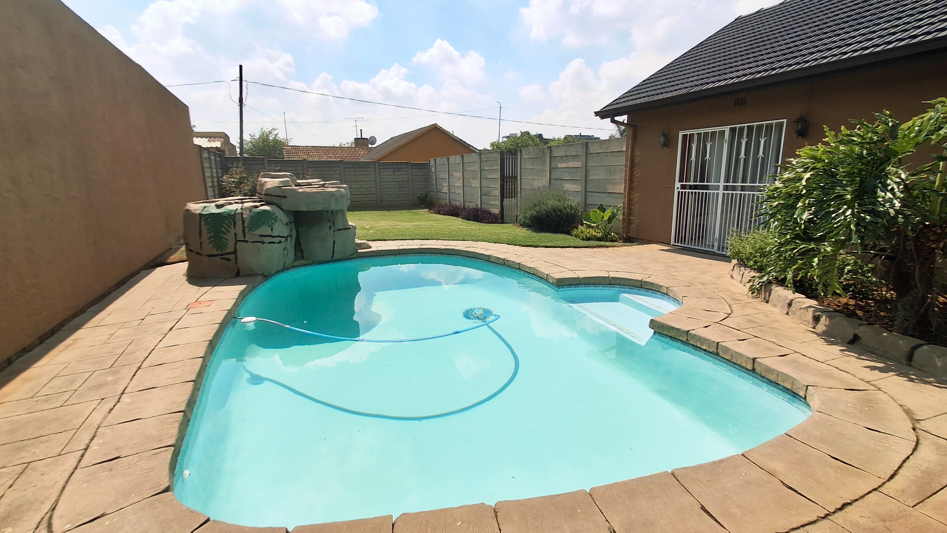 Discover this inviting residential property located in the established suburb of Dinwiddie, Germiston. This home presents a welcoming kerb appeal with a well-maintained lawn, established trees, and a secure frontage featuring an access gate. Parking is ample with a double garage and an additional covered carport, ensuring convenience for residents and guests. Step inside to an open-plan living, dining, and kitchen area, designed for comfortable family life and entertaining. The space is bathed in natural light from large windows and features durable tiled flooring throughout. The kitchen is well-appointed with a central island, light-toned cabinetry, dark countertops, and a tiled backsplash, accommodating essential appliances including a washing machine. A cozy fireplace in the living area adds warmth and character, complemented by sliding doors that provide seamless access to the outdoors. The residence offers three comfortable bedrooms and a well-maintained bathroom. A significant advantage of this property is the inclusion of a flatlet, providing versatile options for extended family, guest accommodation, or potential rental income. This adds considerable value and flexibility to the home. Outdoor living is a highlight, featuring a private garden, a swimming pool for relaxation and recreation, and a built-in braai perfect for social gatherings. Security is enhanced with burglar bars on windows and doors, and an access gate, offering peace of mind. The property also benefits from paving, contributing to its neat and functional exterior. Dinwiddie is a well-regarded residential area within Germiston, known for its community feel and convenient access to local amenities. This property offers a blend of comfort, practicality, and potential, making it an ideal choice for families or investors seeking a versatile home in a desirable location. Key Features: * 3 Bedrooms, 1 Bathroom * Open-plan Living, Dining & Kitchen * Double Garage & Covered Carport * Private Swimming Pool * Built-in Braai & Garden * Includes a Flatlet * Fireplace * Burglar Bars & Access Gate * Pets Allowed