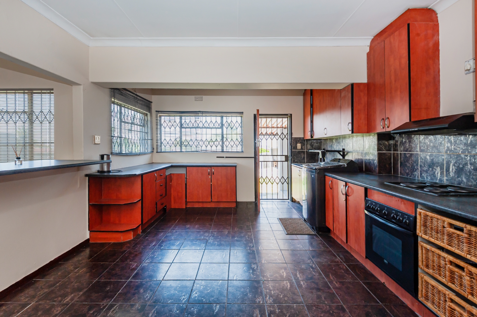 An extremely spacious kitchen with ample cupboard, counter and appliance space,