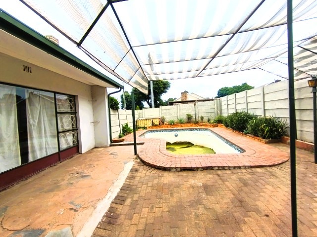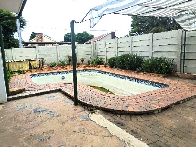 This spacious 4-bedroom, 2-bathroom home in Elsburg, Germiston, presents a fantastic opportunity for family living. The property boasts charming kerb appeal with a white exterior, green roof, and an established, lush garden featuring mature trees and a welcoming paved brick pathway leading to a front patio. A distinctive thatched structure in the garden offers potential for a lapa or entertainment area, enhancing outdoor enjoyment. Secure gated access and concrete boundary walls provide peace of mind. Inside, the residence offers a functional layout with a lounge, a dining room, and a kitchen, all featuring durable tiled flooring. The living areas benefit from ample natural light, creating a bright and inviting atmosphere. The four bedrooms are well-proportioned, also with tiled floors, while the two bathrooms are fully tiled, including a full suite with a bathtub, pedestal sink, and toilet. Outdoor amenities include a double garage and additional parking for four vehicles. The private outdoor space features a swimming pool, ready for restoration to become a focal point for relaxation and entertainment. A covered patio further extends the living space outdoors. Security is enhanced with security bars on windows and security gates. Located in the metropolitan and suburban area of Elsburg, this home offers convenient access to local amenities and a comfortable lifestyle within Germiston, South Africa. Key Features: * 4 Bedrooms, 2 Bathrooms * 1 Lounge, 1 Dining Room, 1 Kitchen * Double Garage, 4 Parking Spaces * Established Garden with Thatched Structure * Private Outdoor Area with Swimming Pool * Covered Patio * Tiled Flooring Throughout * Security Bars and Gates