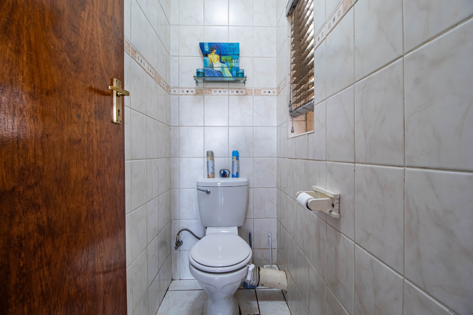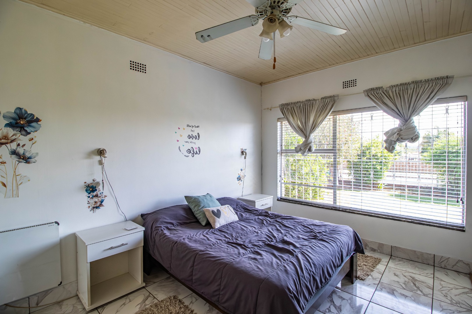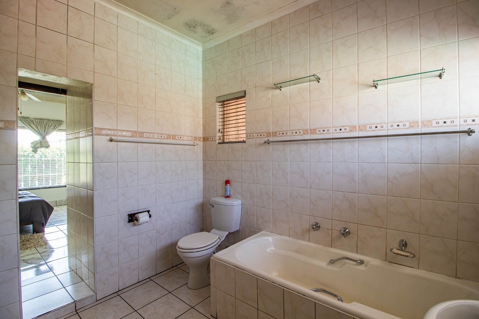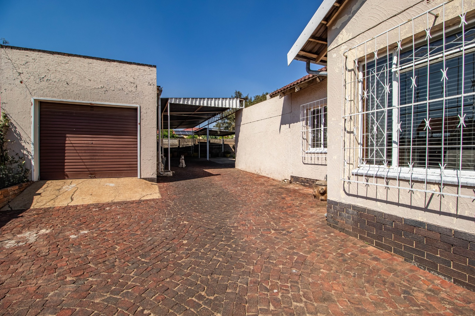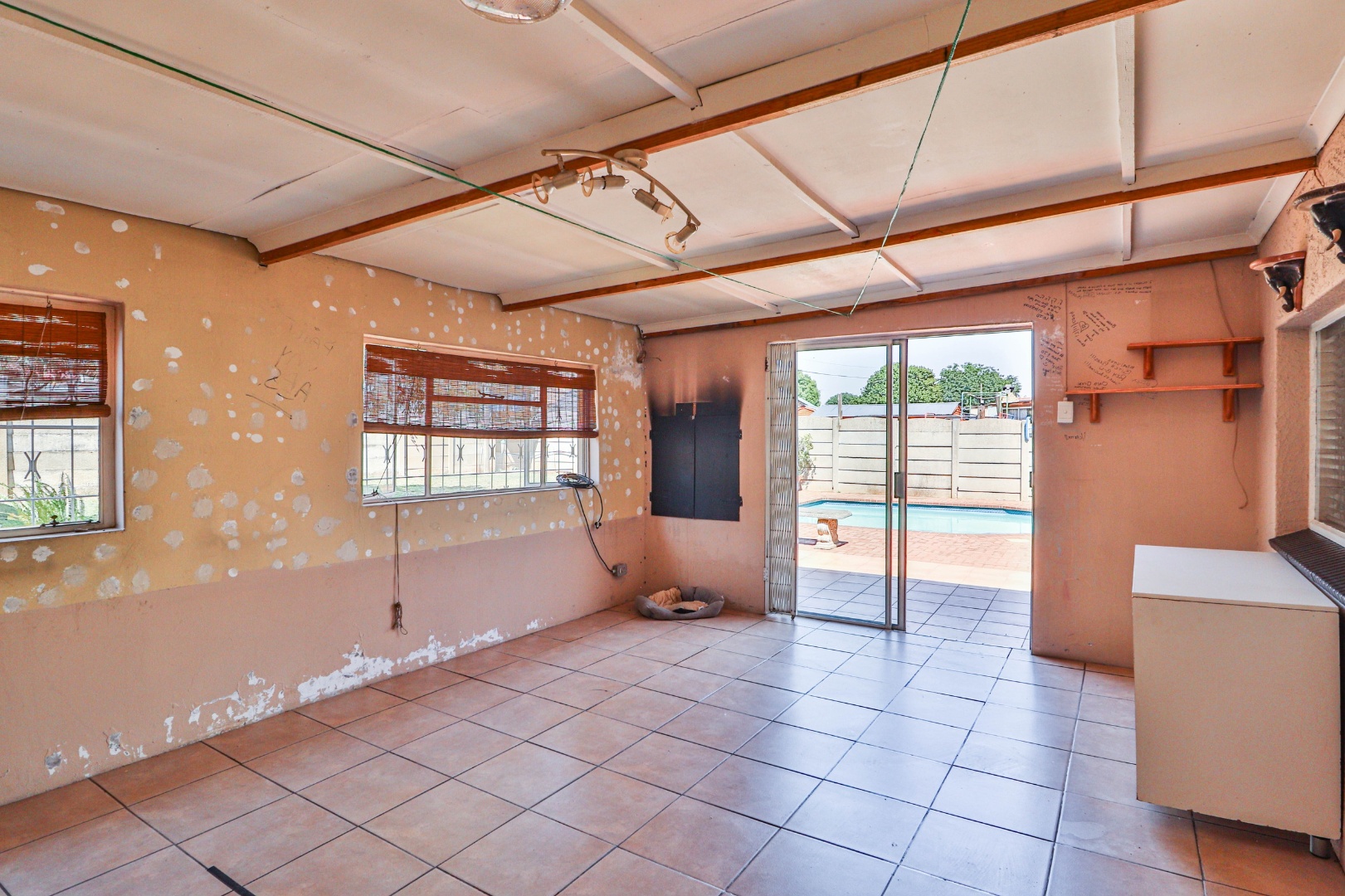 Outdoors, the expansive grounds host a sparkling swimming pool, offering a refreshing escape during warmer months. Parking is abundant with a single garage and additional space for three vehicles. The property also includes convenient domestic rooms and is pet-friendly, catering to every family need. Security is paramount, featuring robust burglar bars and a security gate for peace of mind.