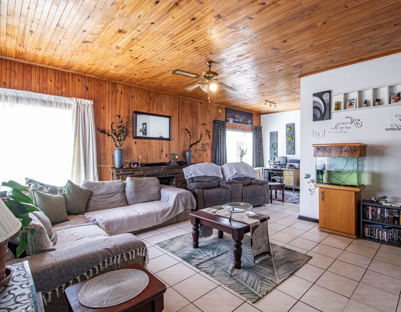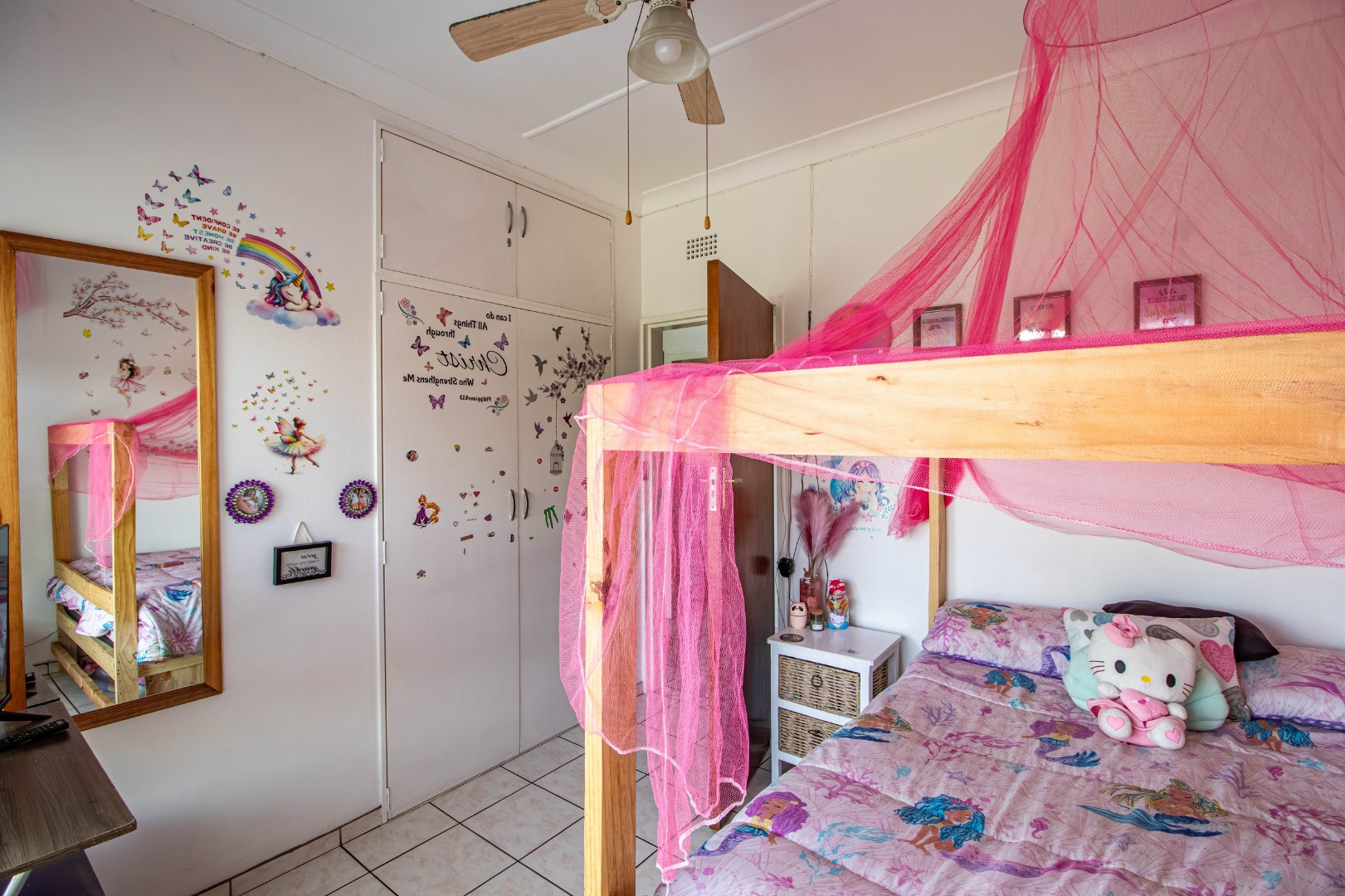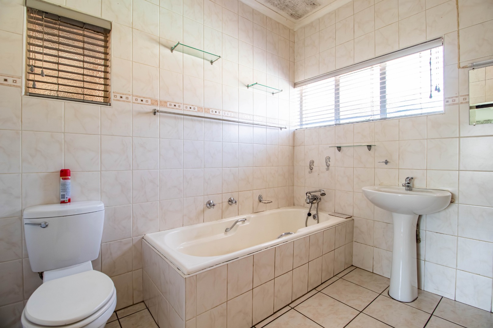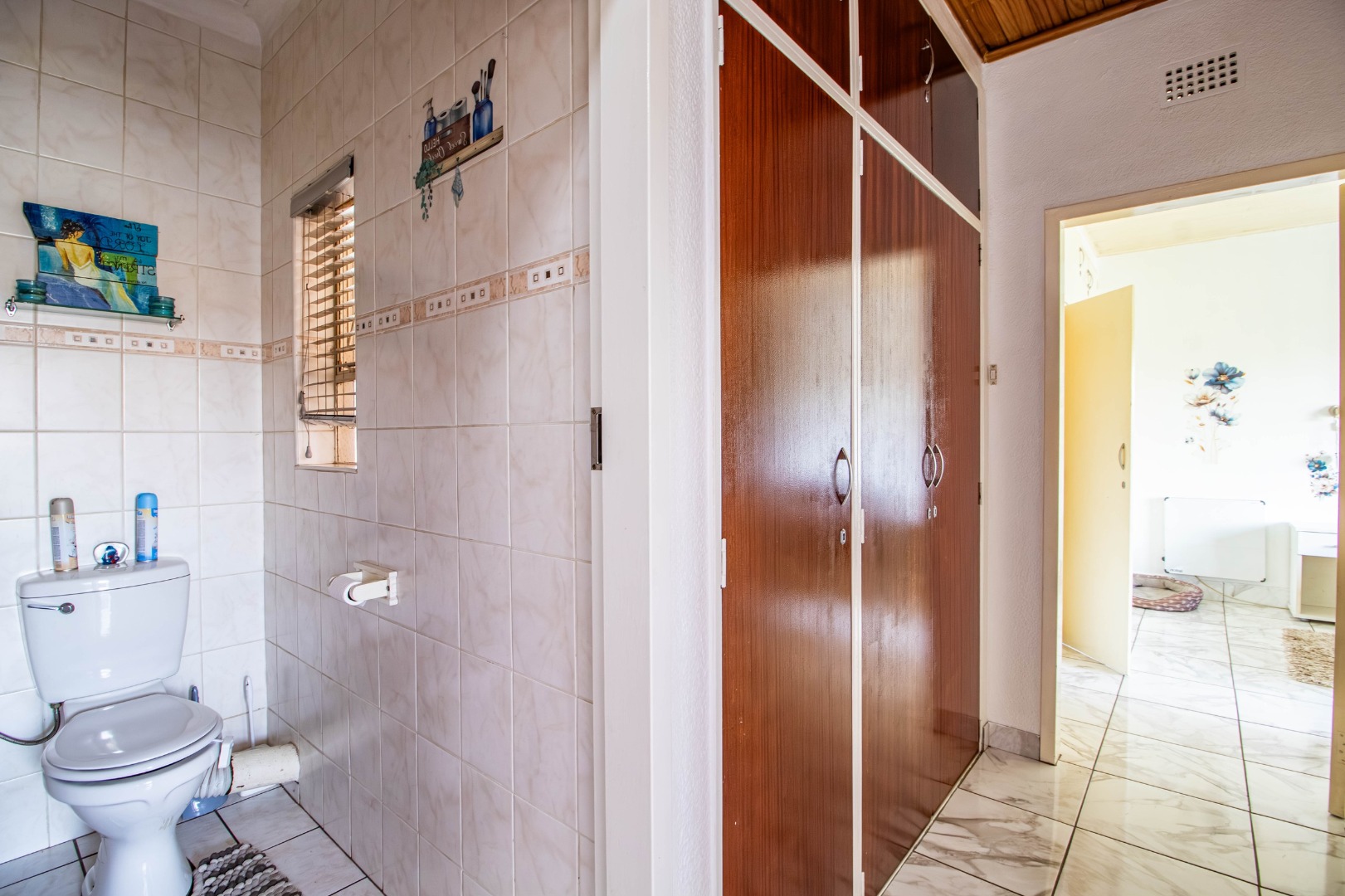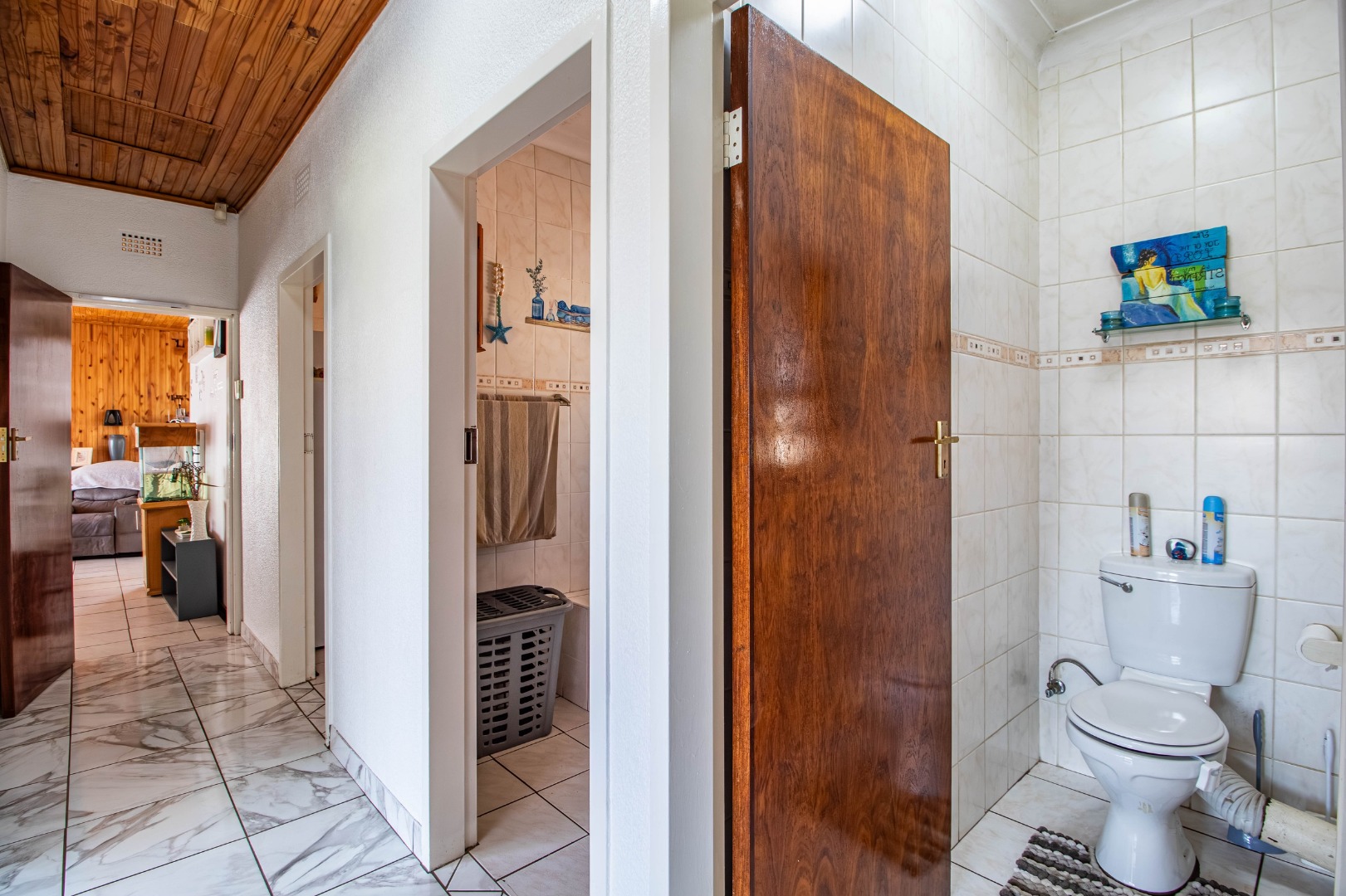 Outdoors, the expansive grounds host a sparkling swimming pool, offering a refreshing escape during warmer months. Parking is abundant with a single garage and additional space for three vehicles. The property also includes convenient domestic rooms and is pet-friendly, catering to every family need. Security is paramount, featuring robust burglar bars and a security gate for peace of mind.