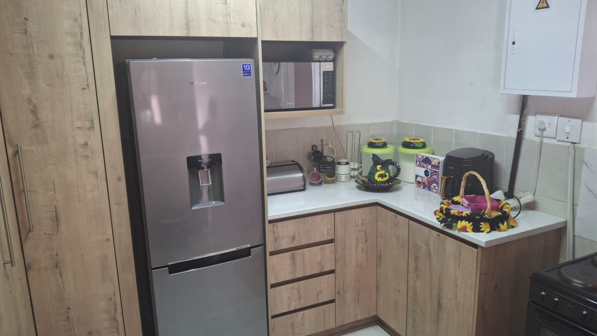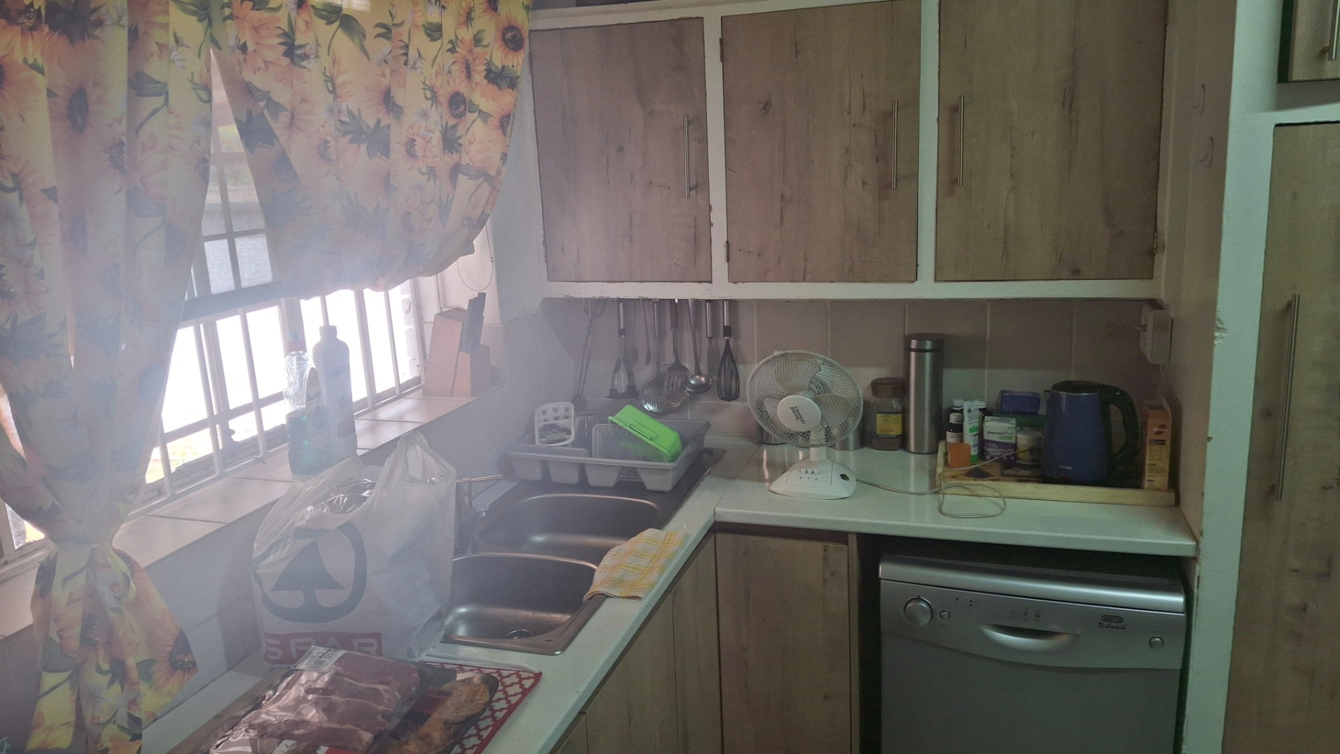 Discover this charming 3-bedroom, 1-bathroom home located in the suburban area of Gerdview, Germiston, South Africa. Spanning a generous 220 sqm floor size on a 654 sqm erf, this property offers a functional layout designed for comfortable living. The interior features an open-plan design, encompassing a lounge, a dining room, providing ample space for relaxation and entertainment. The modern kitchen boasts light wood-grain cabinetry, white countertops, a space for a refrigerator, and a built-in microwave counter, complimented by a double sink and dishwasher space.