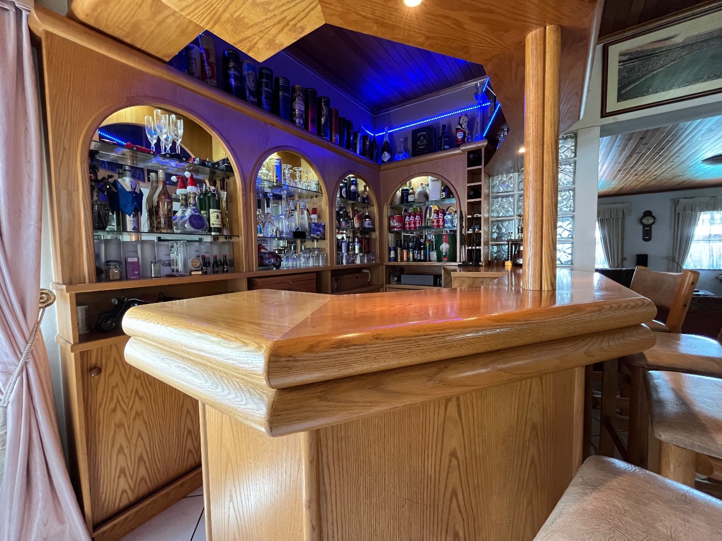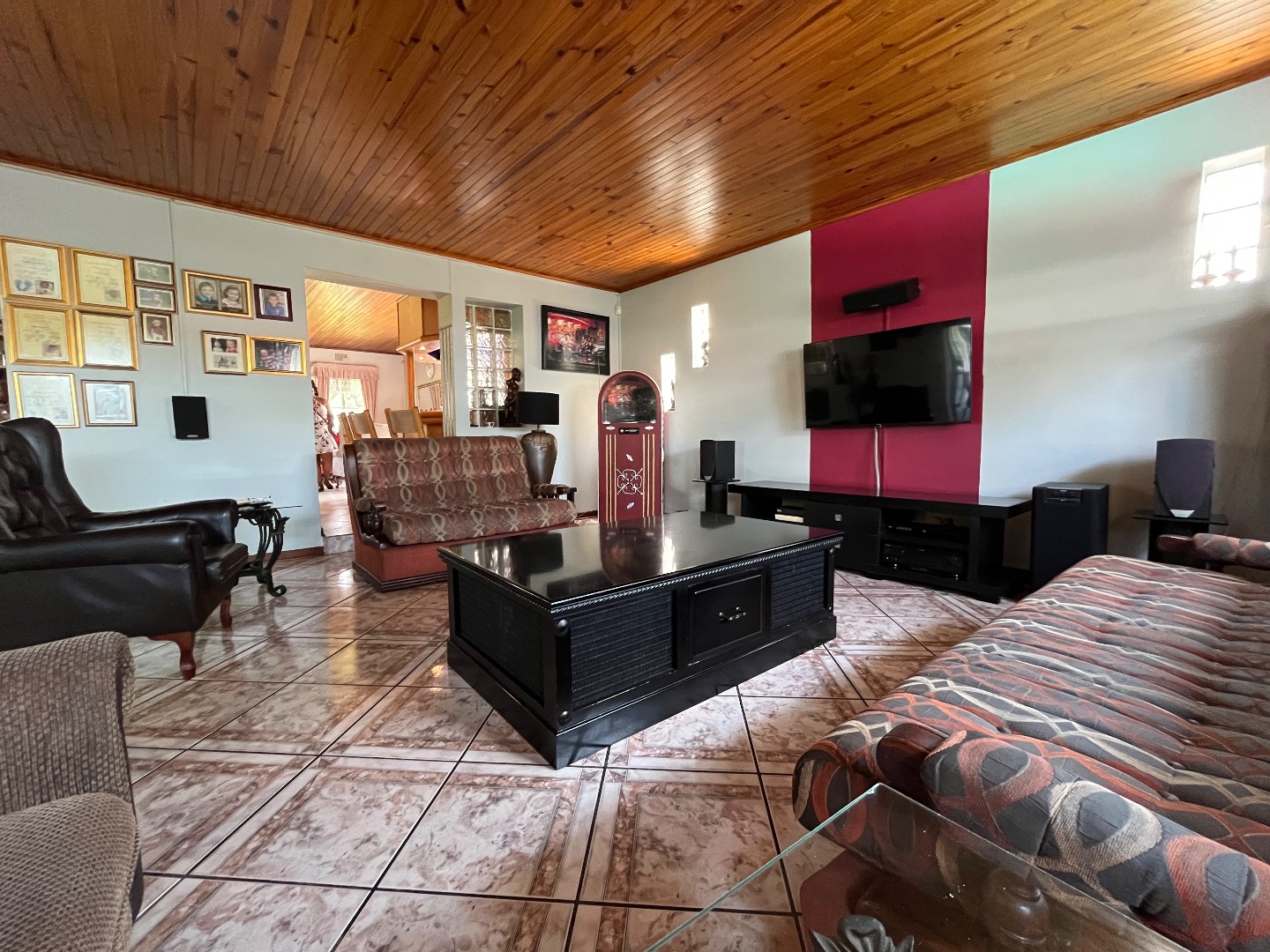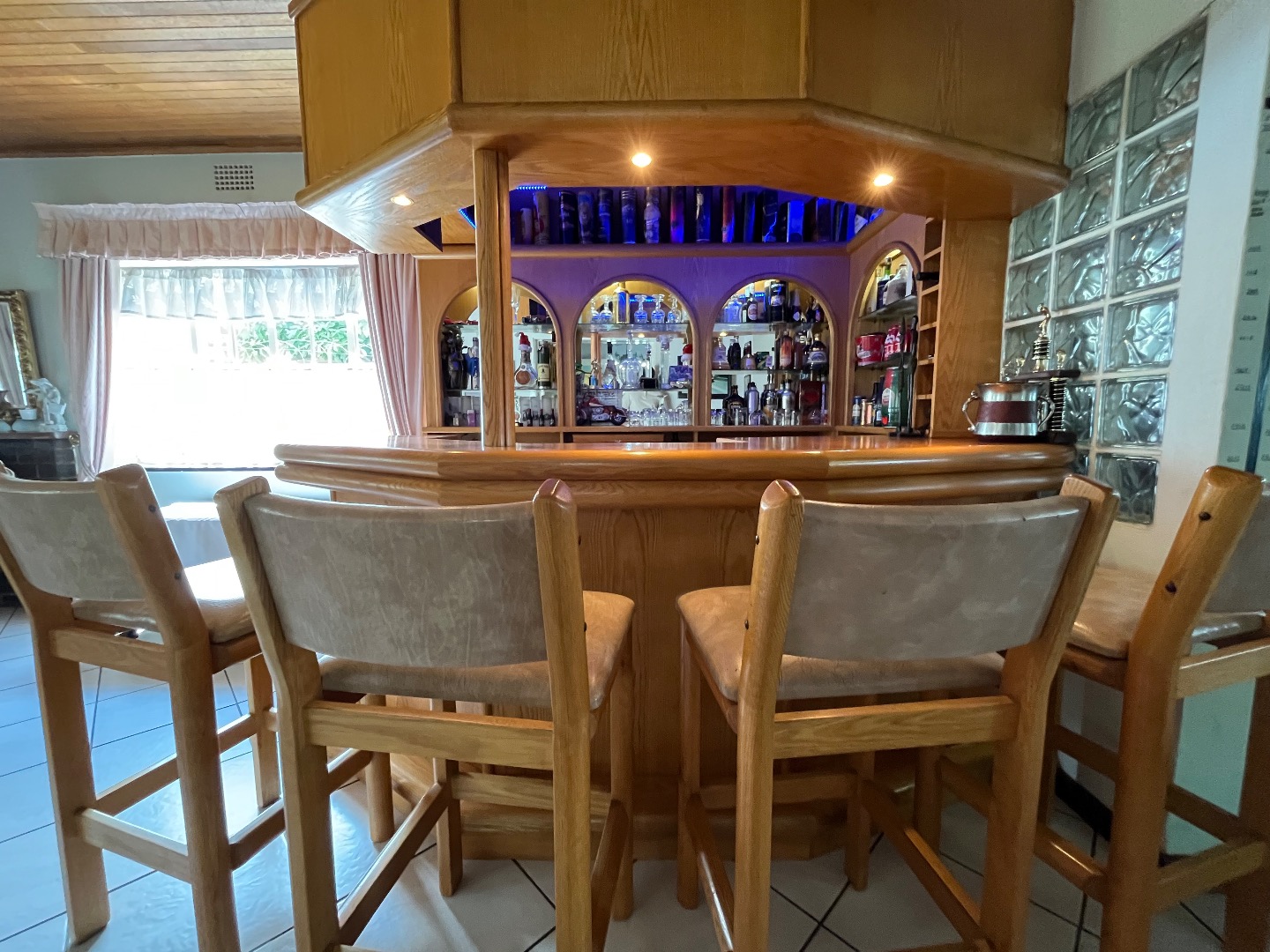 Upon entering, you are welcomed by a spacious open-plan samlessly integrated with a bar area, creating a warm and inviting athere. The entrance hall flows effortlessly into an elegant dining room, which leads to a modern kitchen fitted with granite countertops, a contemporary gas stove, and a dedicated laundry area. Multiple entertainment spaces, including additional bar, lounge, and dining areas, make this home ideal for hosting family and friends.