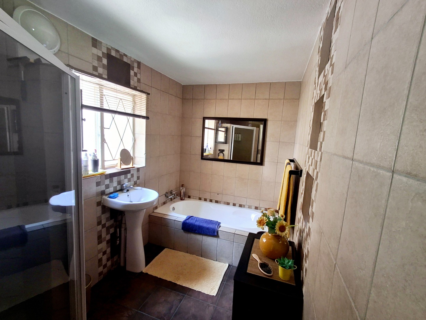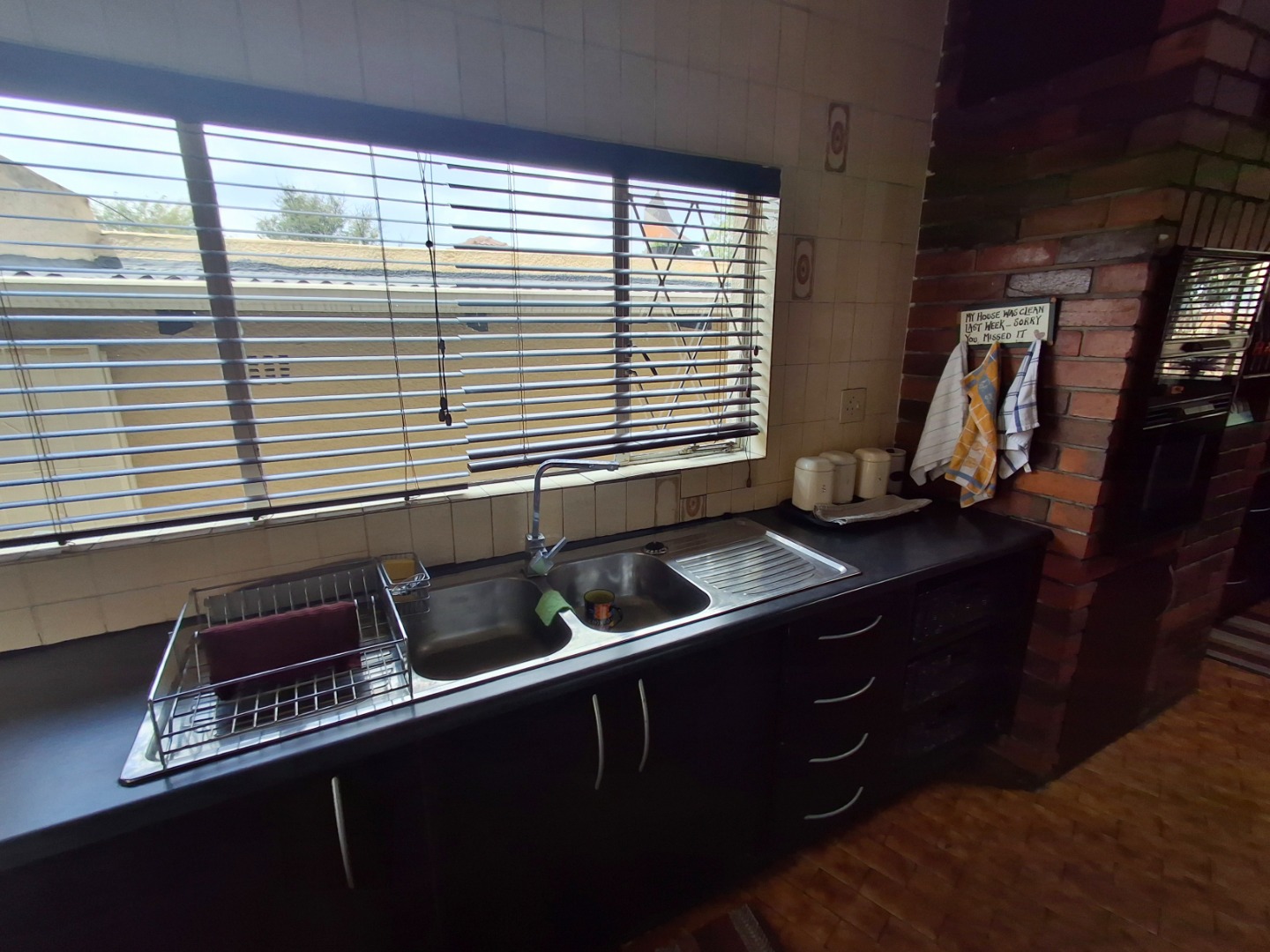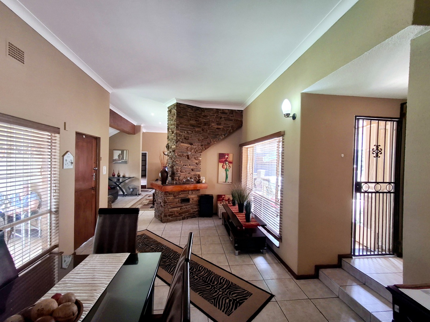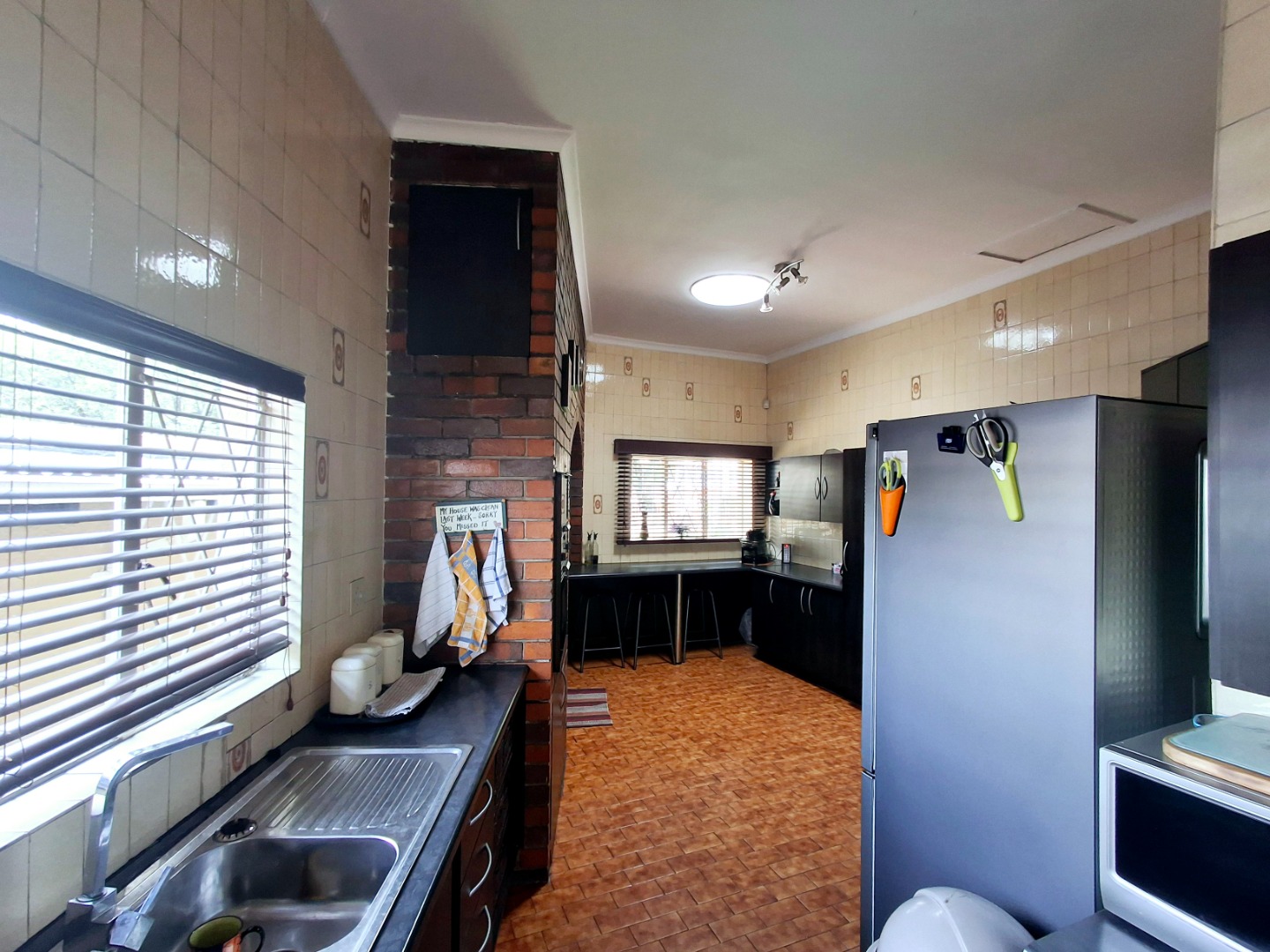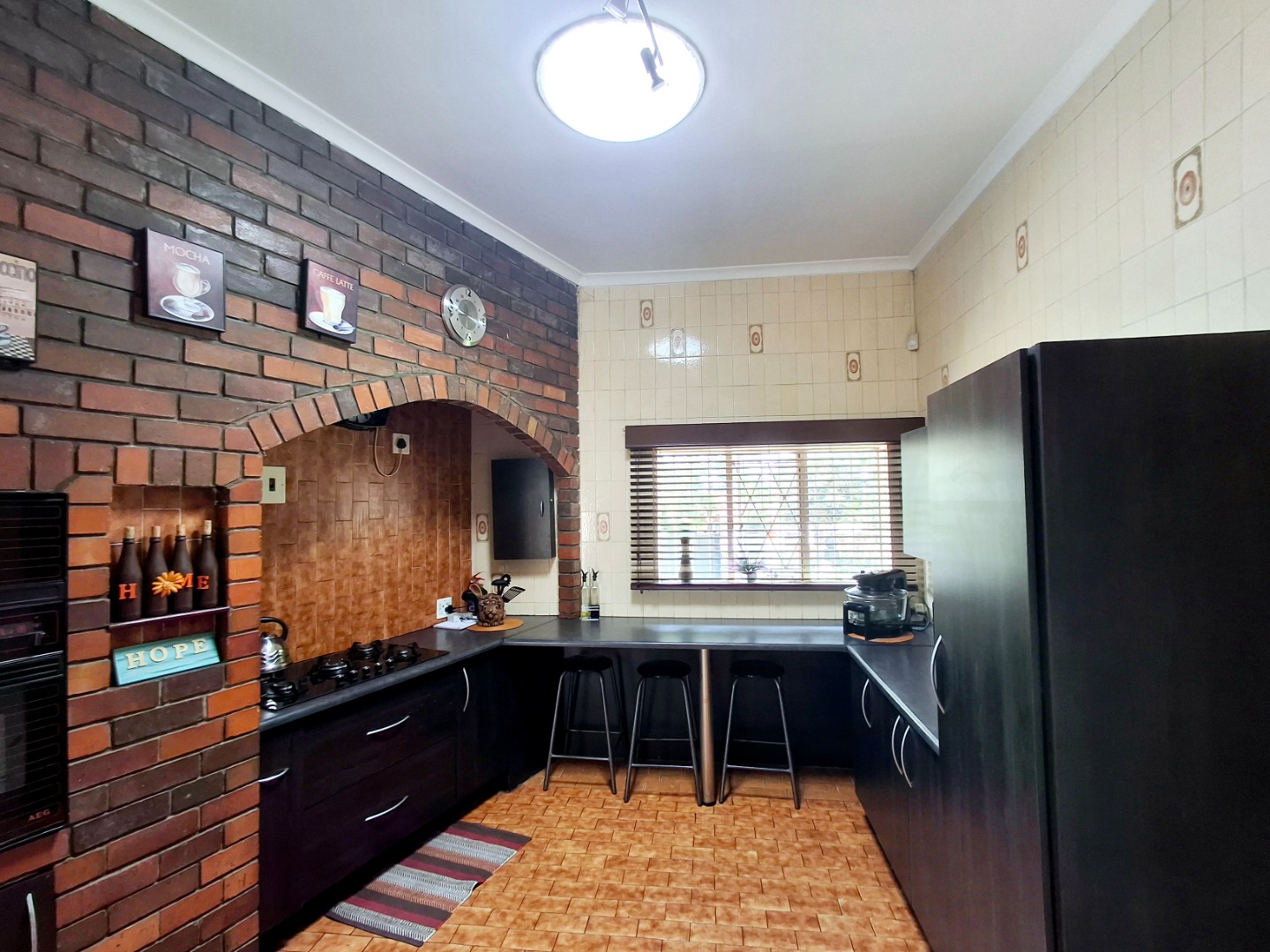 Discover this inviting 4-bedroom, 2-bathroom family home situated on a generous 1018 sqm erf in the established suburban area of Hazelpark, Germiston, South Africa. The property immediately impresses with its well-maintained lawn, mature trees, and paved driveway, offering excellent kerb appeal. Security is paramount, with visible burglar bars and a security gate enhancing peace of mind. Step inside to find spacious living areas featuring high ceilings, durable tiled flooring, and ample natural light from large windows. The open-plan design seamlessly connects the lounge and dining areas, creating an ideal space for family gatherings and entertaining. Unique rustic stone accent walls and a prominent fireplace add character and warmth to the main living spaces, complemented by modern recessed lighting. The kitchen boasts an exposed brick accent wall, dark cabinetry, and a practical breakfast bar, providing both functionality and style. This home offers four comfortable bedrooms, including one with an en-suite bathroom, alongside a second well-appointed bathroom. A dedicated study provides a quiet space for work or hobbies, catering to modern lifestyle needs. Outside, the property features a private patio perfect for outdoor relaxation and a well-maintained garden, ideal for children and pets. Parking is well catered for with two garages, and pets are allowed, making it ideal for families. Enhanced security features include an alarm system, access gate, and a totally walled perimeter, ensuring a safe environment for residents. Hazelpark is a well-regarded suburban community in Germiston, known for its family-friendly atmosphere and convenient access to local amenities. Key Features: * 4 Bedrooms, 2 Bathrooms (1 En-suite) * Spacious Open-Plan Living Areas * Dedicated Study * Well-Maintained Garden & Patio * Double Garage * Enhanced Security (Alarm, Access Gate, Burglar Bars) * Pet-Friendly * 1018 sqm Erf Size