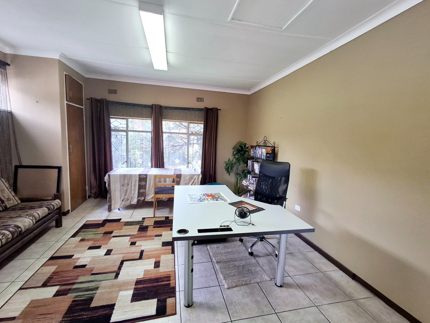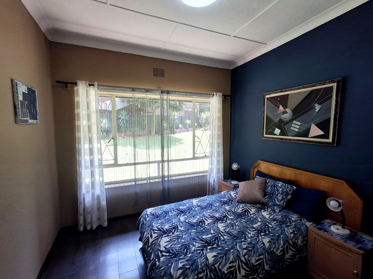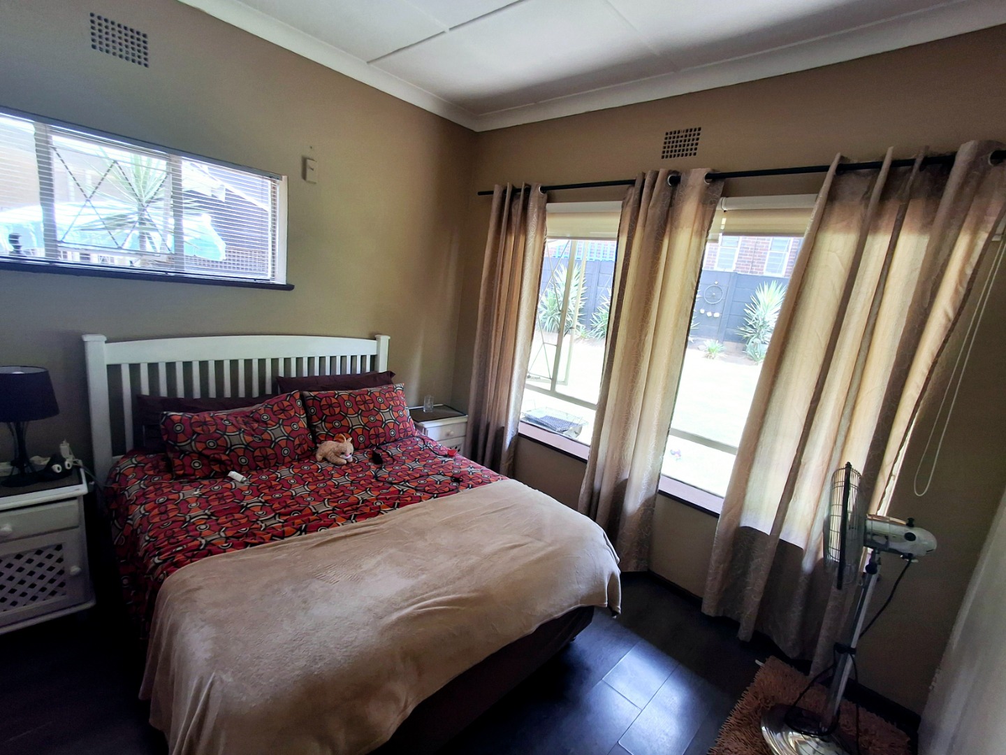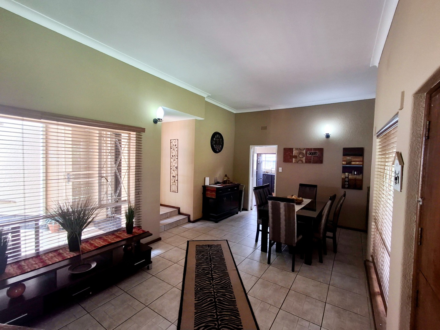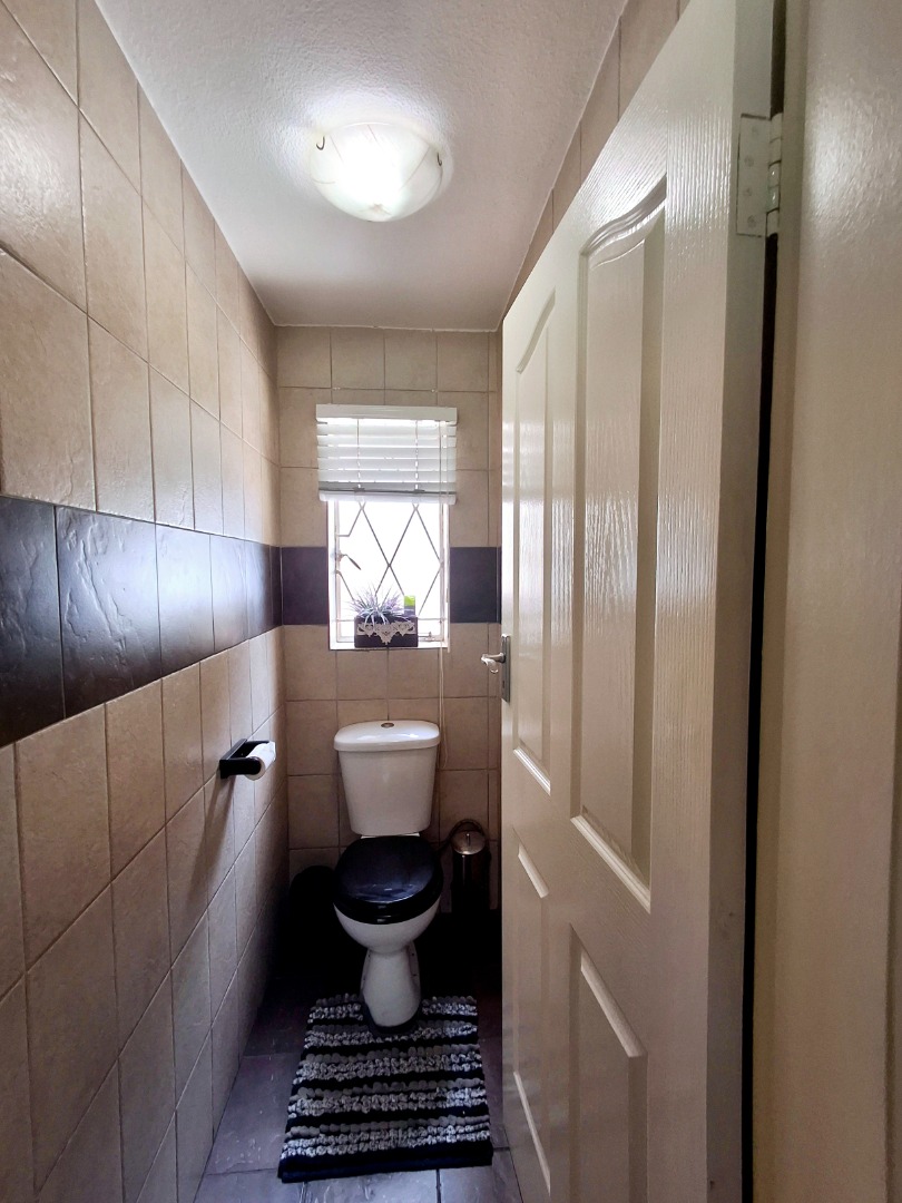 Discover this inviting 4-bedroom, 2-bathroom family home situated on a generous 1018 sqm erf in the established suburban area of Hazelpark, Germiston, South Africa. The property immediately impresses with its well-maintained lawn, mature trees, and paved driveway, offering excellent kerb appeal. Security is paramount, with visible burglar bars and a security gate enhancing peace of mind. Step inside to find spacious living areas featuring high ceilings, durable tiled flooring, and ample natural light from large windows. The open-plan design seamlessly connects the lounge and dining areas, creating an ideal space for family gatherings and entertaining. Unique rustic stone accent walls and a prominent fireplace add character and warmth to the main living spaces, complemented by modern recessed lighting. The kitchen boasts an exposed brick accent wall, dark cabinetry, and a practical breakfast bar, providing both functionality and style. This home offers four comfortable bedrooms, including one with an en-suite bathroom, alongside a second well-appointed bathroom. A dedicated study provides a quiet space for work or hobbies, catering to modern lifestyle needs. Outside, the property features a private patio perfect for outdoor relaxation and a well-maintained garden, ideal for children and pets. Parking is well catered for with two garages, and pets are allowed, making it ideal for families. Enhanced security features include an alarm system, access gate, and a totally walled perimeter, ensuring a safe environment for residents. Hazelpark is a well-regarded suburban community in Germiston, known for its family-friendly atmosphere and convenient access to local amenities. Key Features: * 4 Bedrooms, 2 Bathrooms (1 En-suite) * Spacious Open-Plan Living Areas * Dedicated Study * Well-Maintained Garden & Patio * Double Garage * Enhanced Security (Alarm, Access Gate, Burglar Bars) * Pet-Friendly * 1018 sqm Erf Size
