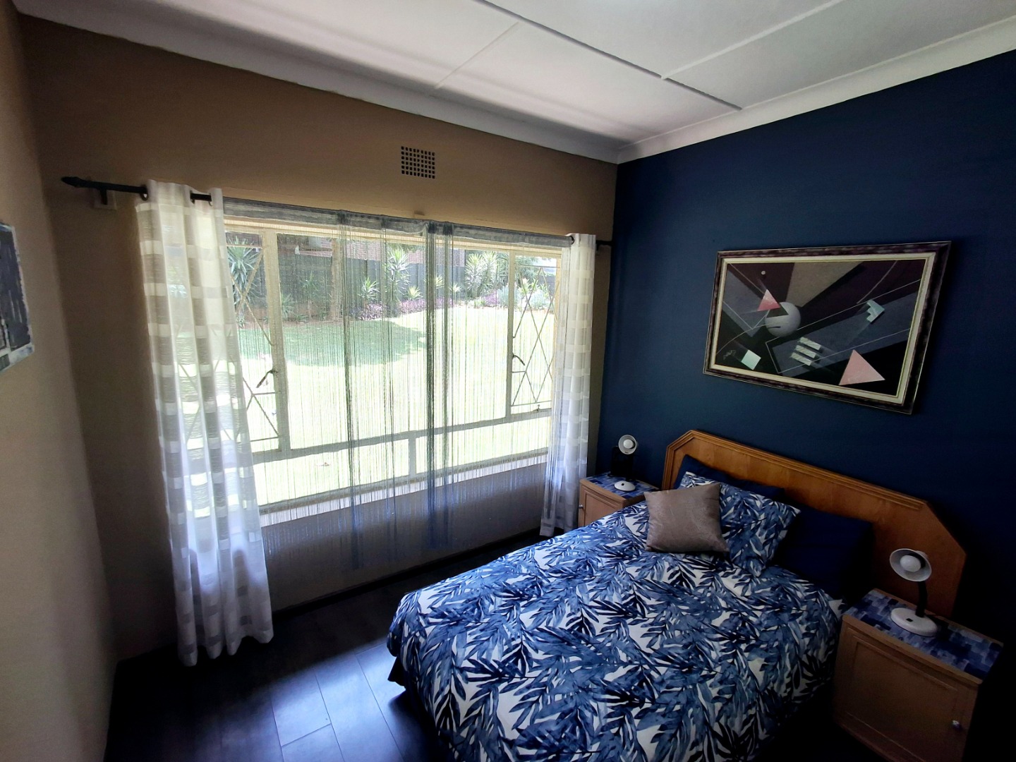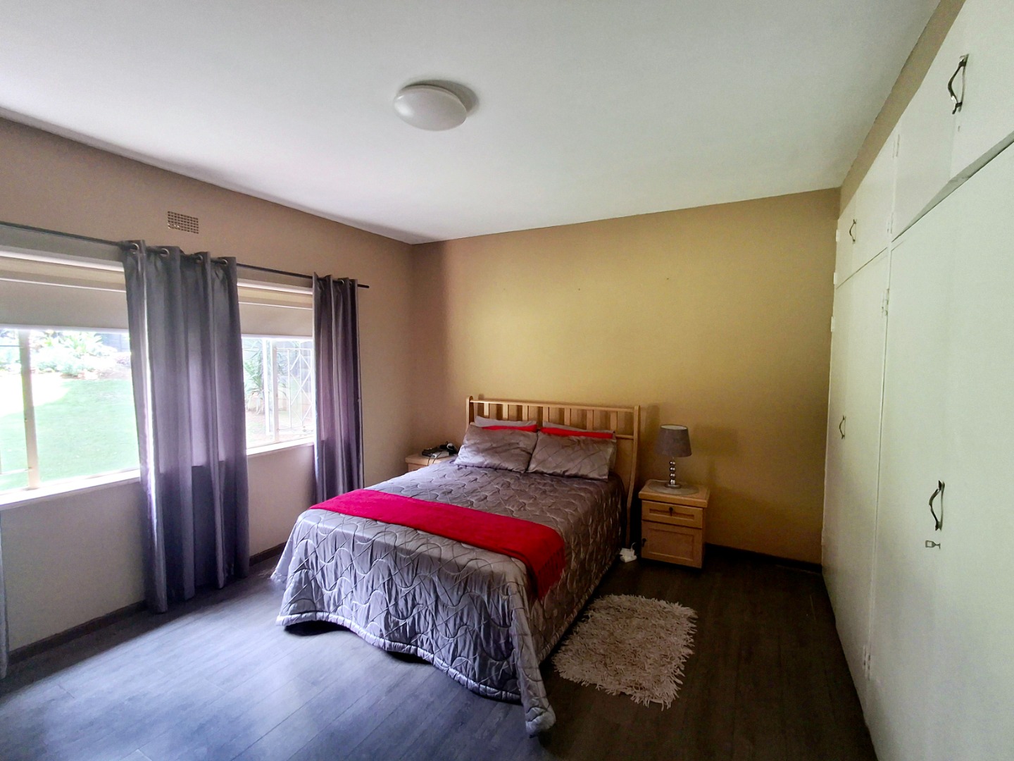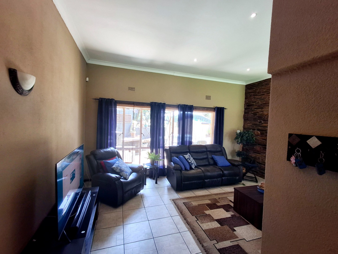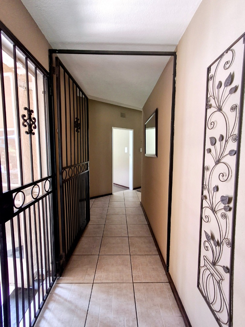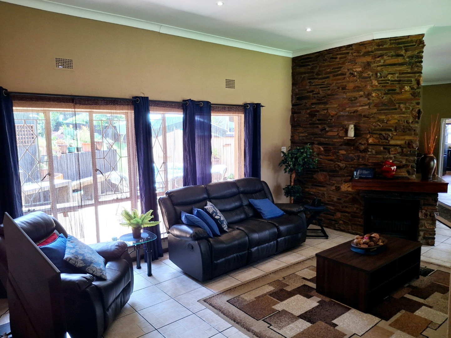 Discover this inviting 4-bedroom, 2-bathroom family home situated on a generous 1018 sqm erf in the established suburban area of Hazelpark, Germiston, South Africa. The property immediately impresses with its well-maintained lawn, mature trees, and paved driveway, offering excellent kerb appeal. Security is paramount, with visible burglar bars and a security gate enhancing peace of mind. Step inside to find spacious living areas featuring high ceilings, durable tiled flooring, and ample natural light from large windows. The open-plan design seamlessly connects the lounge and dining areas, creating an ideal space for family gatherings and entertaining. Unique rustic stone accent walls and a prominent fireplace add character and warmth to the main living spaces, complemented by modern recessed lighting. The kitchen boasts an exposed brick accent wall, dark cabinetry, and a practical breakfast bar, providing both functionality and style. This home offers four comfortable bedrooms, including one with an en-suite bathroom, alongside a second well-appointed bathroom. A dedicated study provides a quiet space for work or hobbies, catering to modern lifestyle needs. Outside, the property features a private patio perfect for outdoor relaxation and a well-maintained garden, ideal for children and pets. Parking is well catered for with two garages, and pets are allowed, making it ideal for families. Enhanced security features include an alarm system, access gate, and a totally walled perimeter, ensuring a safe environment for residents. Hazelpark is a well-regarded suburban community in Germiston, known for its family-friendly atmosphere and convenient access to local amenities. Key Features: * 4 Bedrooms, 2 Bathrooms (1 En-suite) * Spacious Open-Plan Living Areas * Dedicated Study * Well-Maintained Garden & Patio * Double Garage * Enhanced Security (Alarm, Access Gate, Burglar Bars) * Pet-Friendly * 1018 sqm Erf Size