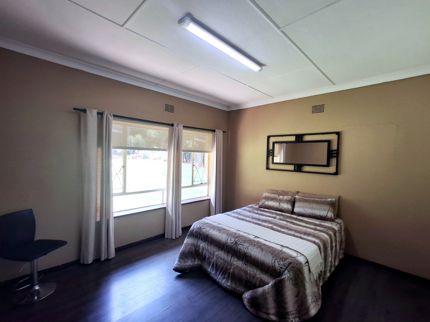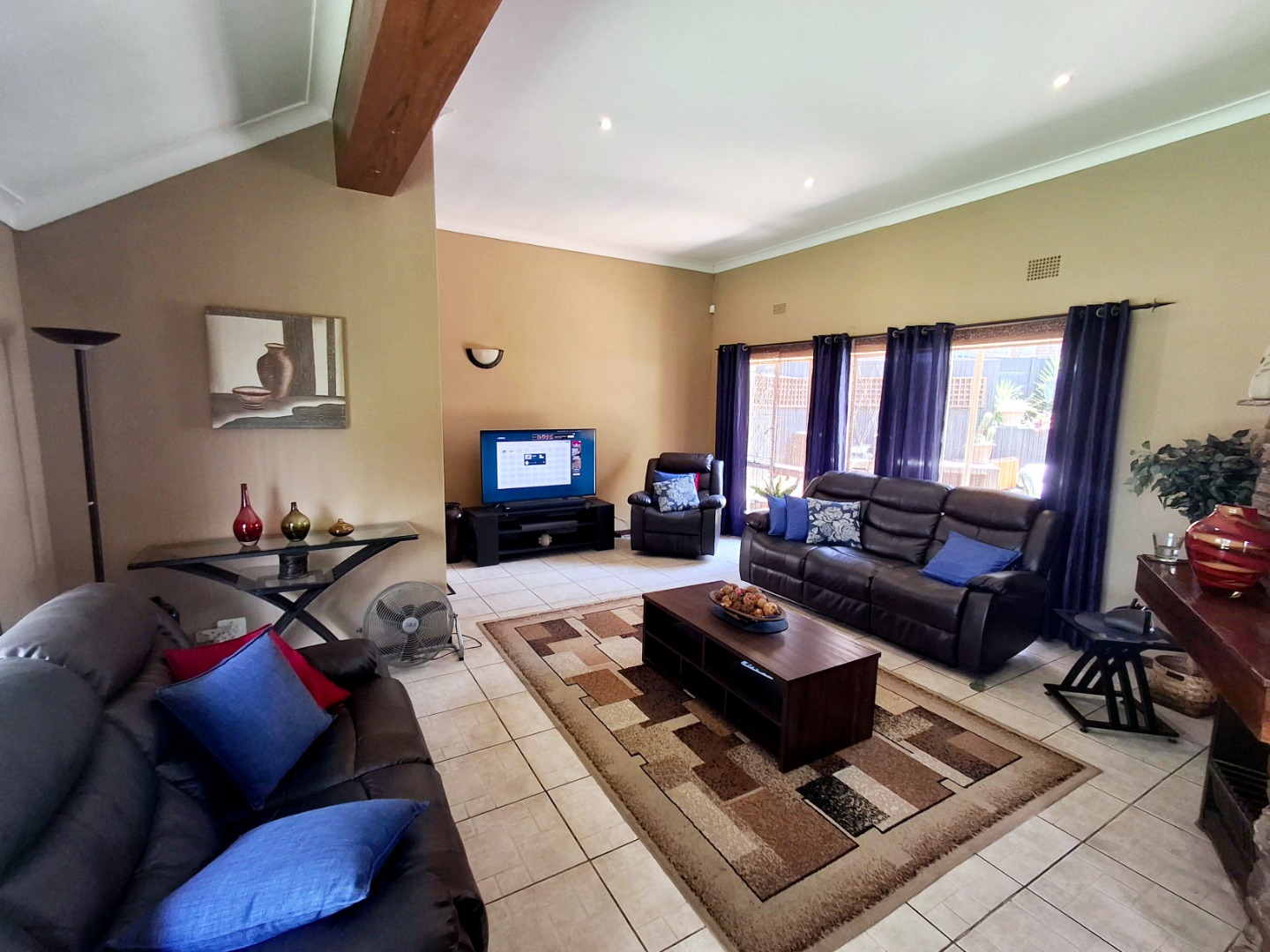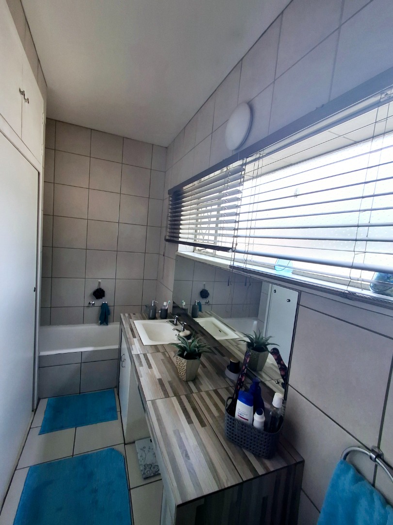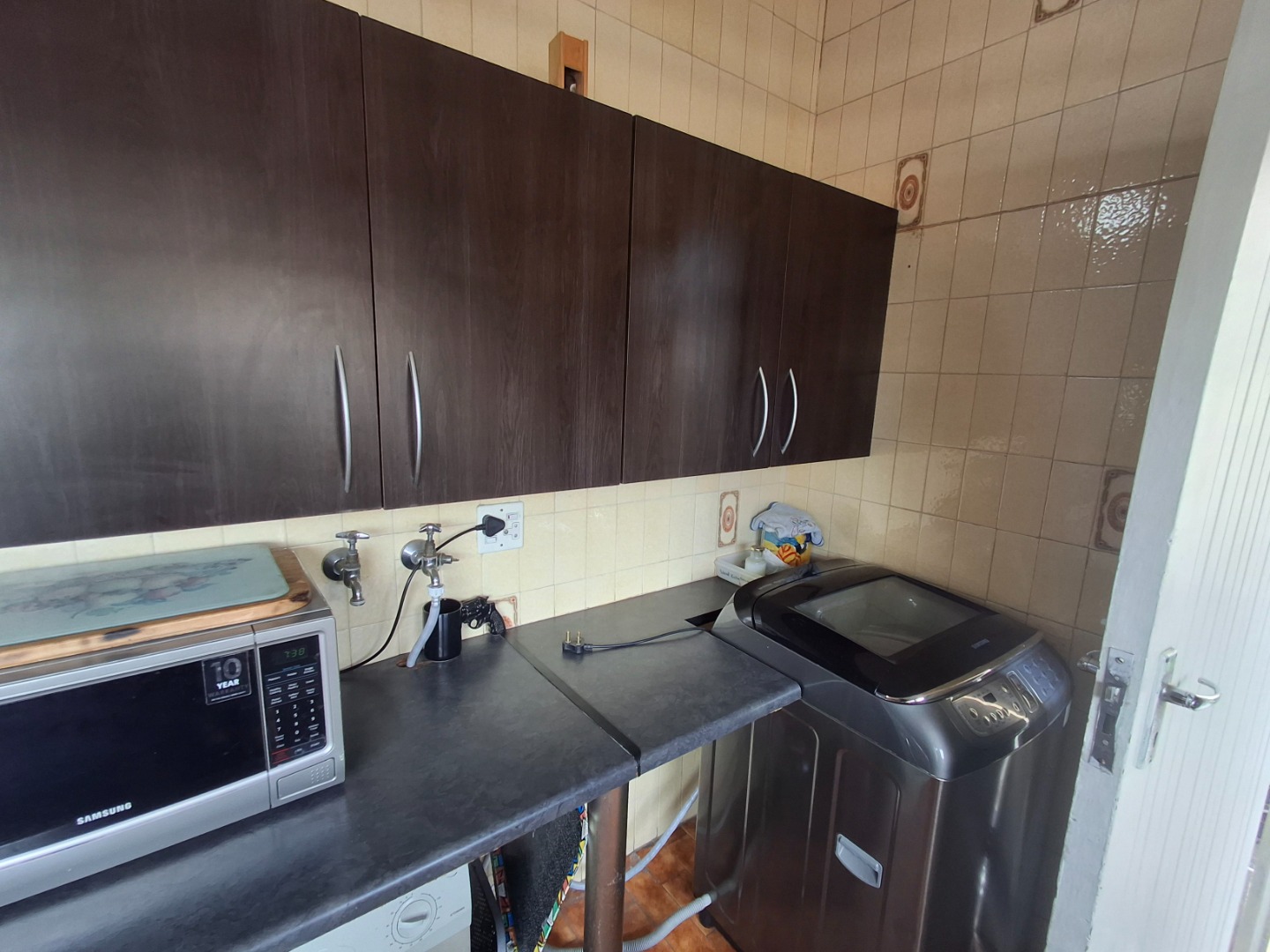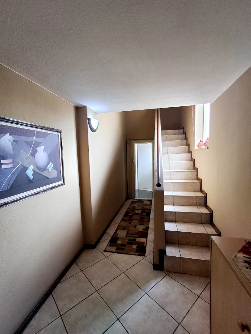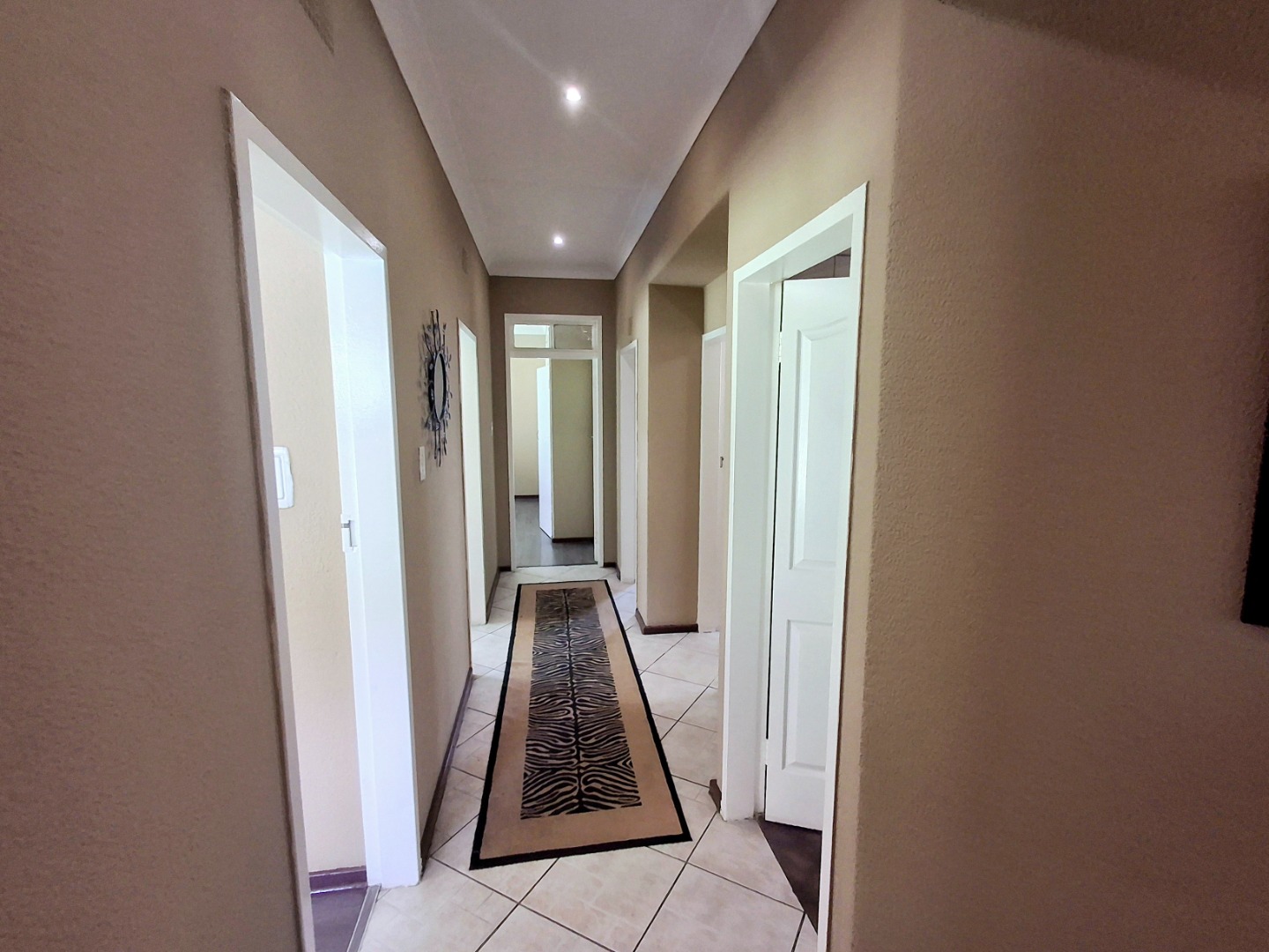 Discover this inviting 4-bedroom, 2-bathroom family home situated on a generous 1018 sqm erf in the established suburban area of Hazelpark, Germiston, South Africa. The property immediately impresses with its well-maintained lawn, mature trees, and paved driveway, offering excellent kerb appeal. Security is paramount, with visible burglar bars and a security gate enhancing peace of mind. Step inside to find spacious living areas featuring high ceilings, durable tiled flooring, and ample natural light from large windows. The open-plan design seamlessly connects the lounge and dining areas, creating an ideal space for family gatherings and entertaining. Unique rustic stone accent walls and a prominent fireplace add character and warmth to the main living spaces, complemented by modern recessed lighting. The kitchen boasts an exposed brick accent wall, dark cabinetry, and a practical breakfast bar, providing both functionality and style. This home offers four comfortable bedrooms, including one with an en-suite bathroom, alongside a second well-appointed bathroom. A dedicated study provides a quiet space for work or hobbies, catering to modern lifestyle needs. Outside, the property features a private patio perfect for outdoor relaxation and a well-maintained garden, ideal for children and pets. Parking is well catered for with two garages, and pets are allowed, making it ideal for families. Enhanced security features include an alarm system, access gate, and a totally walled perimeter, ensuring a safe environment for residents. Hazelpark is a well-regarded suburban community in Germiston, known for its family-friendly atmosphere and convenient access to local amenities. Key Features: * 4 Bedrooms, 2 Bathrooms (1 En-suite) * Spacious Open-Plan Living Areas * Dedicated Study * Well-Maintained Garden & Patio * Double Garage * Enhanced Security (Alarm, Access Gate, Burglar Bars) * Pet-Friendly * 1018 sqm Erf Size