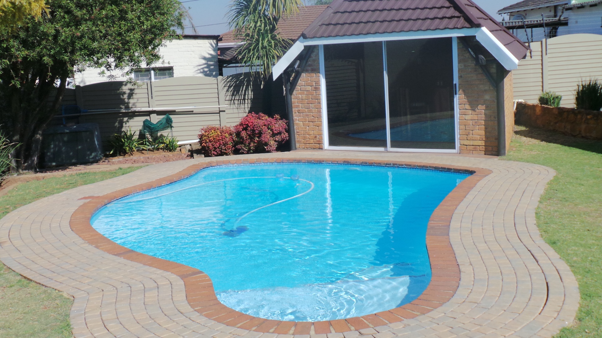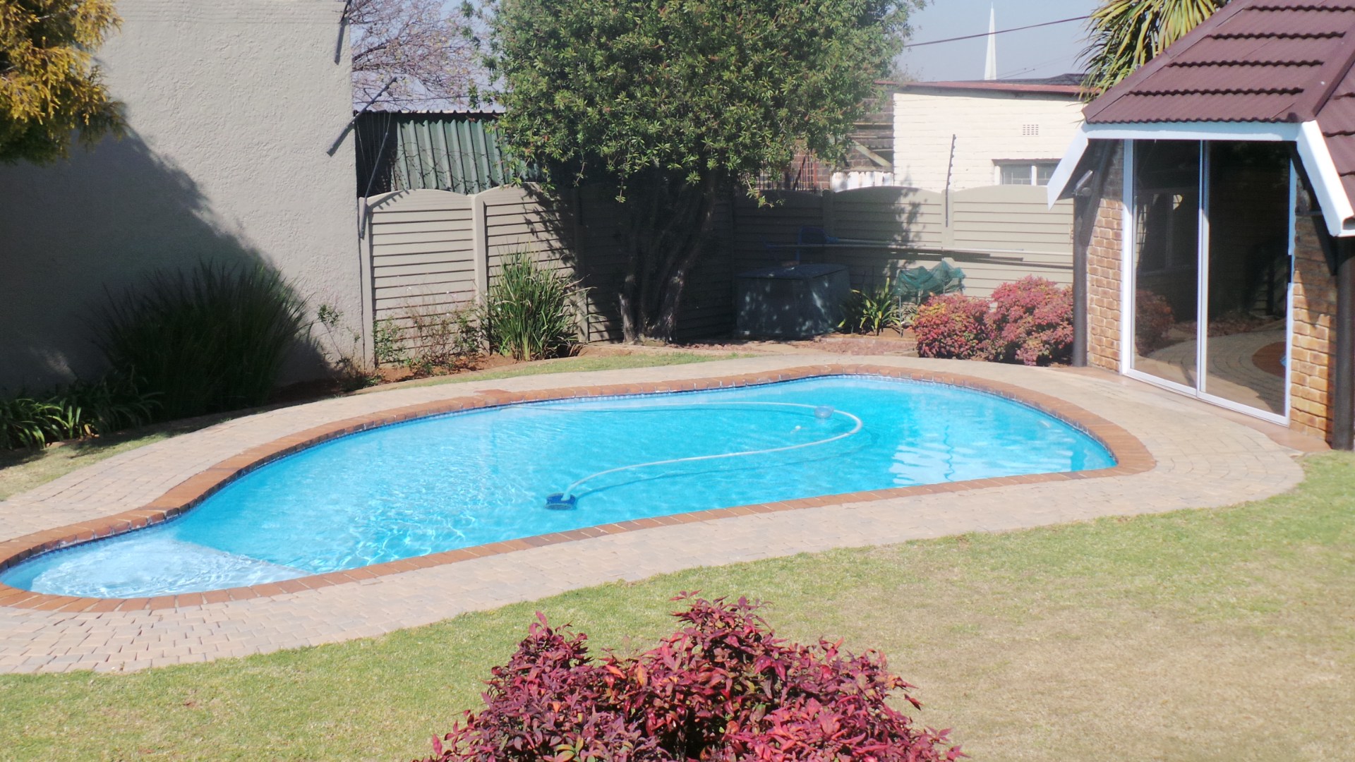 Neat family home in a vibey secure suburb, This home consists of 3 spacious bedrooms, 1 full bathroom, separate toilet, large lounge, enclosed sun room, , separate dining room, large melamine kitchen and separate laundry and aluminium windows throughout with trellidoor. The outside has a well manicured garden, sparkling heated swimming pool, enclosed entertainment area, , lock up garage , carport , maids quarters with toilet . This home has well maintained carpets throughout, pre paid meter and generator will stay.