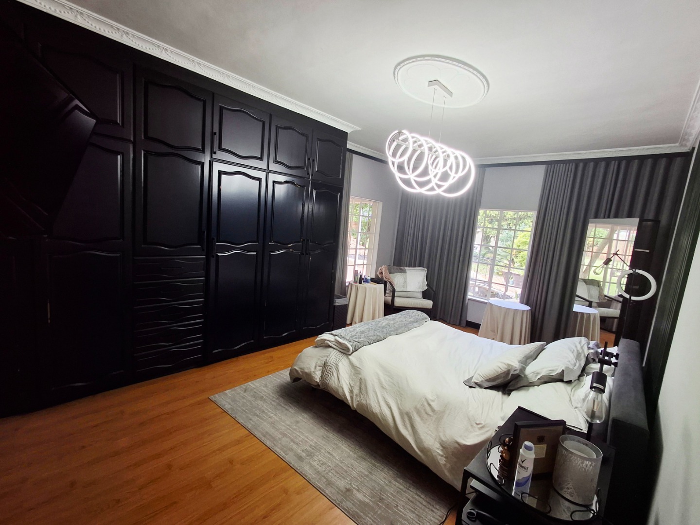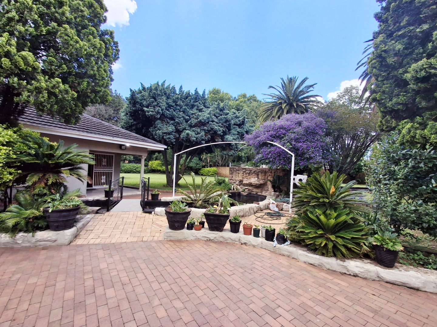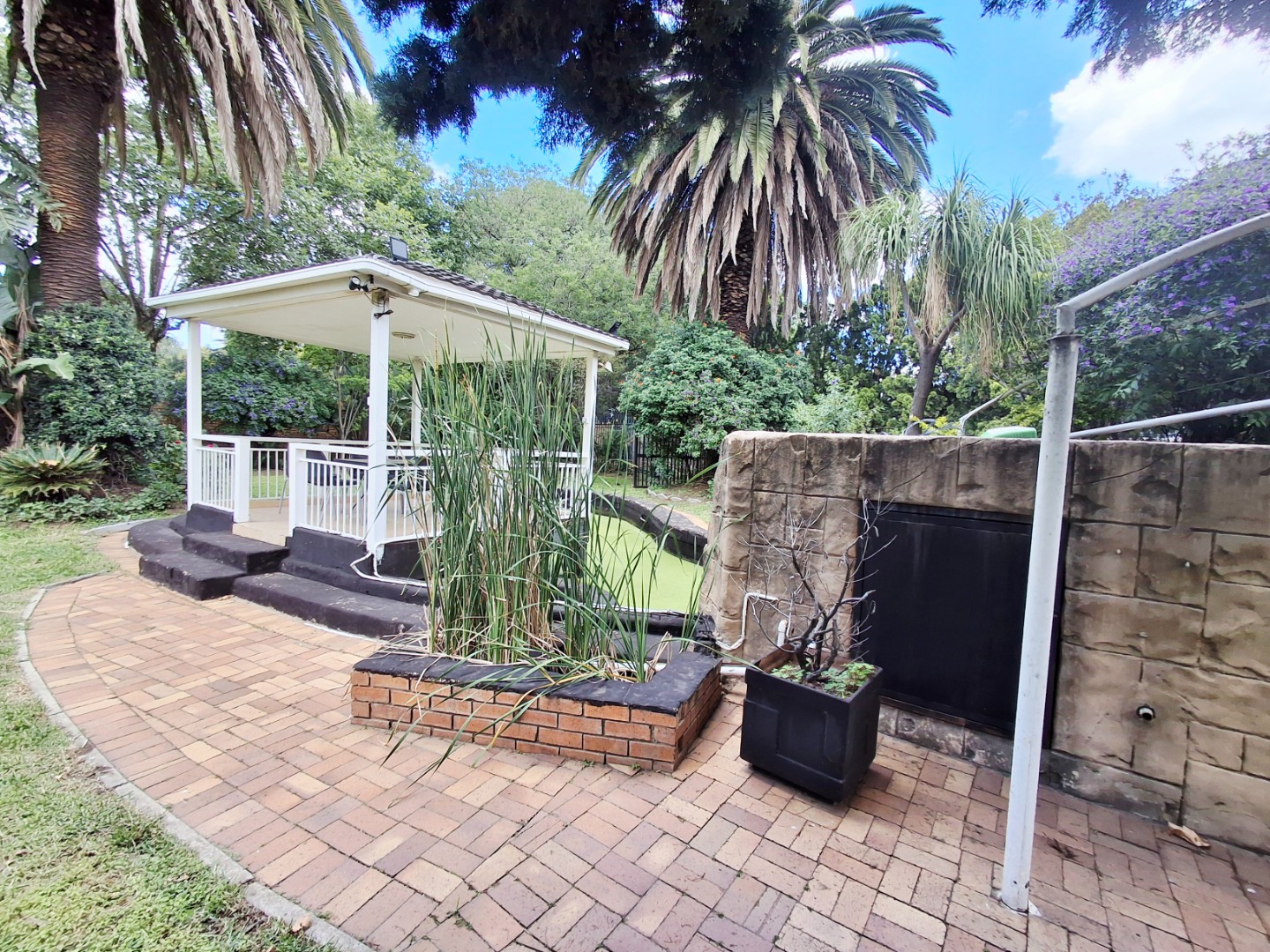 The outdoor spaces are a true highlight, designed for leisure and recreation. Enjoy a large swimming pool with a decorative fountain, a covered patio with a built-in braai, and a lapa, perfect for hosting gatherings. Sports enthusiasts will appreciate the private tennis court. The expansive, established garden boasts mature trees, a charming gazebo, a tranquil pond, and is maintained by a borehole and sprinkler system, creating a serene oasis.