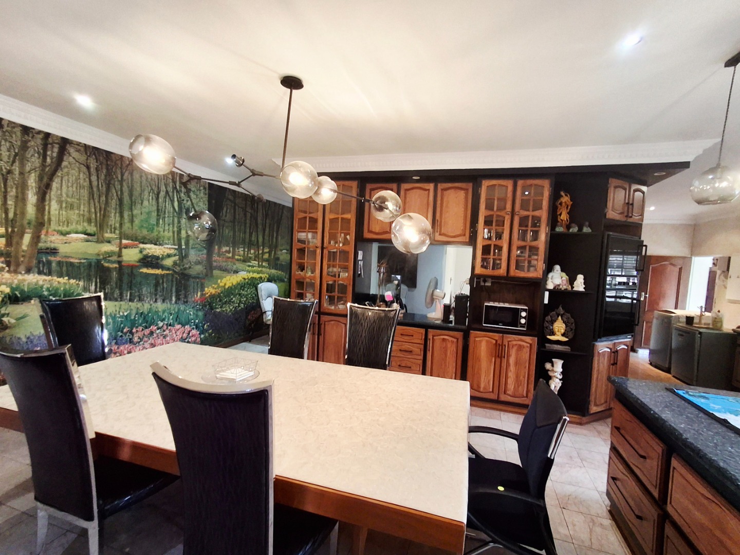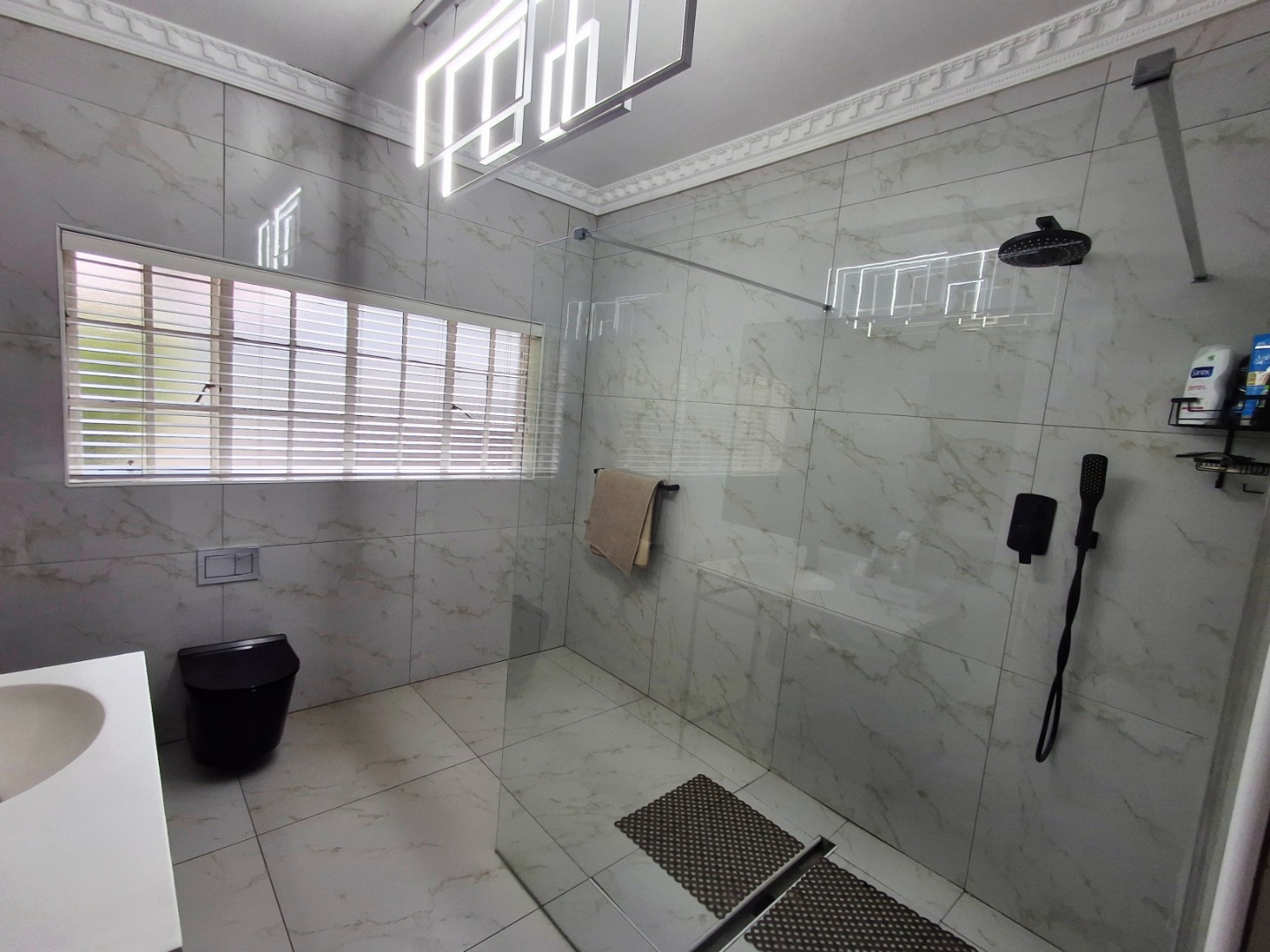 Inside, the home features three spacious lounges, a dedicated dining room, and a comfortable family TV room, providing diverse living areas for relaxation and entertainment. The state of the art kitchen caters to culinary needs with a dining space and modern lights, while the five bedrooms and three bathrooms, including one on-suite, ensure comfort and privacy for all residents. An additional flatlet offers versatile accommodation options, ideal for guests or extended family.