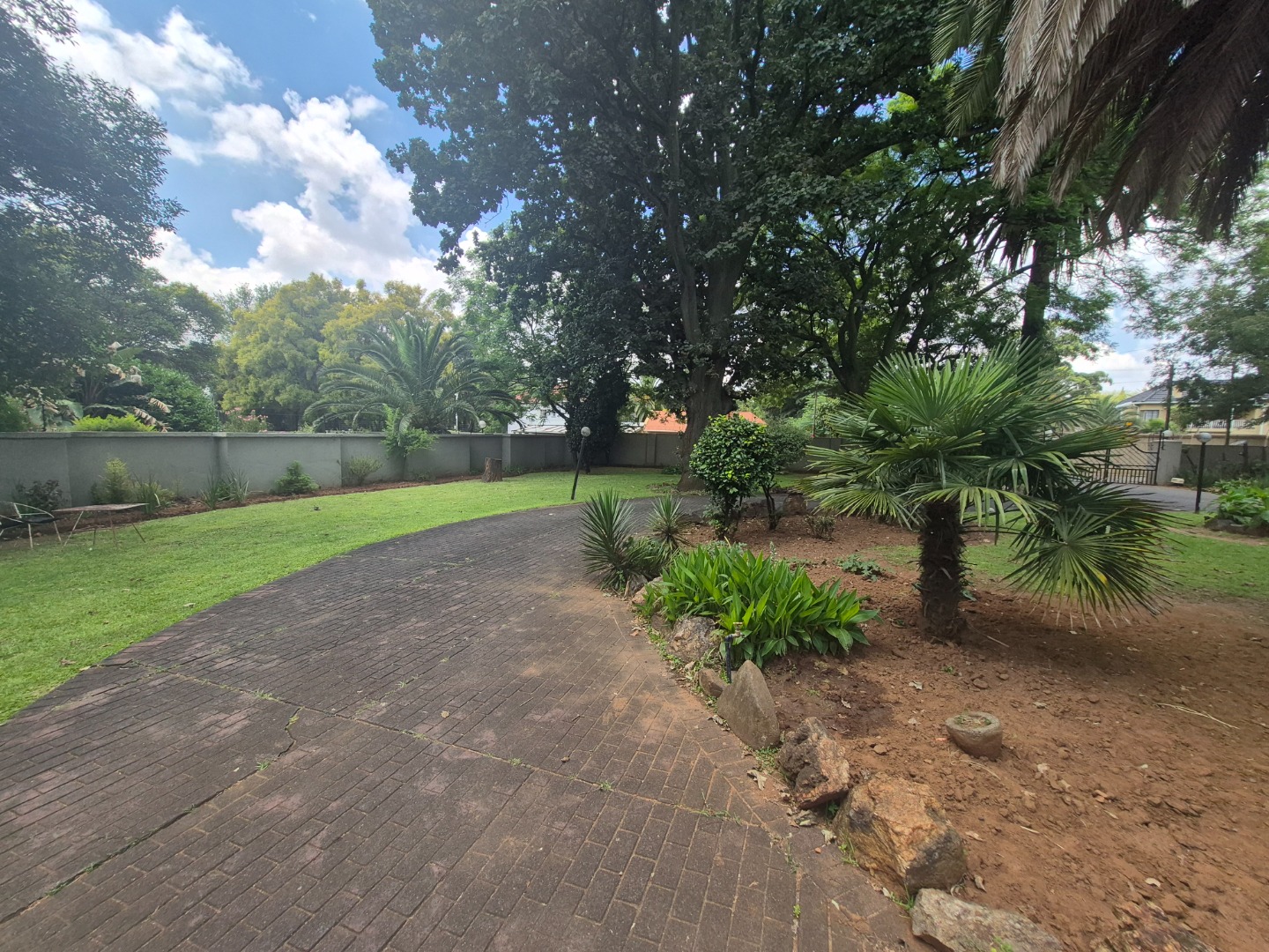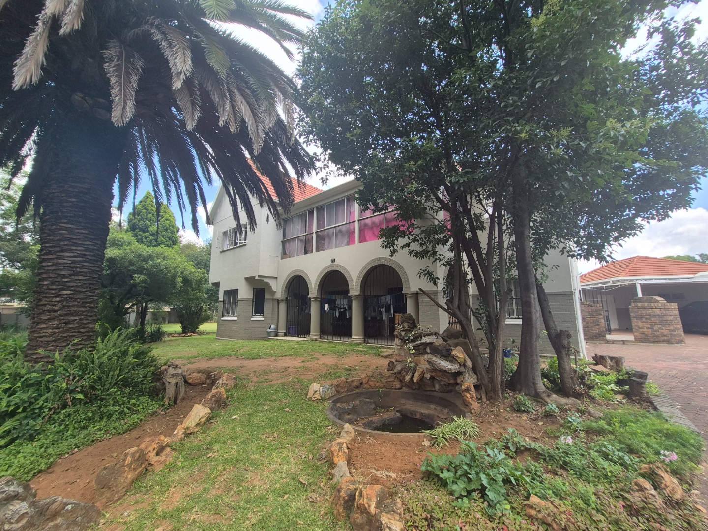 Discover this impressive two-story residence, boasting a classic red tiled roof and a charming two-toned exterior that exudes traditional appeal. Set on a generous 4047 sqm erf, the property features a large, lush garden with mature trees, creating a private oasis for relaxation and outdoor activities. Enjoy leisurely moments on the patio or take a refreshing dip in the swimming pool. The expansive grounds also include a paved driveway offering ample parking for up to ten vehicles, complemented by three dedicated garages and additional storage space, ensuring convenience for residents and guests alike.