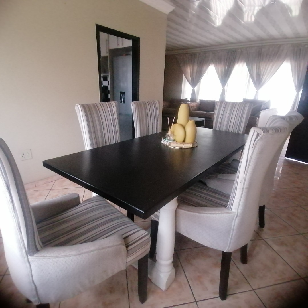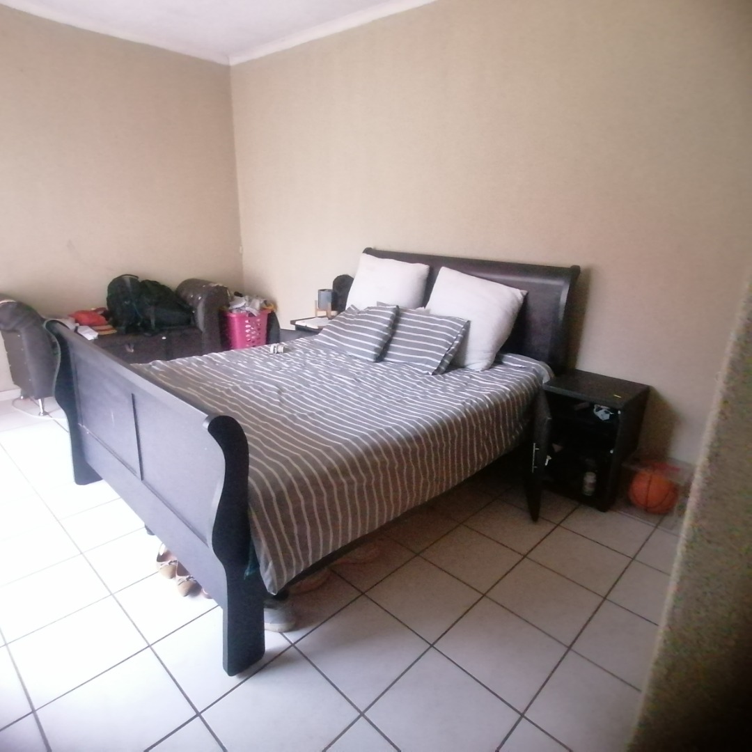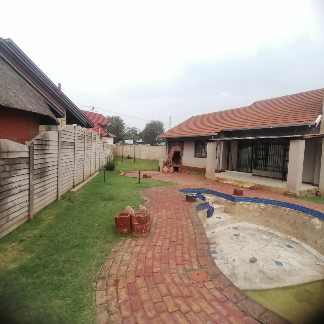 Discover this inviting 3-bedroom family home situated on a generous 805 sqm erf in the established suburb of Leondale, Germiston. The property presents a modern house design with a durable tiled roof and a solid perimeter wall, offering both privacy and security. A well-maintained lawn and paved pathways enhance the kerb appeal, creating a welcoming first impression. Step inside to an open-plan living and dining area, featuring practical tiled flooring throughout. The lounge is a comfortable space, complete with a functional fireplace and a decorative wooden accent wall, perfect for family gatherings. Large windows ensure ample natural light fills the interior, creating a bright and airy atmosphere. The residence offers three comfortable bedrooms and 1.5 bathrooms, providing adequate accommodation for a family. The layout ensures a practical flow between living spaces and private areas. Outdoor living is well catered for with a spacious garden and a refreshing swimming pool, ideal for relaxation and entertaining. The property also boasts a double garage and an impressive six parking spaces, accommodating multiple vehicles with ease. Additional features include domestic rooms and burglar bars for enhanced security. This home combines comfortable living with practical amenities, making it an excellent opportunity for those seeking a well-located property in Germiston. Key Features: * 3 Bedrooms, 1.5 Bathrooms * Open-plan Lounge and Dining * Fireplace * Swimming Pool * Double Garage & 6 Parking Spaces * 805 sqm Erf, 226 sqm Floor Size * Paved Areas & Garden * Domestic Rooms