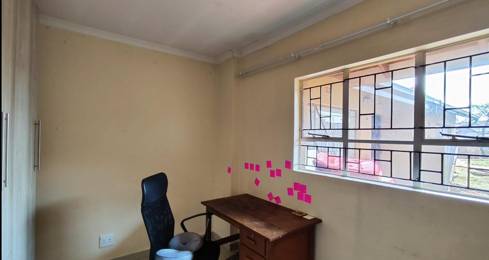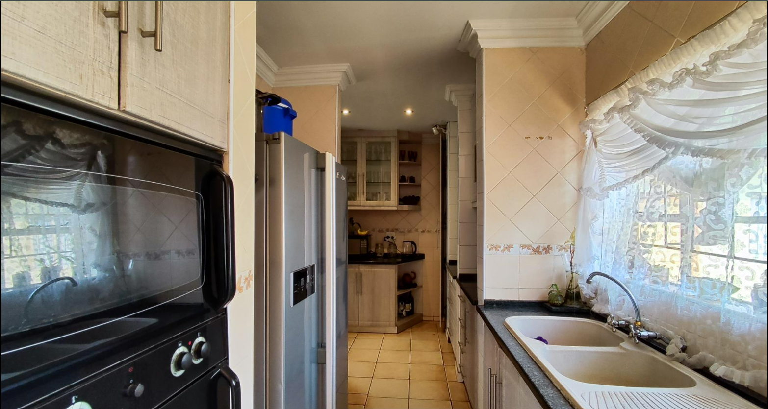This inviting single-story residence in Leondale, Germiston, presents a warm orange-brown exterior complemented by a well-maintained terracotta tiled roof. Set on an expansive 805 sqm erf, the property offers a partially grassed front yard and a welcoming facade, hinting at the spacious interiors within its 215 sqm floor size. Security bars on all visible windows provide an immediate sense of safety and peace of mind. Step inside to discover an adaptable layout featuring open-plan living areas designed for comfortable family life. The home includes a dedicated dining room and multiple versatile living spaces, some adorned with decorative ceiling cornices and ceiling roses, adding character. Tiled flooring extends throughout, ensuring practicality and easy maintenance. One living area seamlessly integrates with a compact kitchenette, while another open-concept space boasts a stone-clad feature wall, creating a focal point. The functional kitchen is equipped with a built-in oven, a large double-door refrigerator, and ample cabinet and counter space, alongside a double sink under a window. A separate galley-style area offers additional modern appliances and laundry facilities. The residence comprises four well-proportioned bedrooms, each offering natural light. One bedroom features a built-in wardrobe, while another showcases vibrant purple walls, allowing for personal expression. The home is serviced by three bathrooms. The property boasts a generous garden area, offering potential for outdoor enjoyment and landscaping. Parking is abundant with two garages and additional space for four vehicles, including a convenient carport. The inclusion of staff quarters adds further utility. This pet-friendly home is ideal for families seeking space and convenience in a suburban setting. Located in the established suburb of Leondale, Germiston, this property offers a suburban lifestyle with convenient access to local amenities and transport routes. Key Features: * 4 Bedrooms, 3 Bathrooms * 805 sqm Erf, 215 sqm Floor Size * 2 Garages, 4 Parking Spaces (including carport) * Open-Plan Living Areas * Functional Kitchen with Built-in Oven * Staff Quarters * Pet-Friendly Property * Tiled Flooring Throughout * Security Bars on Windows * Garden Area