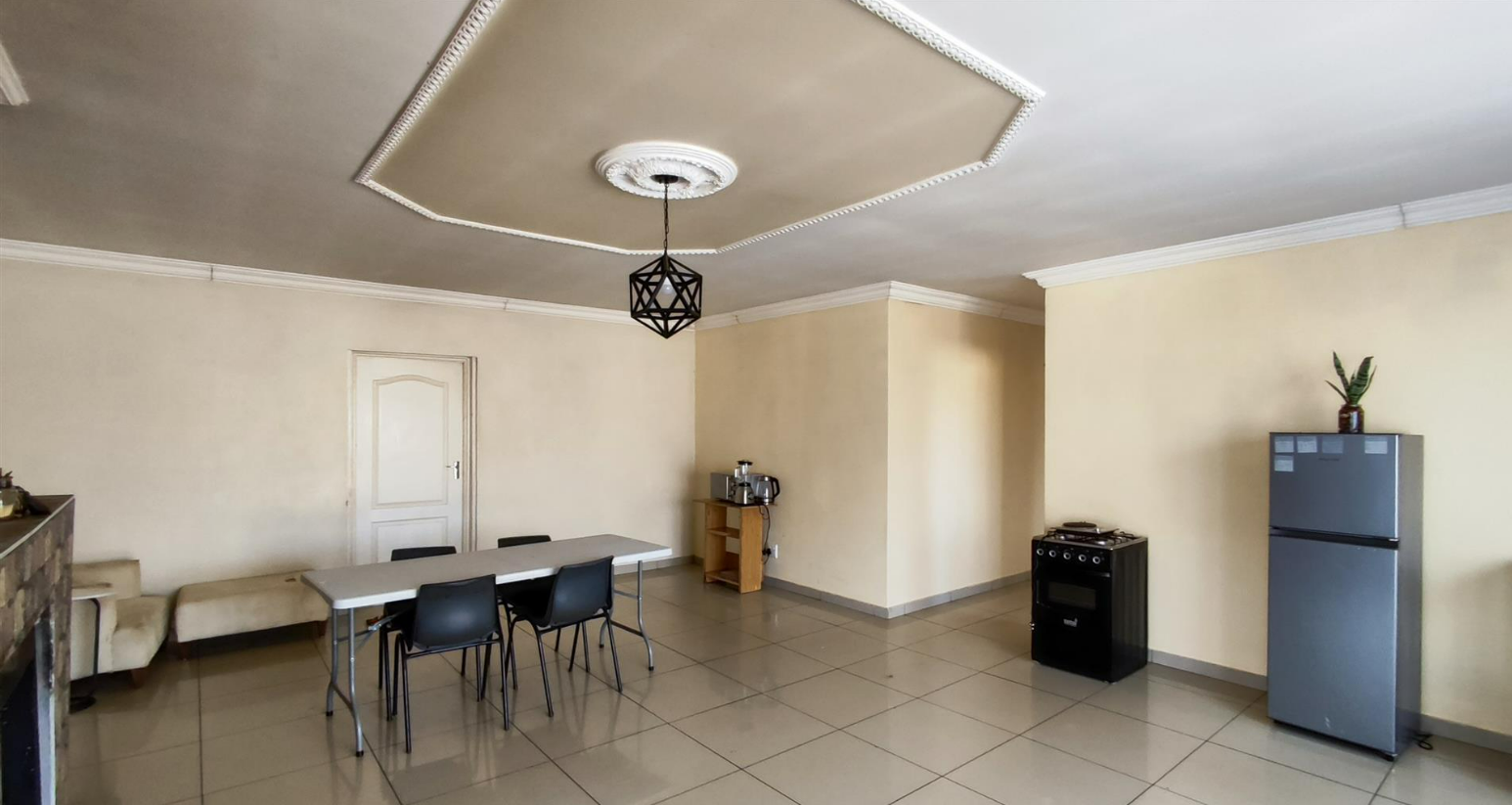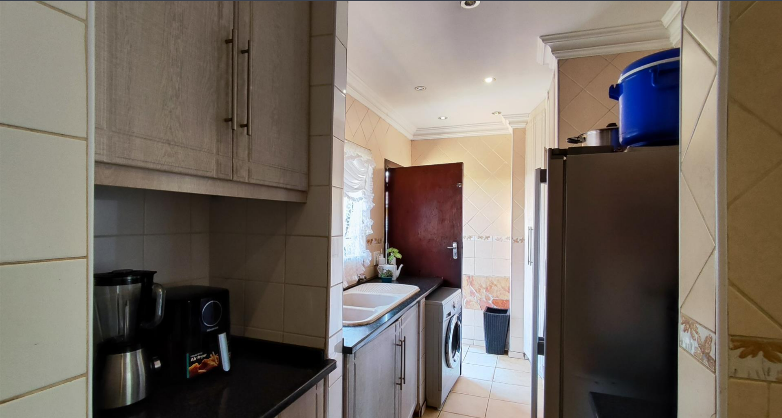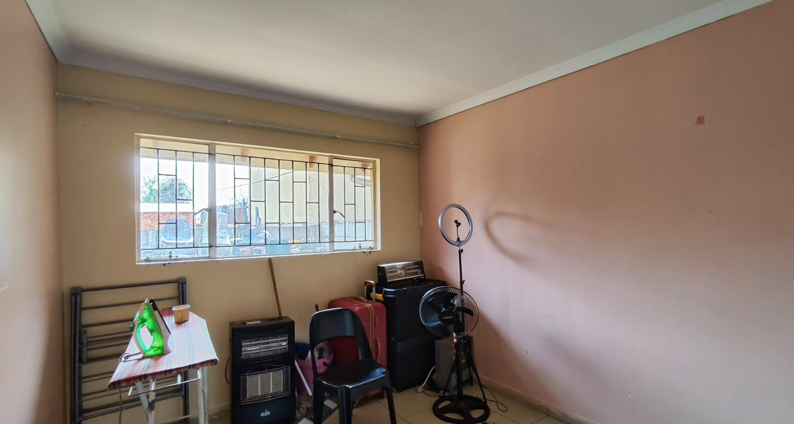 This inviting single-story residence in Leondale, Germiston, presents a warm orange-brown exterior complemented by a well-maintained terracotta tiled roof. Set on an expansive 805 sqm erf, the property offers a partially grassed front yard and a welcoming facade, hinting at the spacious interiors within its 215 sqm floor size. Security bars on all visible windows provide an immediate sense of safety and peace of mind. Step inside to discover an adaptable layout featuring open-plan living areas designed for comfortable family life. The home includes a dedicated dining room and multiple versatile living spaces, some adorned with decorative ceiling cornices and ceiling roses, adding character. Tiled flooring extends throughout, ensuring practicality and easy maintenance. One living area seamlessly integrates with a compact kitchenette, while another open-concept space boasts a stone-clad feature wall, creating a focal point. The functional kitchen is equipped with a built-in oven, a large double-door refrigerator, and ample cabinet and counter space, alongside a double sink under a window. A separate galley-style area offers additional modern appliances and laundry facilities. The residence comprises four well-proportioned bedrooms, each offering natural light. One bedroom features a built-in wardrobe, while another showcases vibrant purple walls, allowing for personal expression. The home is serviced by three bathrooms. The property boasts a generous garden area, offering potential for outdoor enjoyment and landscaping. Parking is abundant with two garages and additional space for four vehicles, including a convenient carport. The inclusion of staff quarters adds further utility. This pet-friendly home is ideal for families seeking space and convenience in a suburban setting. Located in the established suburb of Leondale, Germiston, this property offers a suburban lifestyle with convenient access to local amenities and transport routes. Key Features: * 4 Bedrooms, 3 Bathrooms * 805 sqm Erf, 215 sqm Floor Size * 2 Garages, 4 Parking Spaces (including carport) * Open-Plan Living Areas * Functional Kitchen with Built-in Oven * Staff Quarters * Pet-Friendly Property * Tiled Flooring Throughout * Security Bars on Windows * Garden Area