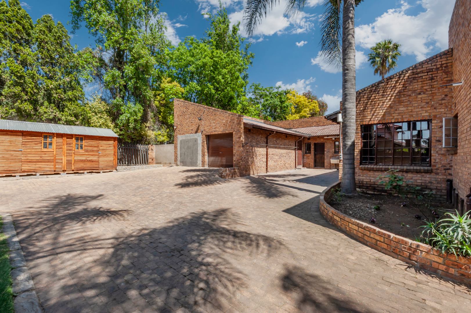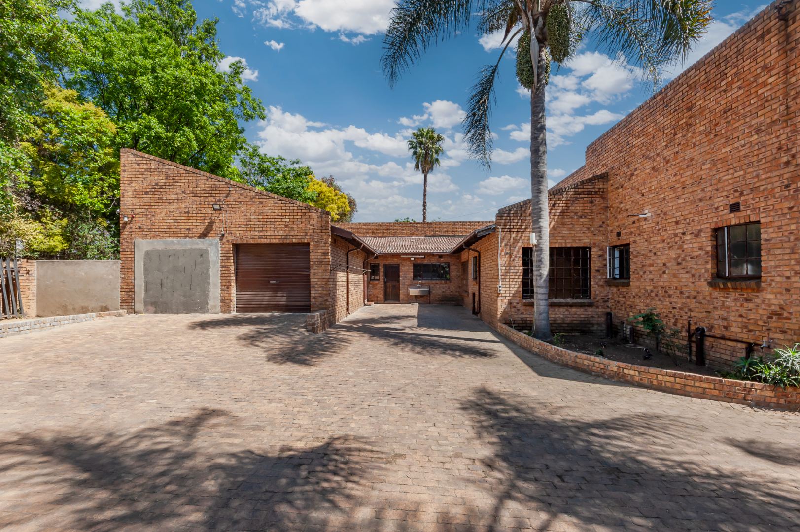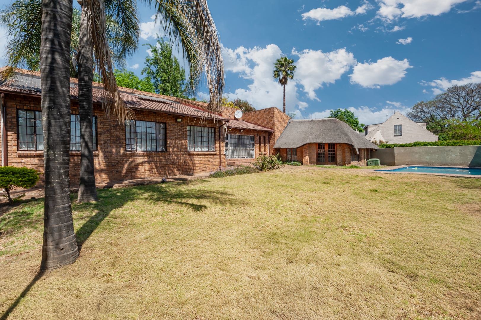 The outdoor space is designed for relaxation and entertainment, featuring a sparkling pool, a lapa, neatly paved surroundings, and welcoming palm trees. A tandem garage and ample parking space complete the main residence, with a bachelor unit ideal for support staff.