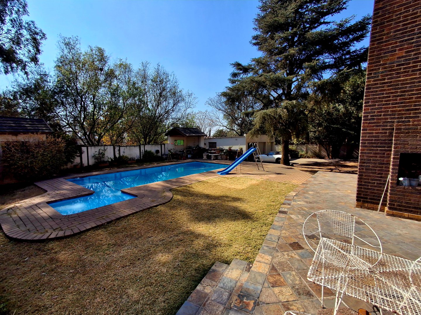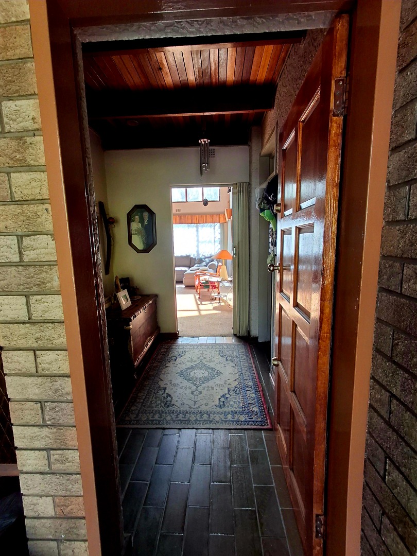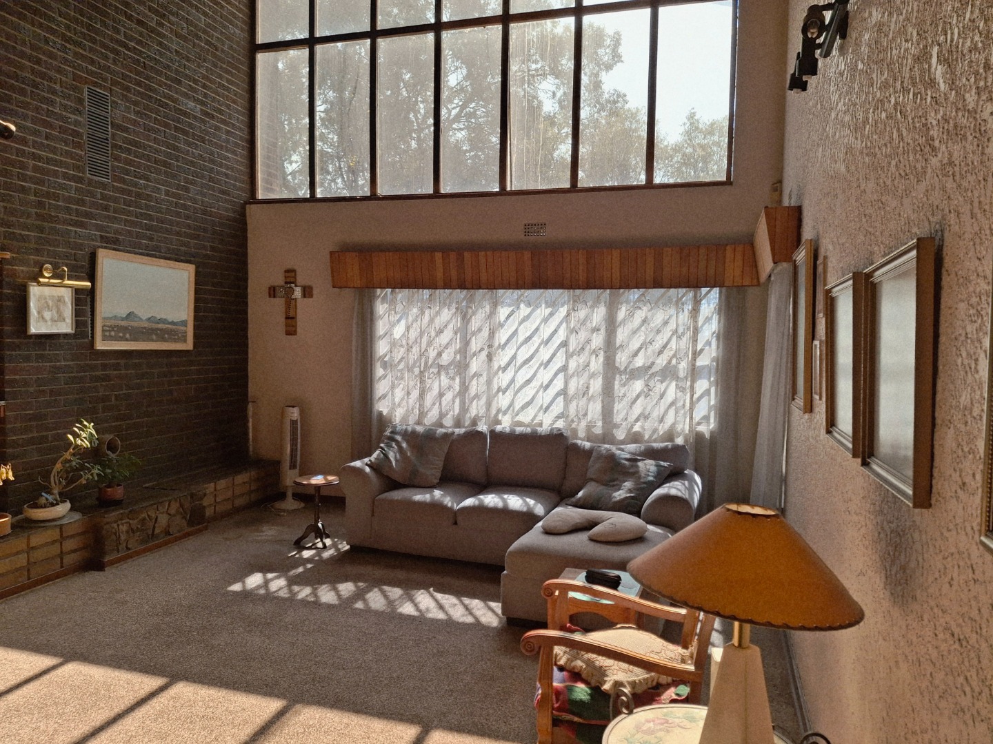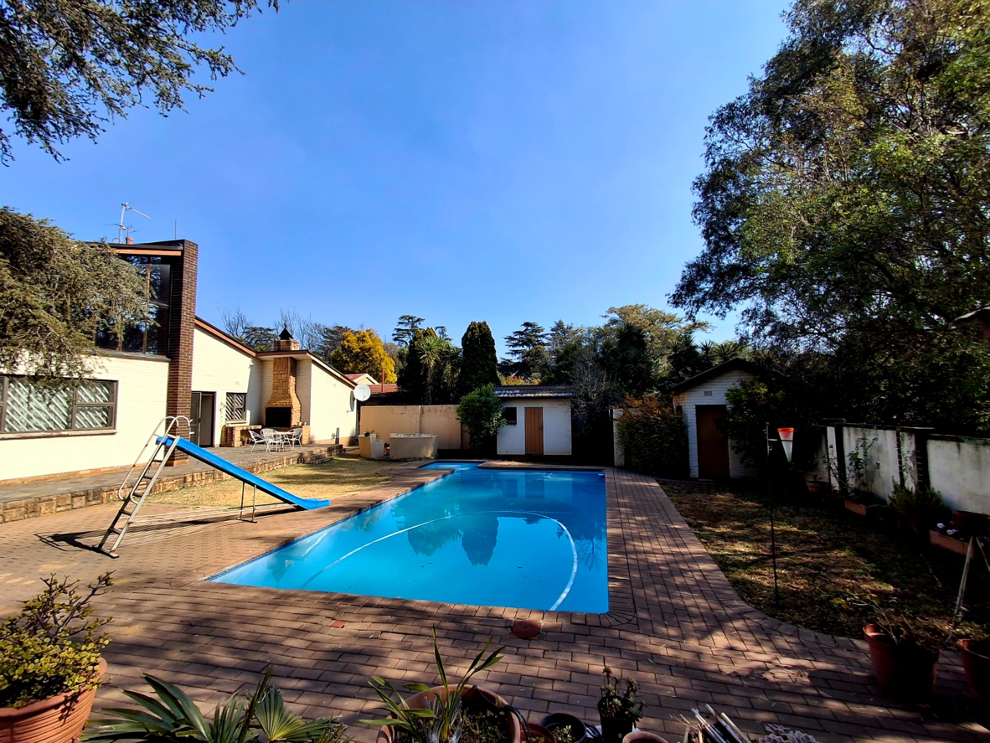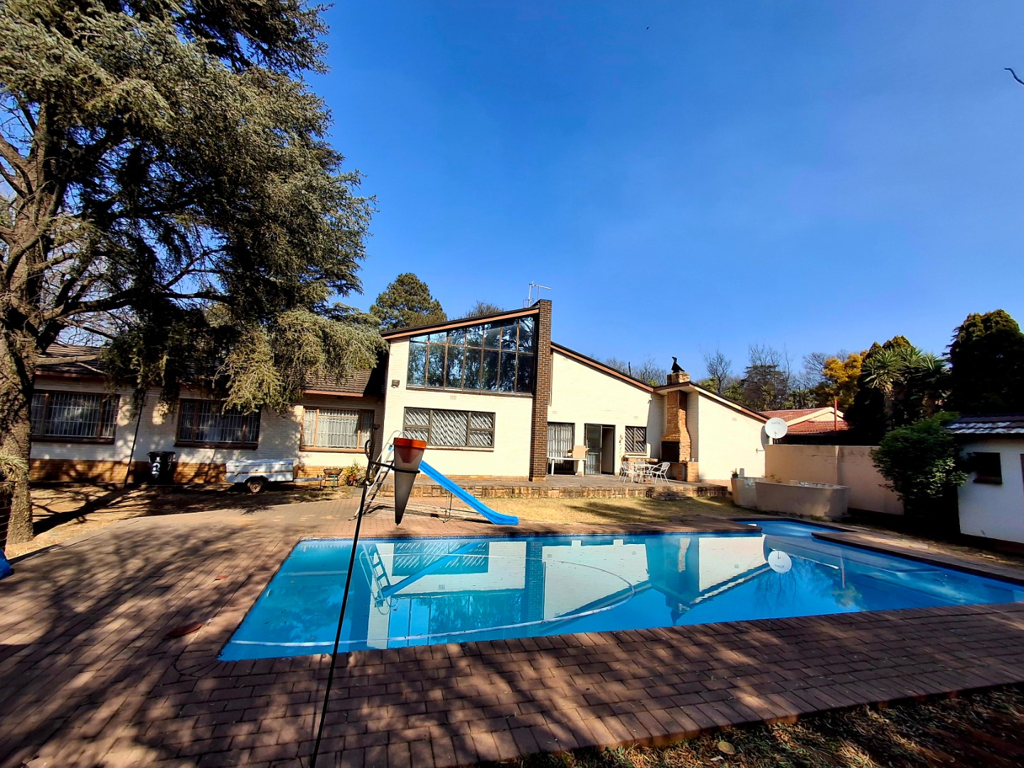 Discover this spacious family home nestled in the established suburban area of Parkhill Gardens, Germiston. Boasting a distinctive architectural design with stone accents, light brick walls, and a sloped roof, the property offers significant kerb appeal. Upon entry, an inviting entrance hall leads to two generous lounges and a dedicated dining room, providing ample space for both relaxation and entertaining. The living areas are characterized by high vaulted wooden ceilings and large windows, ensuring abundant natural light throughout, creating a bright and airy atmosphere. While some interior finishes present an opportunity for modern updates, the inherent character and spaciousness are undeniable. The functional kitchen features an L-shaped layout with extensive counter space, numerous cabinets, and built-in cooking appliances, catering to all culinary needs. The residence comprises five comfortable bedrooms, with one offering an en-suite bathroom, complemented by two additional bathrooms for convenience. A dedicated study provides a quiet space for work or hobbies, enhancing the home's versatility. Outdoor living is well-catered for on the expansive 1910 sqm erf. Enjoy a private balcony, a refreshing swimming pool, and a patio perfect for al fresco dining. The property also includes a lapa with a built-in braai, ideal for entertaining. With three garages and six additional parking spaces, vehicle accommodation is plentiful. The home is pet-friendly and includes domestic rooms. Security is enhanced by an alarm system, access gate, burglar bars, and a totally walled perimeter, ensuring peace of mind. Fibre connectivity is available. Parkhill Gardens offers a tranquil suburban lifestyle within Germiston, South Africa, providing a convenient location for families. This property presents a fantastic opportunity to acquire a substantial home with excellent potential for customisation and modernisation. Key Features: * 5 Bedrooms, 3 Bathrooms (1 En-suite) * 2 Lounges, 1 Dining Room, 1 Kitchen * Dedicated Study * Expansive 1910 sqm Erf * Swimming Pool, Patio, Balcony, Lapa with Built-in Braai * 3 Garages, 6 Parking Spaces * Alarm System, Access Gate, Burglar Bars * Fibre Ready * Pet-Friendly with Domestic Rooms