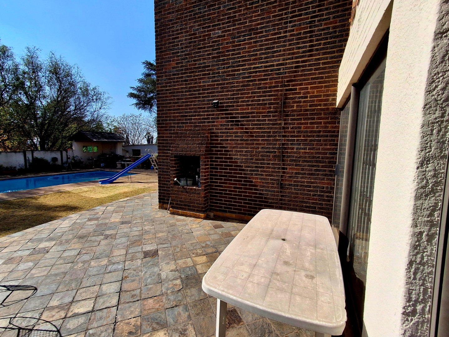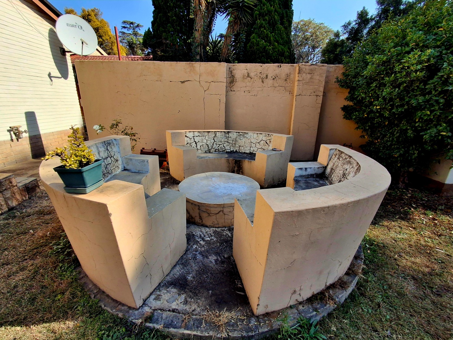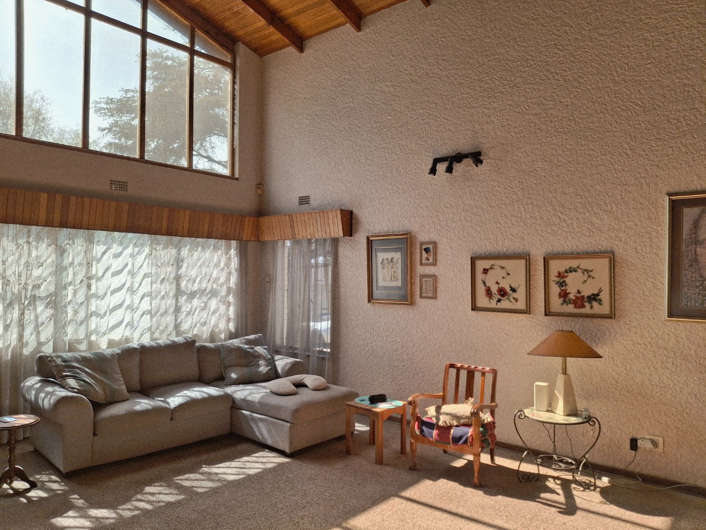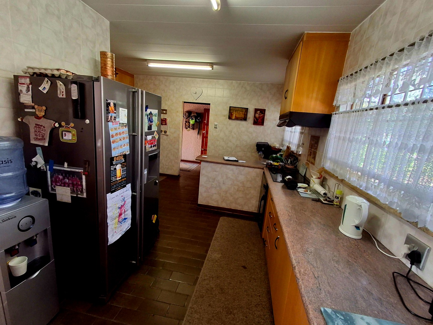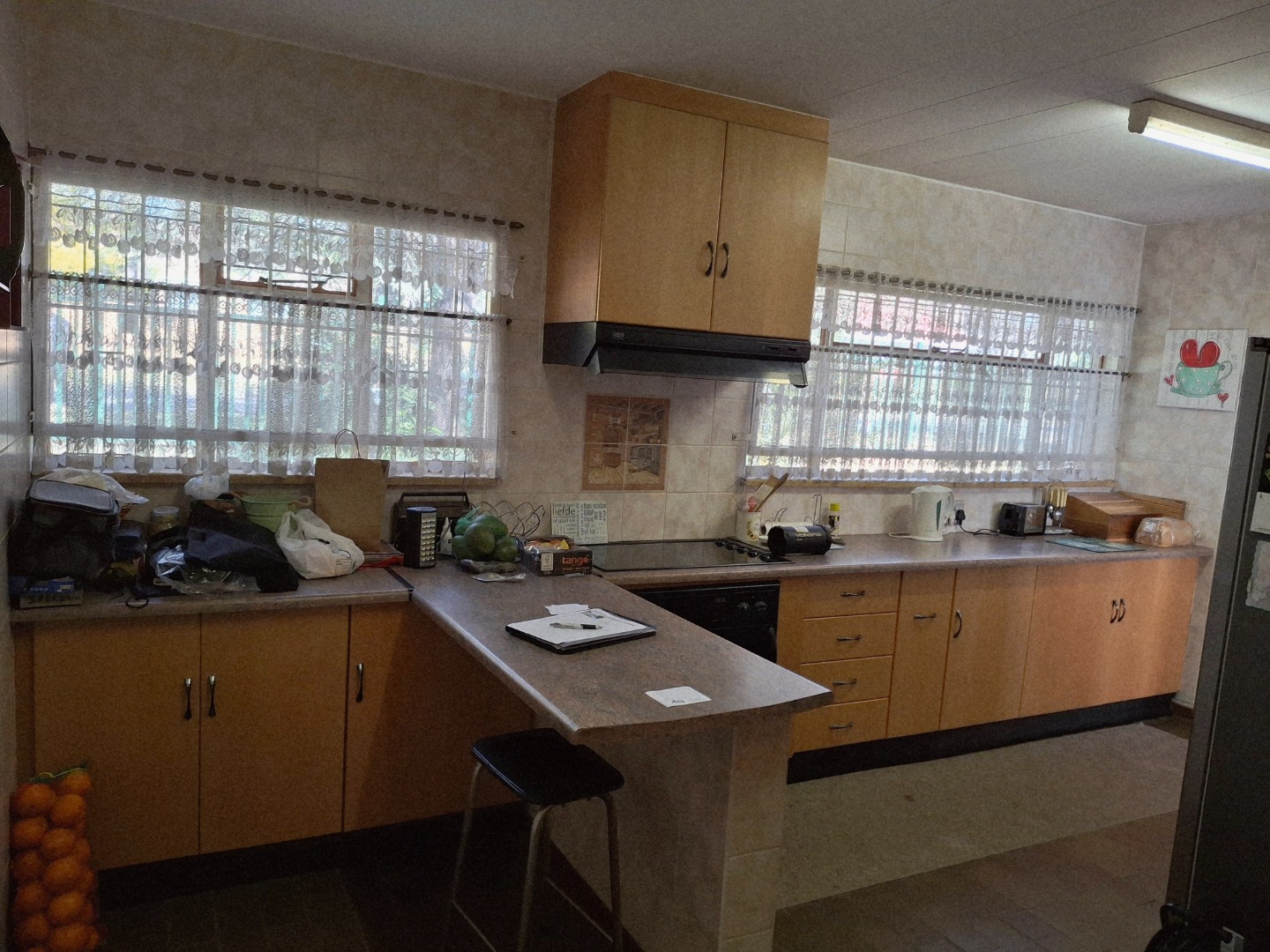 Discover this spacious family home nestled in the established suburban area of Parkhill Gardens, Germiston. Boasting a distinctive architectural design with stone accents, light brick walls, and a sloped roof, the property offers significant kerb appeal. Upon entry, an inviting entrance hall leads to two generous lounges and a dedicated dining room, providing ample space for both relaxation and entertaining. The living areas are characterized by high vaulted wooden ceilings and large windows, ensuring abundant natural light throughout, creating a bright and airy atmosphere. While some interior finishes present an opportunity for modern updates, the inherent character and spaciousness are undeniable. The functional kitchen features an L-shaped layout with extensive counter space, numerous cabinets, and built-in cooking appliances, catering to all culinary needs. The residence comprises five comfortable bedrooms, with one offering an en-suite bathroom, complemented by two additional bathrooms for convenience. A dedicated study provides a quiet space for work or hobbies, enhancing the home's versatility. Outdoor living is well-catered for on the expansive 1910 sqm erf. Enjoy a private balcony, a refreshing swimming pool, and a patio perfect for al fresco dining. The property also includes a lapa with a built-in braai, ideal for entertaining. With three garages and six additional parking spaces, vehicle accommodation is plentiful. The home is pet-friendly and includes domestic rooms. Security is enhanced by an alarm system, access gate, burglar bars, and a totally walled perimeter, ensuring peace of mind. Fibre connectivity is available. Parkhill Gardens offers a tranquil suburban lifestyle within Germiston, South Africa, providing a convenient location for families. This property presents a fantastic opportunity to acquire a substantial home with excellent potential for customisation and modernisation. Key Features: * 5 Bedrooms, 3 Bathrooms (1 En-suite) * 2 Lounges, 1 Dining Room, 1 Kitchen * Dedicated Study * Expansive 1910 sqm Erf * Swimming Pool, Patio, Balcony, Lapa with Built-in Braai * 3 Garages, 6 Parking Spaces * Alarm System, Access Gate, Burglar Bars * Fibre Ready * Pet-Friendly with Domestic Rooms
