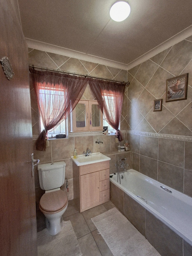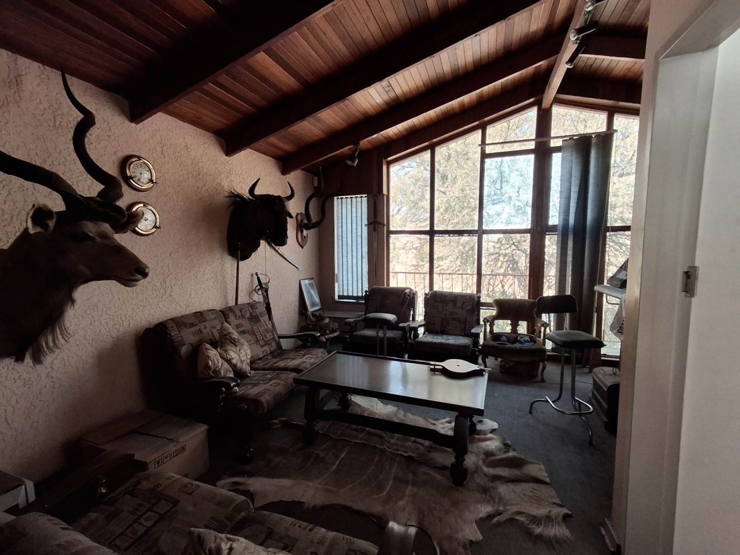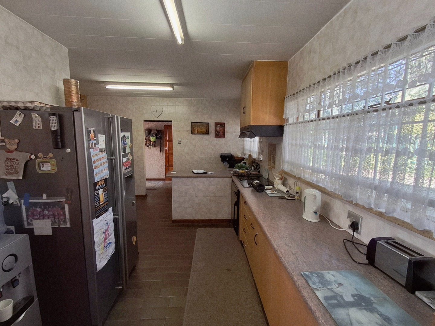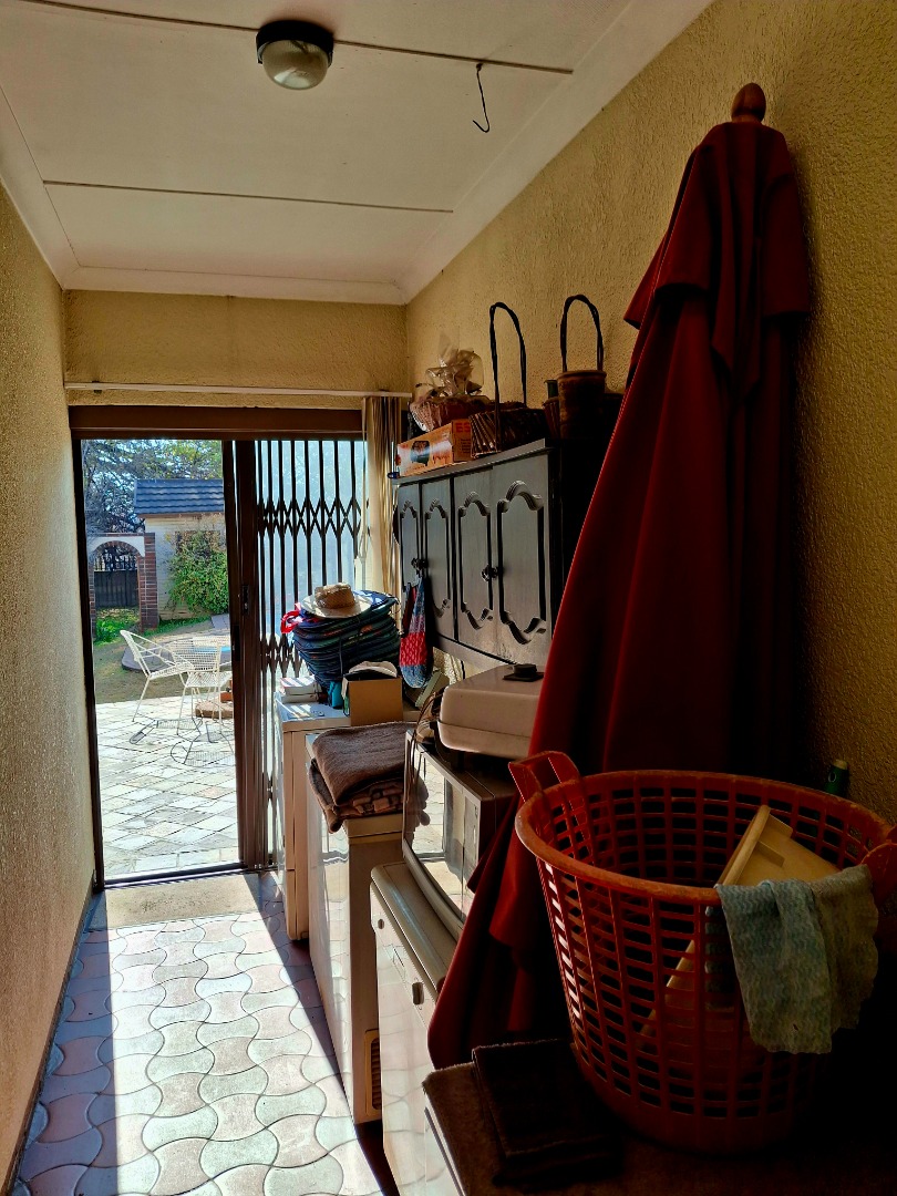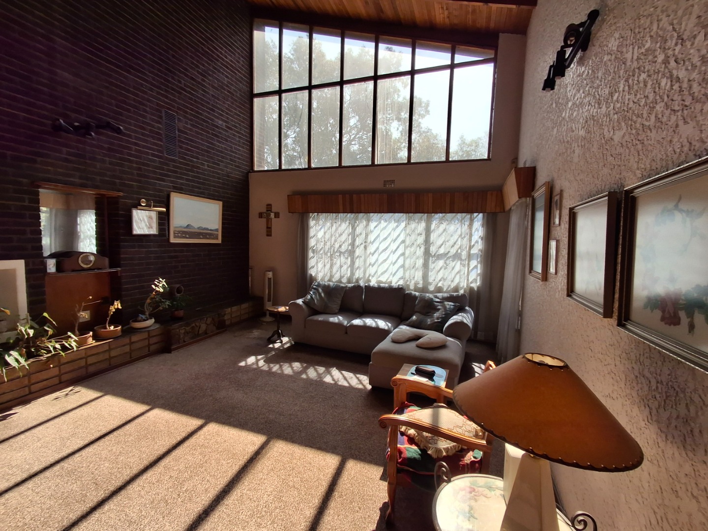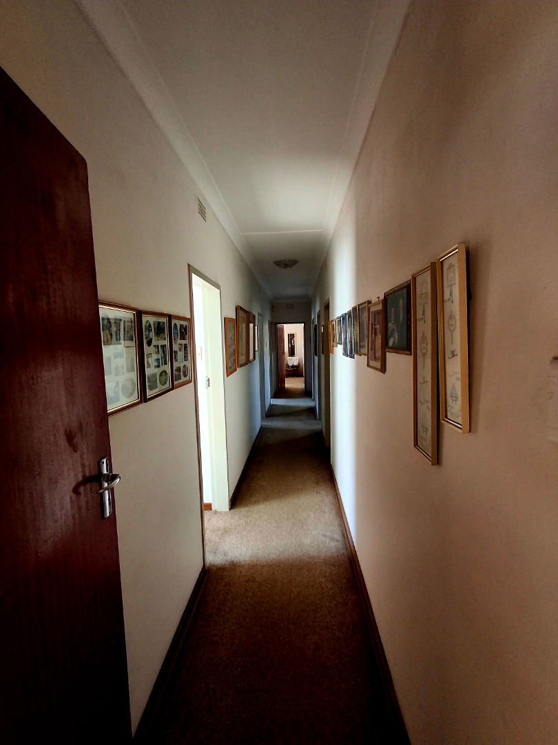 Discover this spacious family home nestled in the established suburban area of Parkhill Gardens, Germiston. Boasting a distinctive architectural design with stone accents, light brick walls, and a sloped roof, the property offers significant kerb appeal. Upon entry, an inviting entrance hall leads to two generous lounges and a dedicated dining room, providing ample space for both relaxation and entertaining. The living areas are characterized by high vaulted wooden ceilings and large windows, ensuring abundant natural light throughout, creating a bright and airy atmosphere. While some interior finishes present an opportunity for modern updates, the inherent character and spaciousness are undeniable. The functional kitchen features an L-shaped layout with extensive counter space, numerous cabinets, and built-in cooking appliances, catering to all culinary needs. The residence comprises five comfortable bedrooms, with one offering an en-suite bathroom, complemented by two additional bathrooms for convenience. A dedicated study provides a quiet space for work or hobbies, enhancing the home's versatility. Outdoor living is well-catered for on the expansive 1910 sqm erf. Enjoy a private balcony, a refreshing swimming pool, and a patio perfect for al fresco dining. The property also includes a lapa with a built-in braai, ideal for entertaining. With three garages and six additional parking spaces, vehicle accommodation is plentiful. The home is pet-friendly and includes domestic rooms. Security is enhanced by an alarm system, access gate, burglar bars, and a totally walled perimeter, ensuring peace of mind. Fibre connectivity is available. Parkhill Gardens offers a tranquil suburban lifestyle within Germiston, South Africa, providing a convenient location for families. This property presents a fantastic opportunity to acquire a substantial home with excellent potential for customisation and modernisation. Key Features: * 5 Bedrooms, 3 Bathrooms (1 En-suite) * 2 Lounges, 1 Dining Room, 1 Kitchen * Dedicated Study * Expansive 1910 sqm Erf * Swimming Pool, Patio, Balcony, Lapa with Built-in Braai * 3 Garages, 6 Parking Spaces * Alarm System, Access Gate, Burglar Bars * Fibre Ready * Pet-Friendly with Domestic Rooms