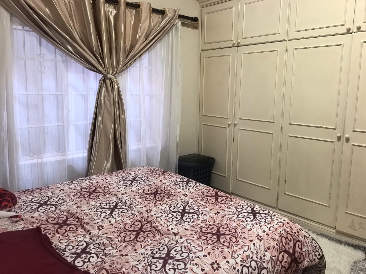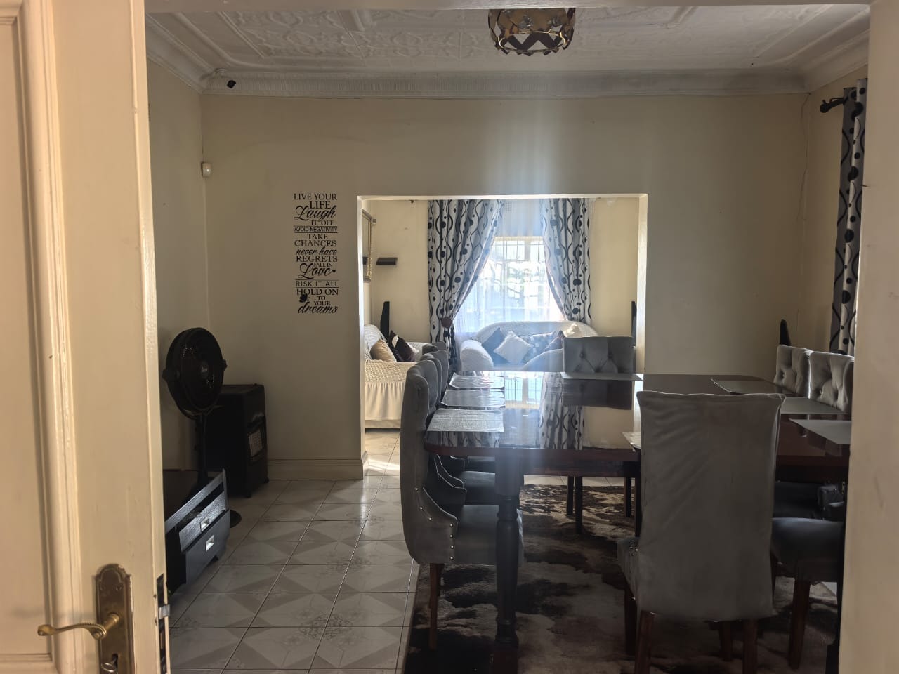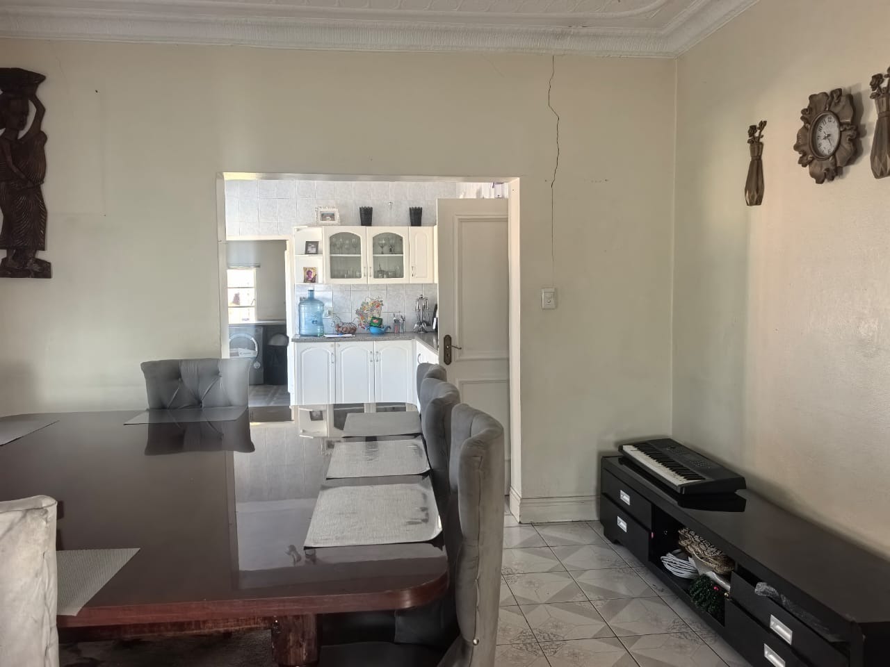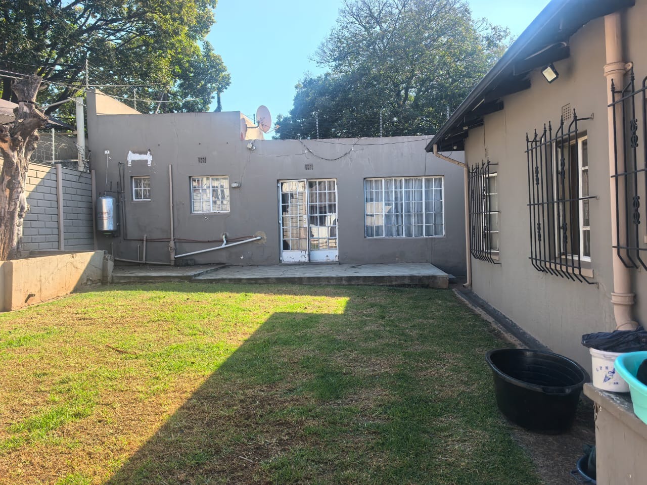 The main house offers you three bedrooms, all fitted with built-in cupboards and wall heaters, along with one full bathroom. The living areas include a lounge with a built-in floating stand, a separate dining room, and an entrance hall. Additional storage is available with a spacious linen cupboard and a store room.