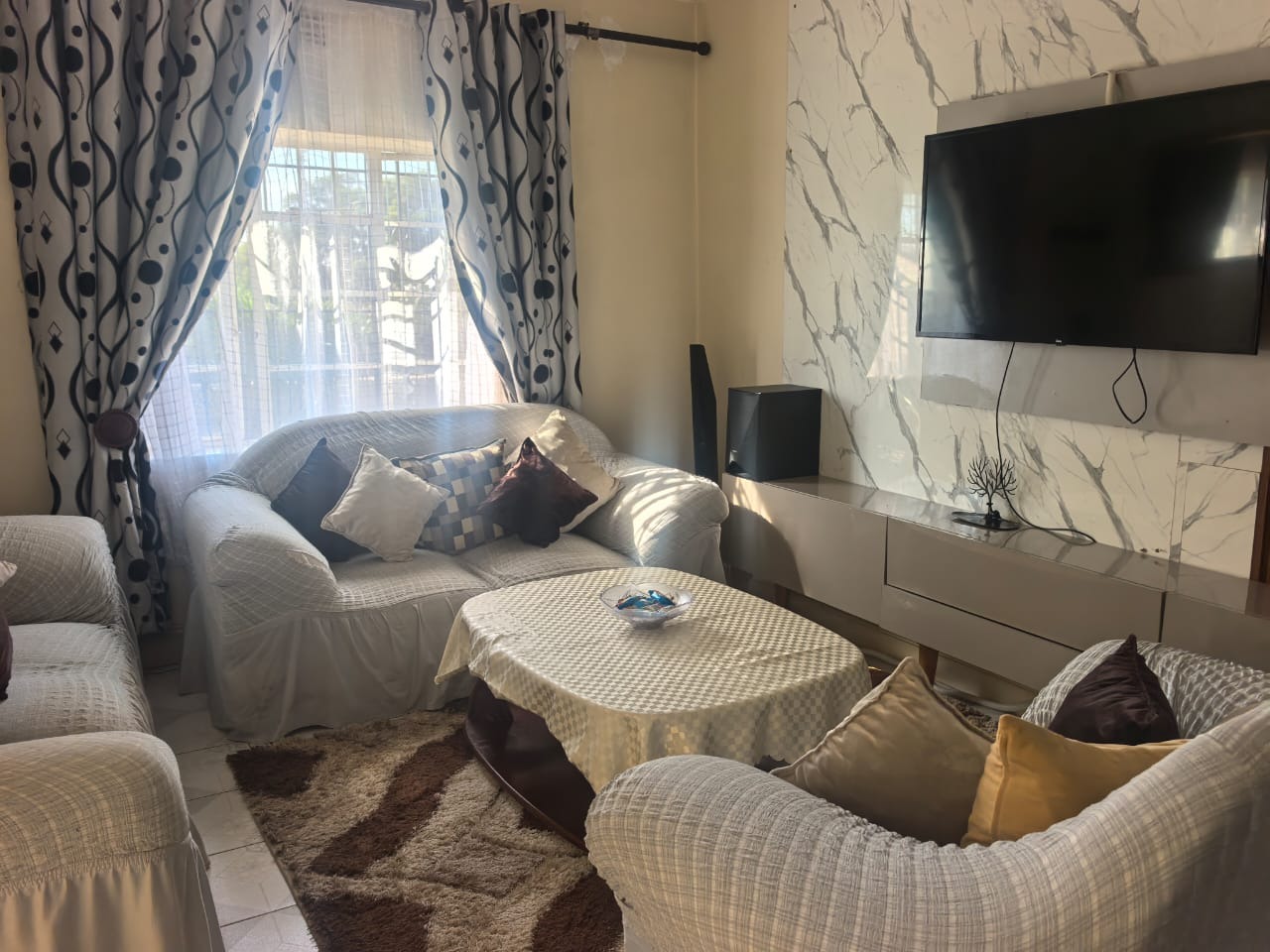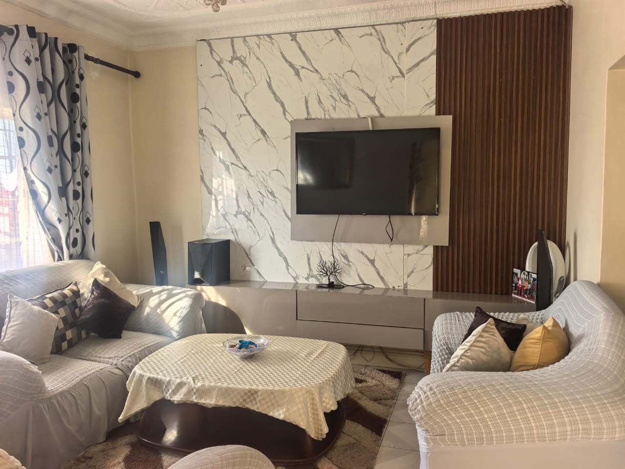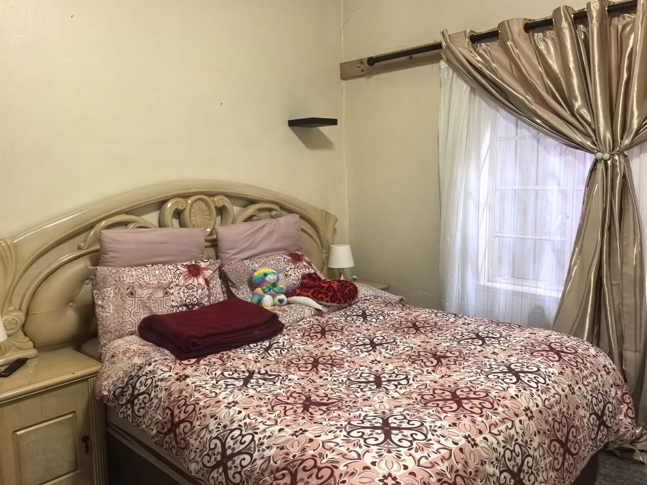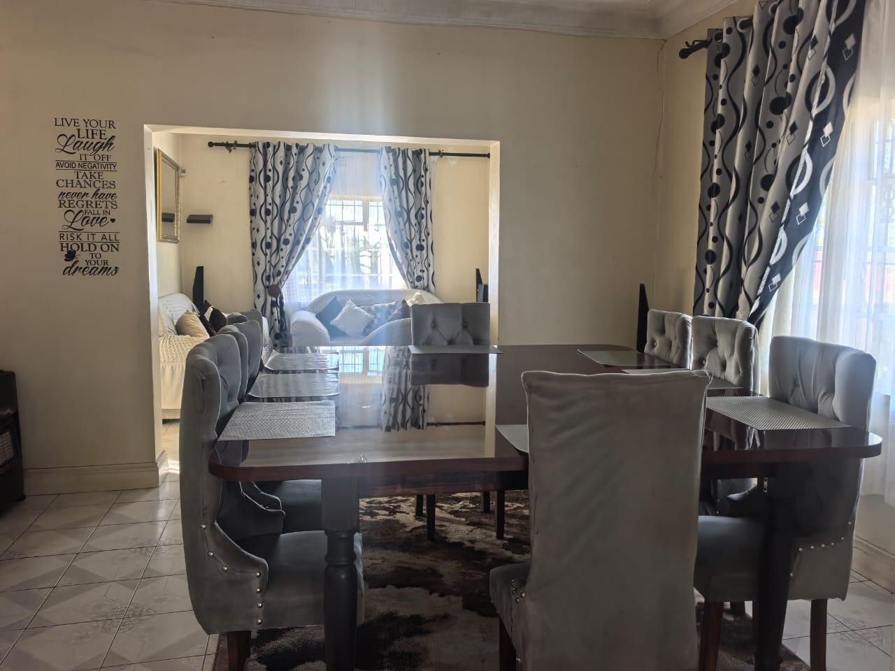 The main house offers you three bedrooms, all fitted with built-in cupboards and wall heaters, along with one full bathroom. The living areas include a lounge with a built-in floating stand, a separate dining room, and an entrance hall. Additional storage is available with a spacious linen cupboard and a store room.