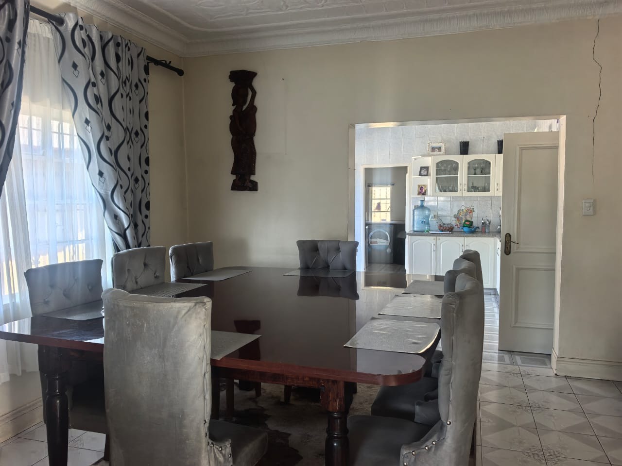 Security features include high walls, electric fencing, an automated gate, alarm system, burglar bars on all windows, and a 12-camera surveillance system.
