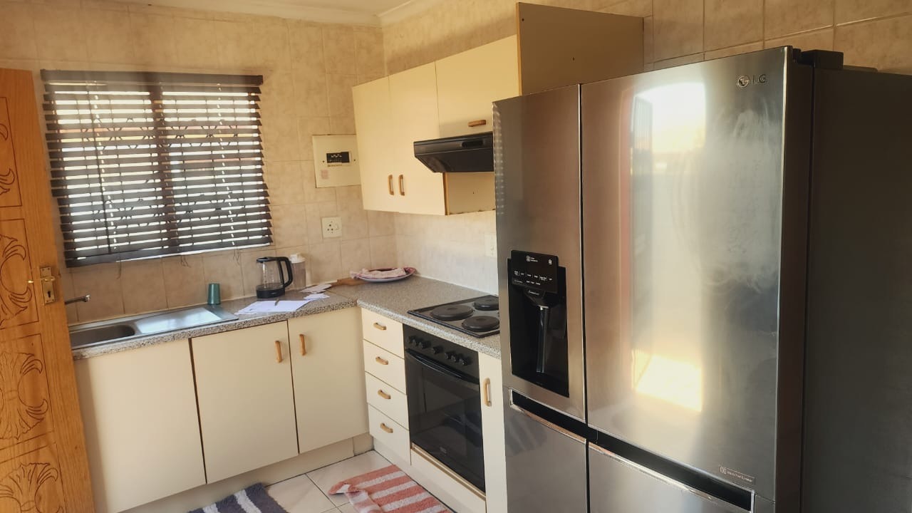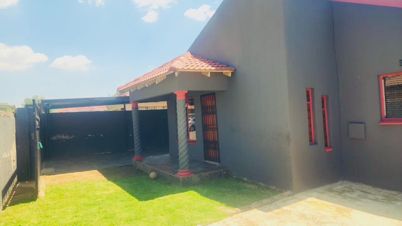 Discover this inviting 3-bedroom, 2-bathroom residence located in the established suburban area of Alveda, Johannesburg. The property presents a distinctive kerb appeal with its recently painted dark grey exterior, complemented by striking red accents on window frames and roof trim. A paved driveway leads to a covered carport, offering secure parking for two vehicles, while a front security gate enhances peace of mind. The manageable outdoor space includes a small lawn area and paved side access, bordered by a high concrete boundary wall for added privacy. Inside, the home features a functional layout designed for comfortable living. It comprises a lounge and a dining room, providing distinct areas for relaxation and meals. The kitchen is equipped with light-colored upper cabinets, some with glass inserts, a double stainless steel sink with a mixer tap, and tiled walls, offering a practical space for culinary activities. While some areas may benefit from personal touches, the foundation for a welcoming home is clearly present. Accommodation includes three well-proportioned bedrooms. One bedroom boasts built-in wardrobes, providing ample storage, and features wooden laminate flooring, adding a touch of warmth. The two bathrooms serve the household efficiently. Throughout the property, security is a key consideration, with security bars installed on windows and security gates at entry points, ensuring a secure environment for residents. Alveda offers a metropolitan lifestyle within Johannesburg, providing convenient access to local amenities and transport routes. This property represents a solid opportunity for those seeking a family home in a well-connected community. Key Features: * 3 Bedrooms, 2 Bathrooms * Covered Carport for 2 vehicles * Paved Driveway and Side Access * Security Gates and Window Bars * High Concrete Boundary Wall * Built-in Wardrobes in a Bedroom * Functional Kitchen with Tiled Walls * Lounge and Dining Room