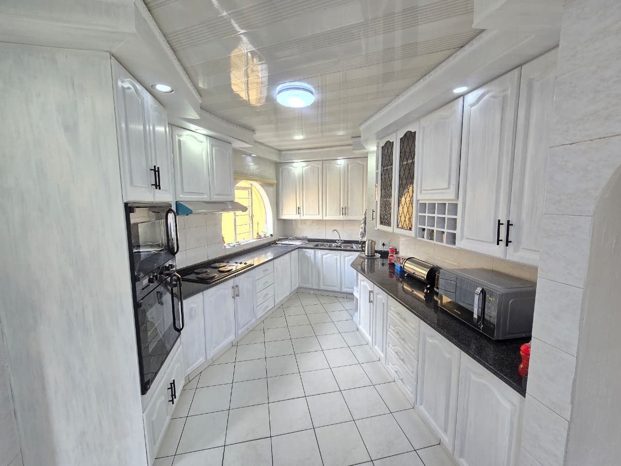 The luxurious master suite is a private sanctuary, featuring a walk-in closet, full en suite bathroom, and a dedicated jacuzzi room for ultimate relaxation. Three additional bedrooms with built-in cupboards are serviced by a second bathroom, ensuring convenience for the whole household.