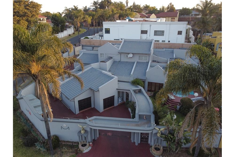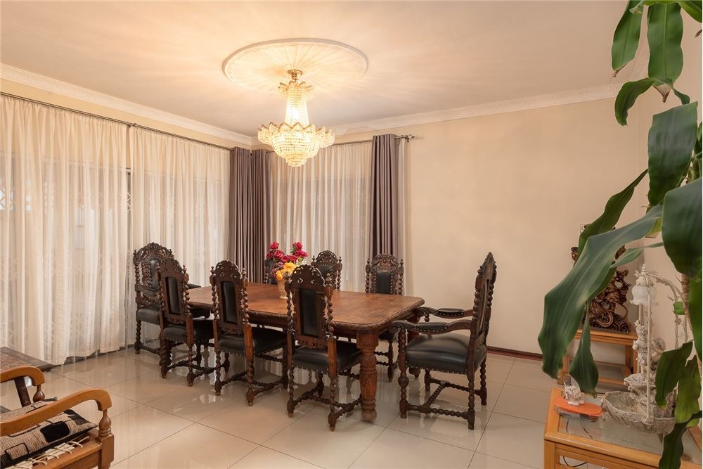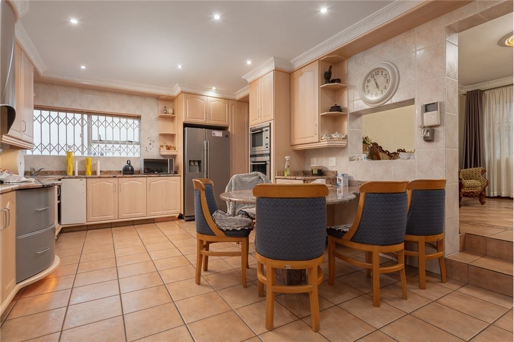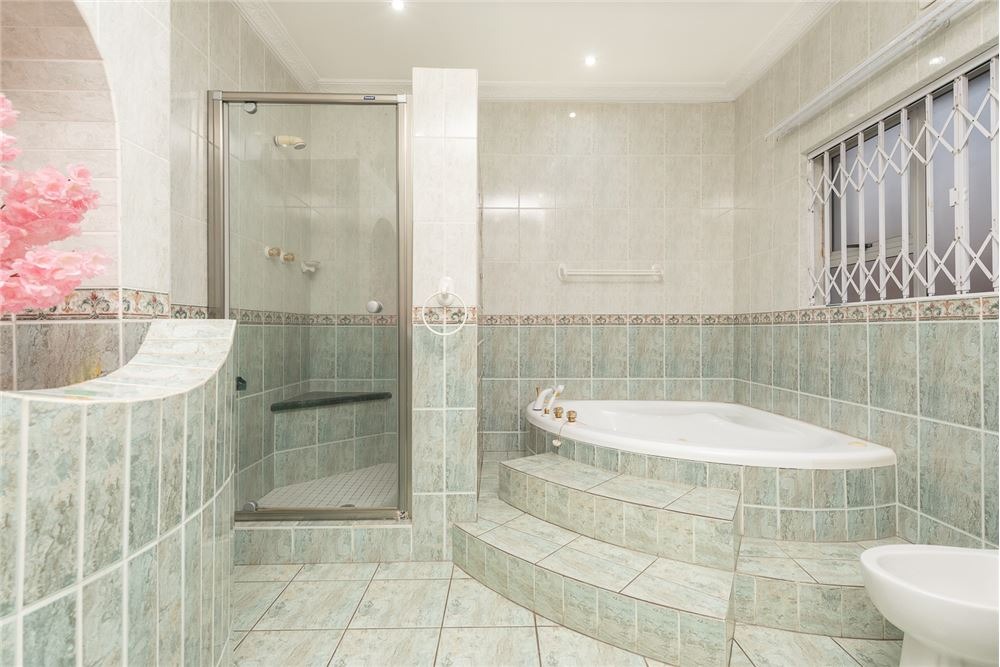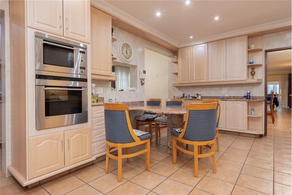 The outdoor spaces are equally impressive, featuring a meticulously maintained garden, paved walkways, built-in braai area, sparkling swimming pool, and private jacuzzi, perfect for entertaining or unwinding with family and friends. The property also includes a double garage, 10 open parking bays, and extra storage space.