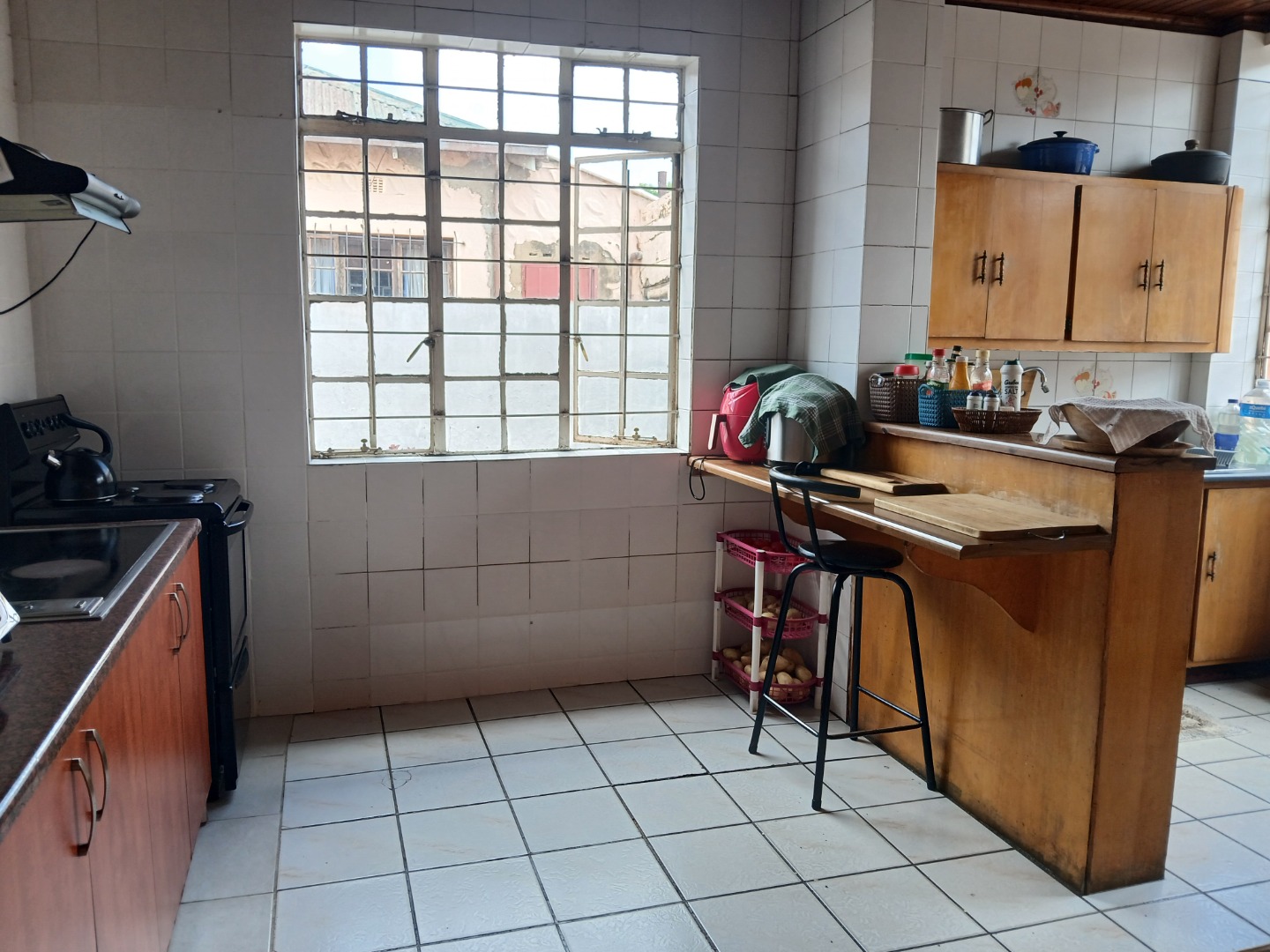 - A large kitchen with generous storage and workspace