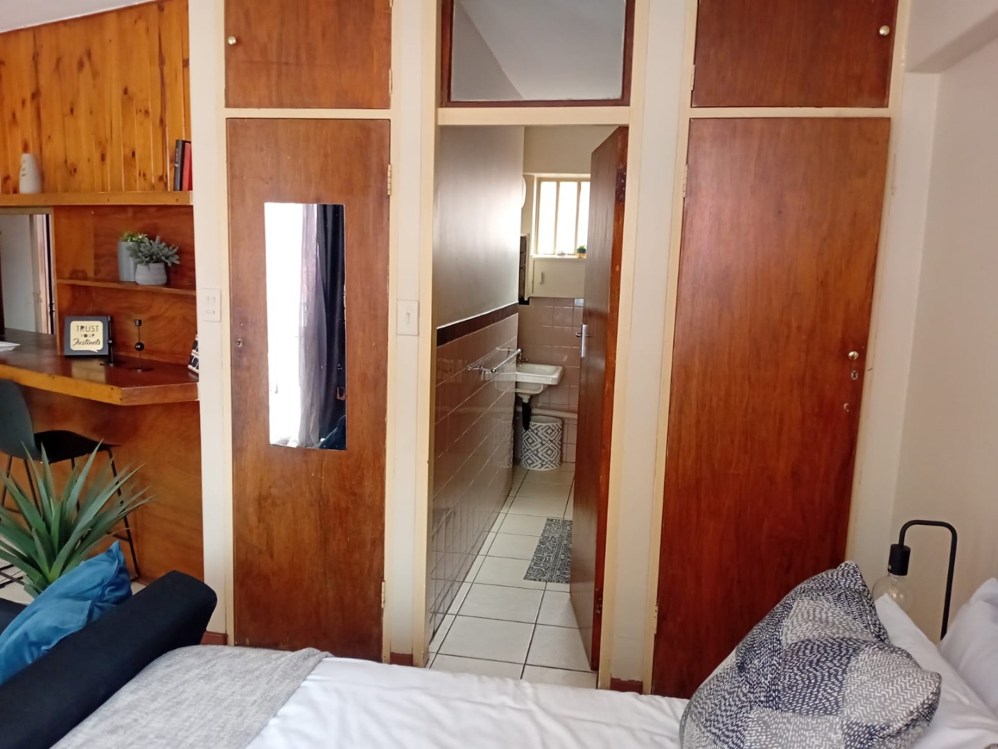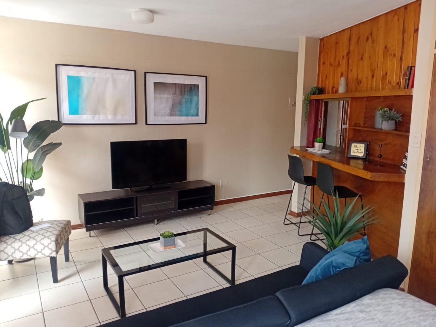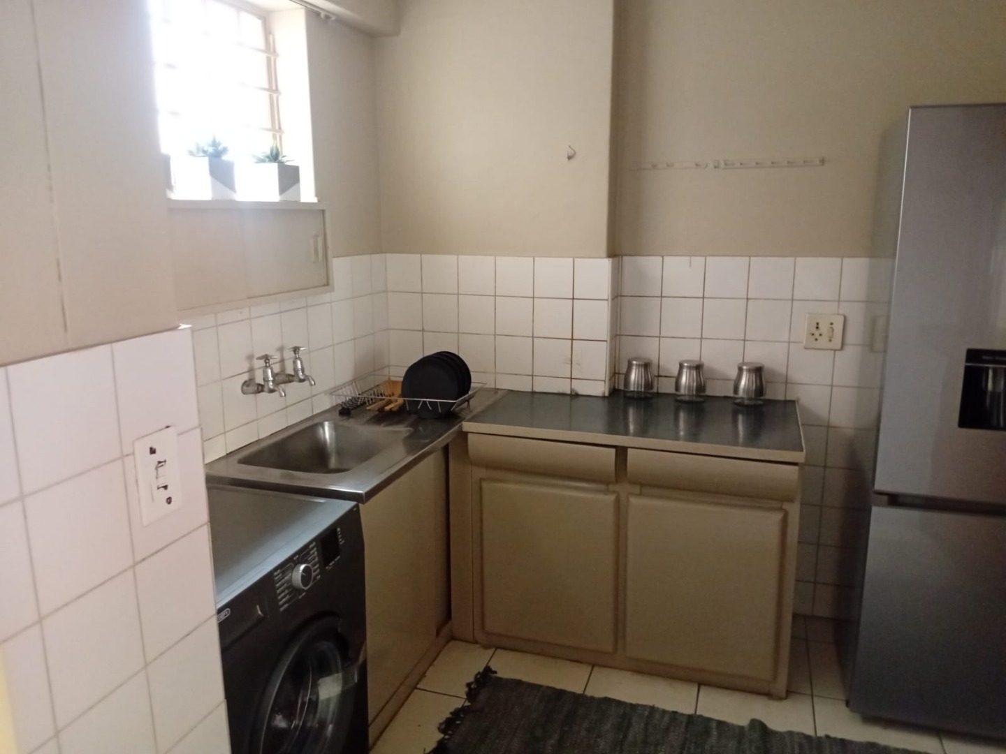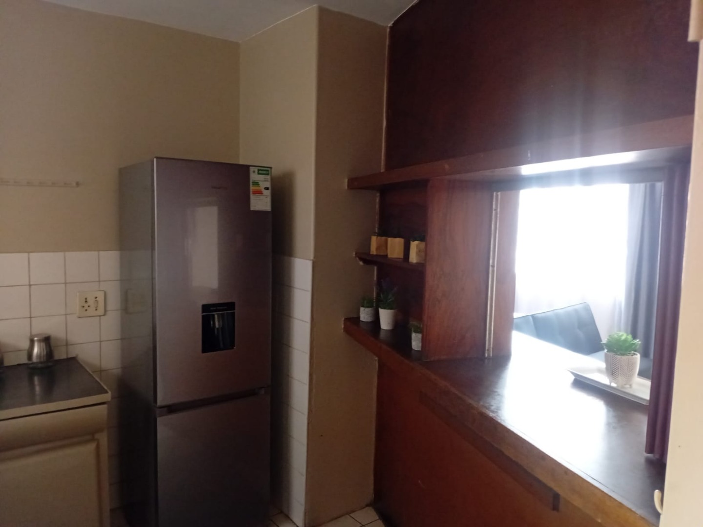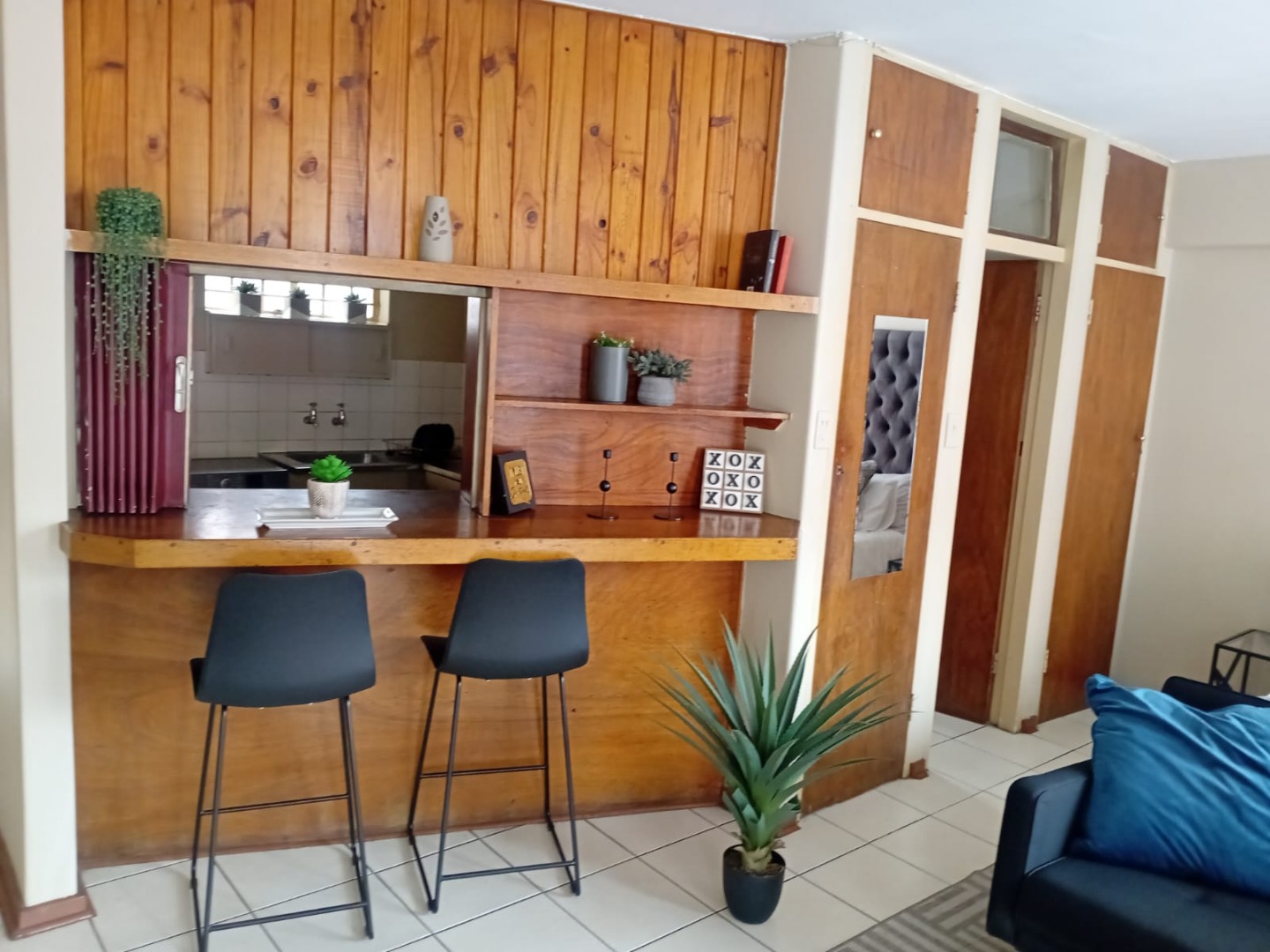Discover this inviting 1-bedroom, 1-bathroom apartment located in the vibrant metropolitan hub of Braamfontein, Johannesburg. Ideal for urban living, this property offers a blend of comfort and convenience within a secure complex. The interior features an open-plan layout, creating a seamless flow between living spaces. The contemporary living area is designed for relaxation and entertainment, boasting a comfortable dark sofa, a modern TV console, and a stylish glass coffee table. An integrated wooden bar area with stools provides a distinct space for social gatherings, complemented by abstract artwork and lush indoor plants. The entire space benefits from durable, light-colored tiled flooring, ensuring easy maintenance. The compact kitchen, while featuring some older elements, is equipped with a modern stainless steel refrigerator and a practical tiled backsplash. A functional dark wooden pass-through doubles as a breakfast bar, connecting the kitchen to an adjoining room that enjoys abundant natural light. This setup is perfect for casual dining and interaction. Residents will appreciate the property's robust security features, including 24-hour security, a security post, an access gate, and a security gate within the unit, providing peace of mind. The building also offers the convenience of lifts and satellite connectivity. With two dedicated parking bays, parking is never an issue in this bustling city environment. A private balcony offers an outdoor retreat. Braamfontein is a dynamic and central suburb in Johannesburg, known for its educational institutions, cultural attractions, and bustling urban atmosphere, making it a sought-after location for those seeking an energetic city lifestyle. Key Features: * 1 Bedroom, 1 Bathroom * Open Plan Living Area * Integrated Bar Area * Modern Stainless Steel Refrigerator * Tiled Flooring Throughout * Private Balcony * 2 Dedicated Parking Bays * 24-Hour Security Complex * Lifts and Satellite Connectivity
