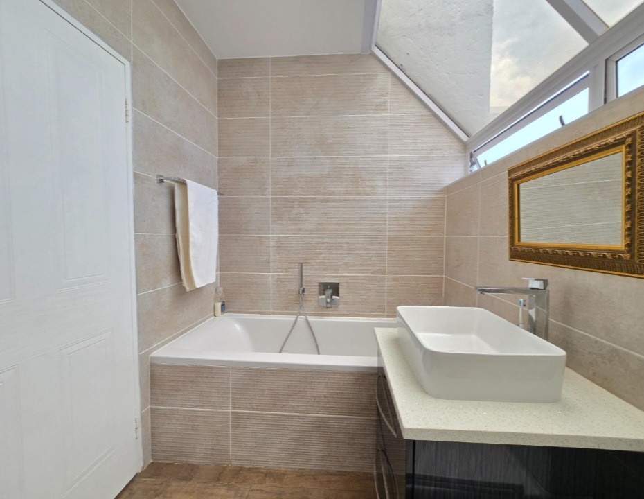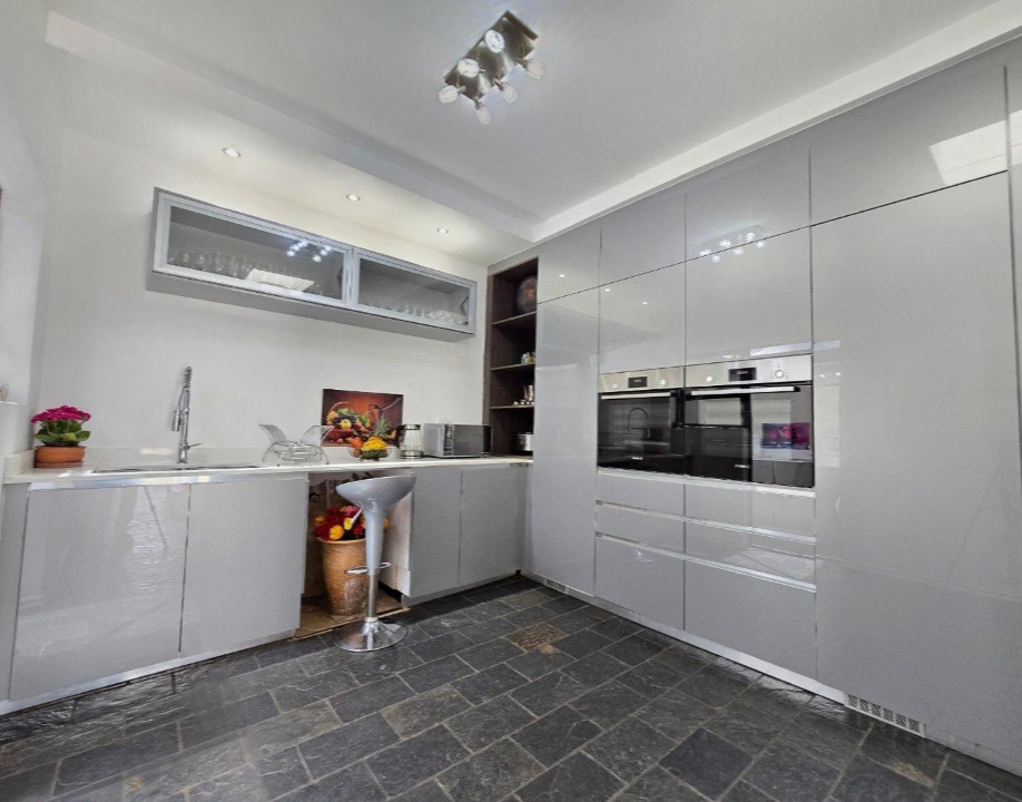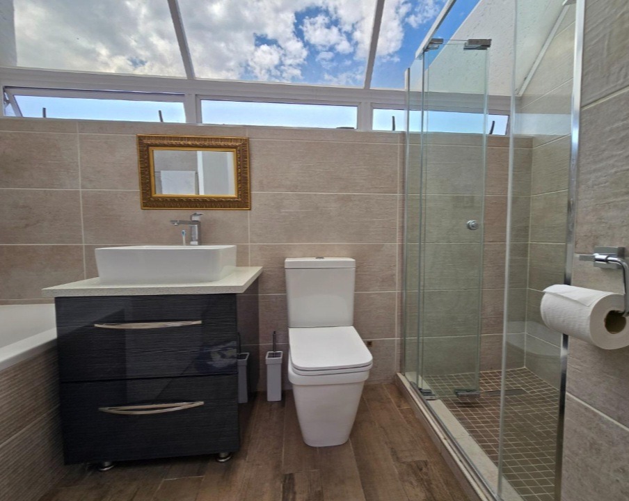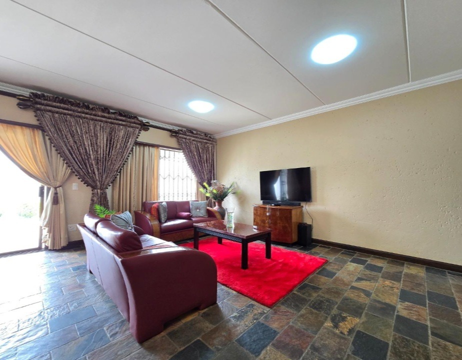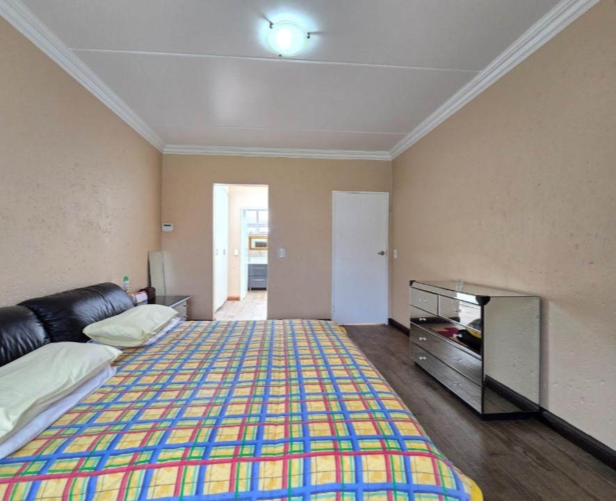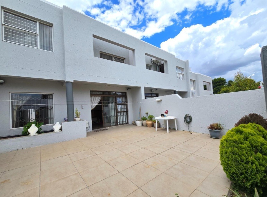 The allure extends outdoors to a captivating private garden, an idyllic setting for relaxation and alfresco gatherings, complemented by a sparkling swimming pool – a true oasis for leisure. Security is paramount, with electric fencing, burglar bars, and a security gate providing peace of mind within this totally walled complex. Additional conveniences include double garages, ample parking, fibre connectivity, and a pet-friendly environment, catering to every modern need.