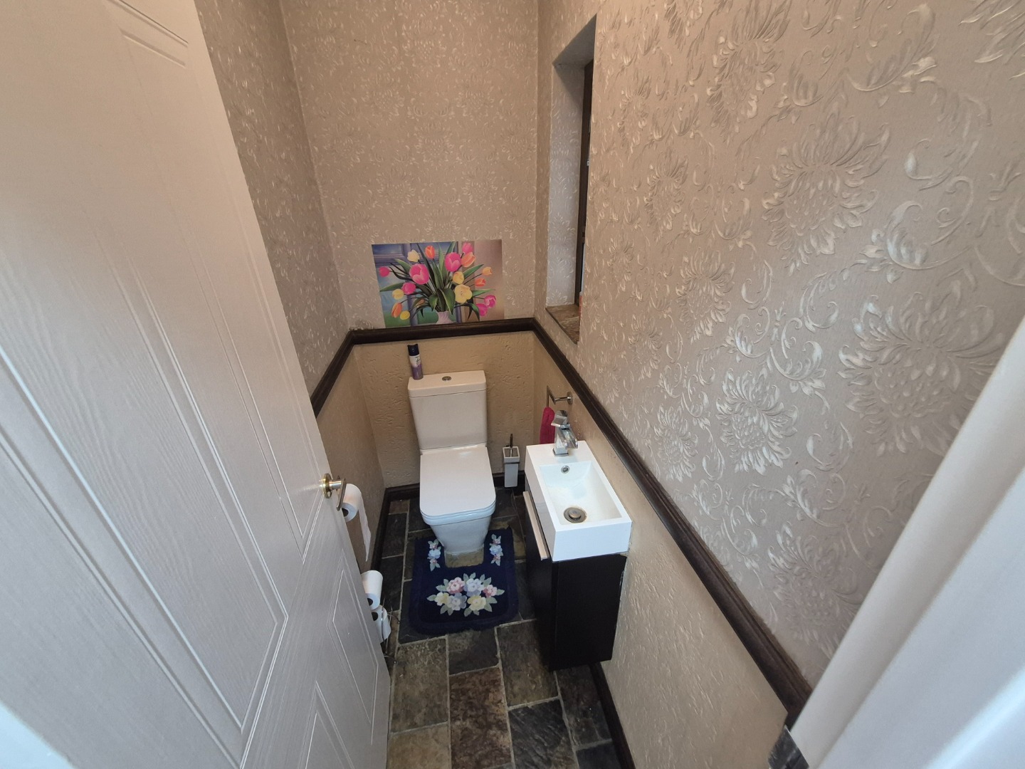 Accommodation comprises three generously sized bedrooms, including a master suite that benefits from a private en-suite bathroom and a walk-in closet, offering a personal sanctuary. A further shared bathroom and a guest toilet ensure convenience for both residents and visitors.