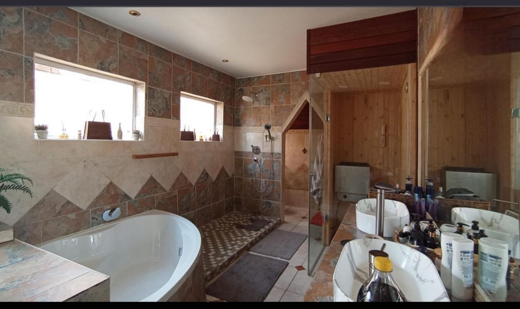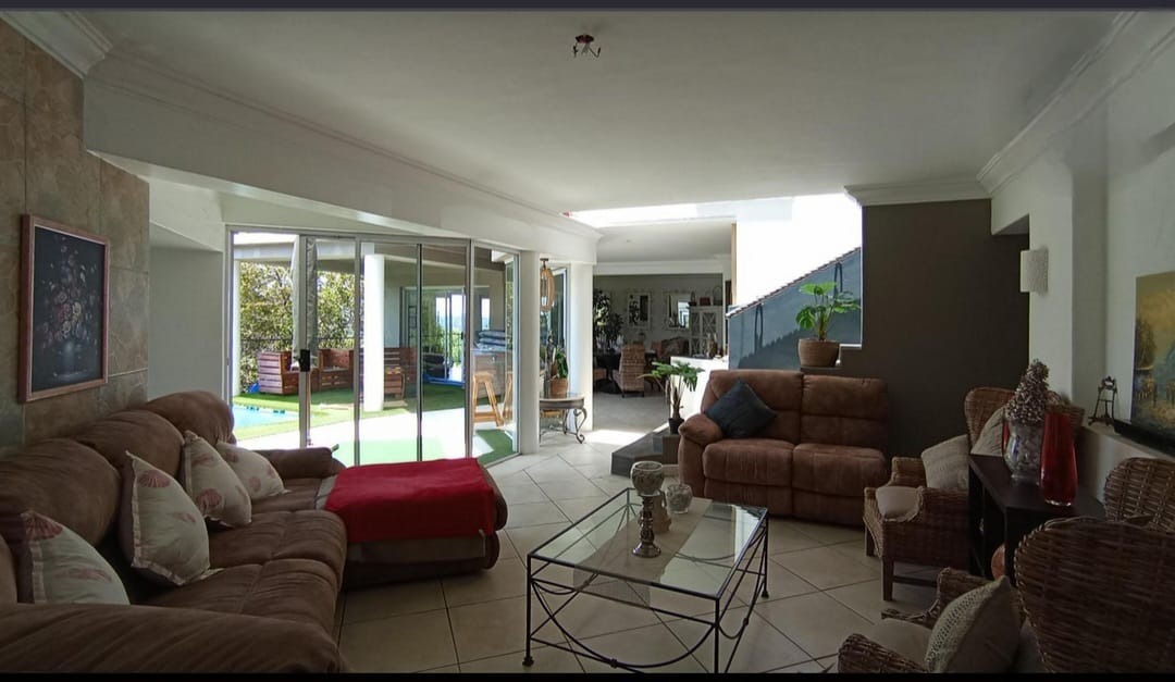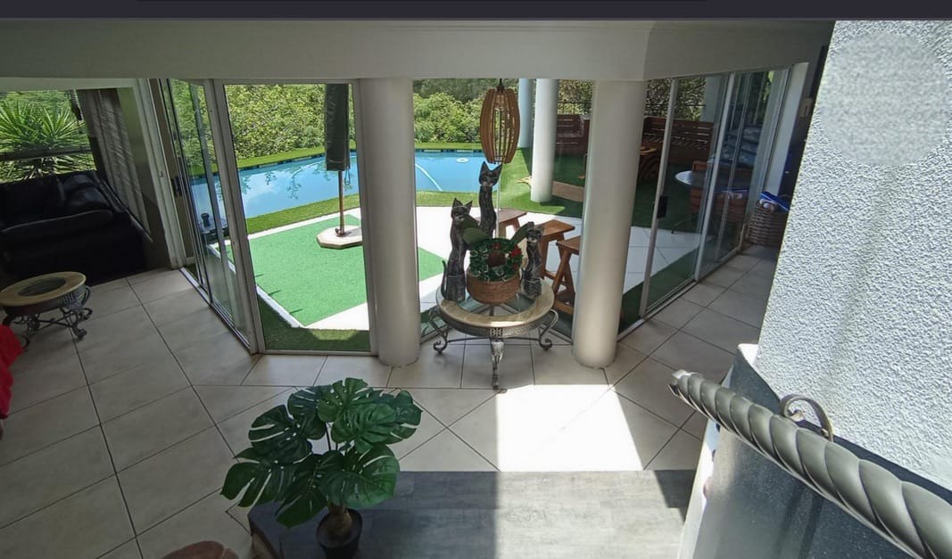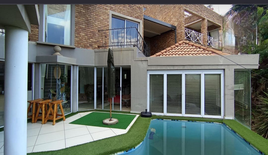 Discover this inviting 4-bedroom, 4-bathroom residence nestled in the suburban heart of Glenvista, Johannesburg. Boasting a well-maintained brick exterior and a charming wooden garage door, this property offers immediate kerb appeal. Enjoy panoramic views of lush green hills, providing a serene backdrop to daily life. Inside, the home features a spacious 416 sqm floor plan with four lounges, a dedicated dining room, a study, and a well-appointed kitchen with a pantry, ensuring ample space for relaxation and entertaining. Large glass sliding doors seamlessly connect the interiors to the outdoors, bathing the rooms in natural light. A dedicated bar area with a granite countertop and a stone accent wall adds a sophisticated touch, complemented by durable tiled flooring and elegant crown molding throughout. The residence comprises four comfortable bedrooms and four bathrooms, including two ensuites, providing privacy and convenience. Step outside to a private swimming pool, perfect for enjoying the South African climate, surrounded by a paved patio and low-maintenance artificial turf. The expansive 2607 sqm erf also includes a garden, a flatlet, and practical amenities like two garages and four additional parking spaces, with pets allowed. Key Features: * 4 Bedrooms, 4 Bathrooms (2 Ensuites) * 4 Lounges, 1 Dining Room, 1 Study * Dedicated Bar Area * Private Swimming Pool with Scenic Views * 2 Garages, 4 Parking Spaces * Expansive 2607 sqm Erf * Includes a Flatlet * Pets Allowed