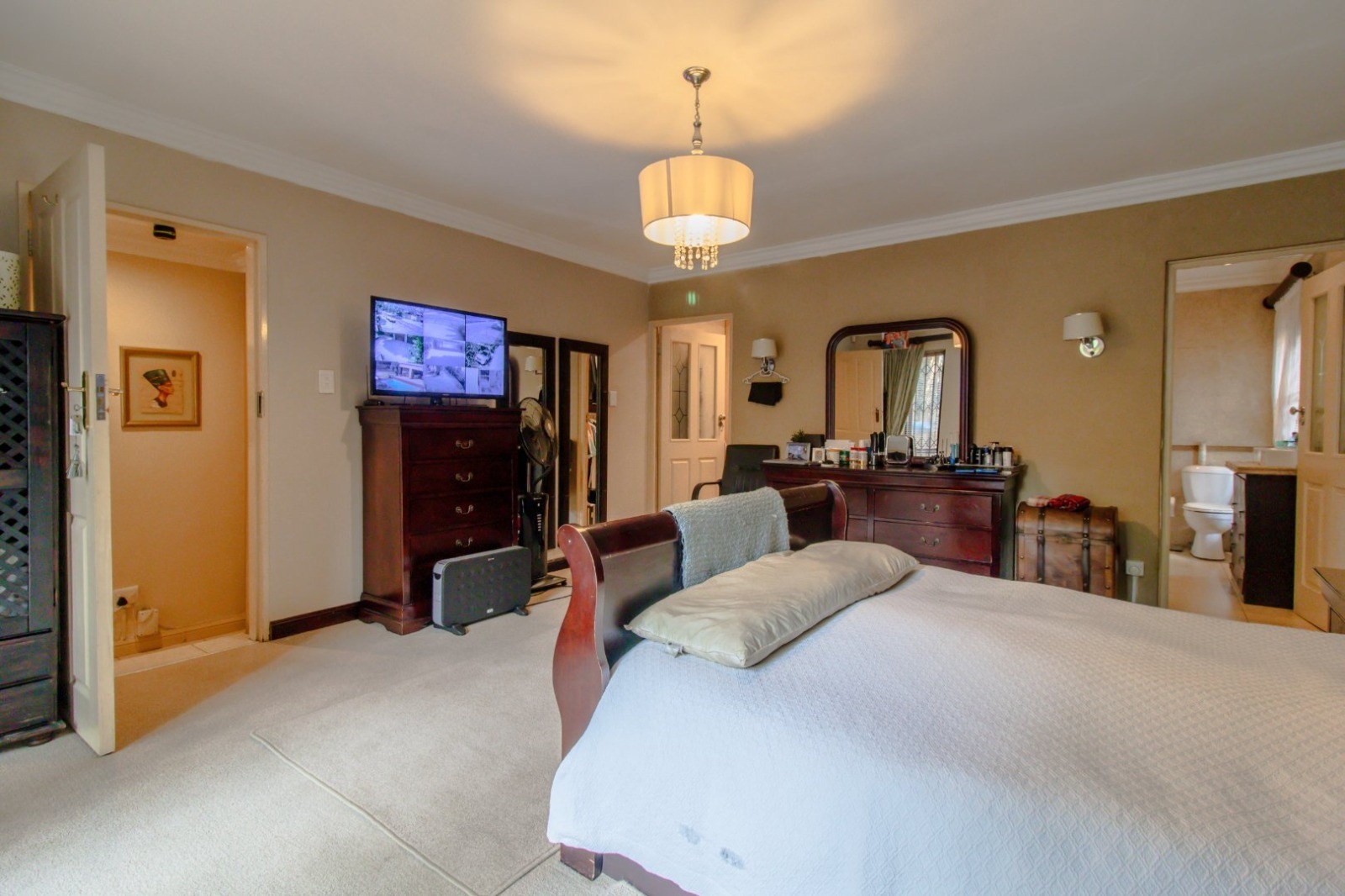 Discover this exceptional residential property, offering a generous five bedrooms and three and a half bathrooms, designed to accommodate a modern family's needs. A standout feature is the thoughtfully integrated flatlet, serving as a versatile fifth bedroom. This self-contained space includes its own lounge and an en-suite bathroom with a shower, providing ideal additional living quarters. Directly connected to the main kitchen and situated on a single level, this flatlet ensures easy access and is particularly well-suited for elderly family members or guests, offering a comfortable and wheelchair-friendly environment.