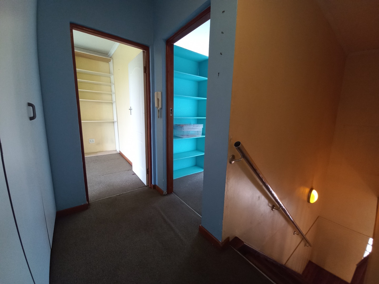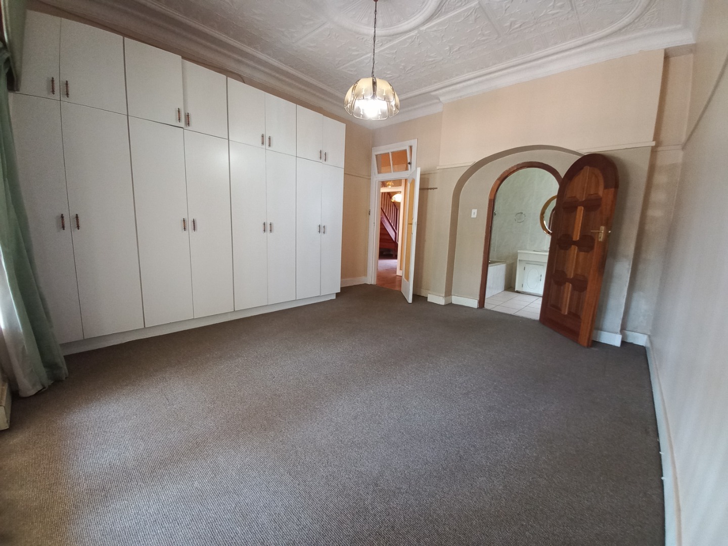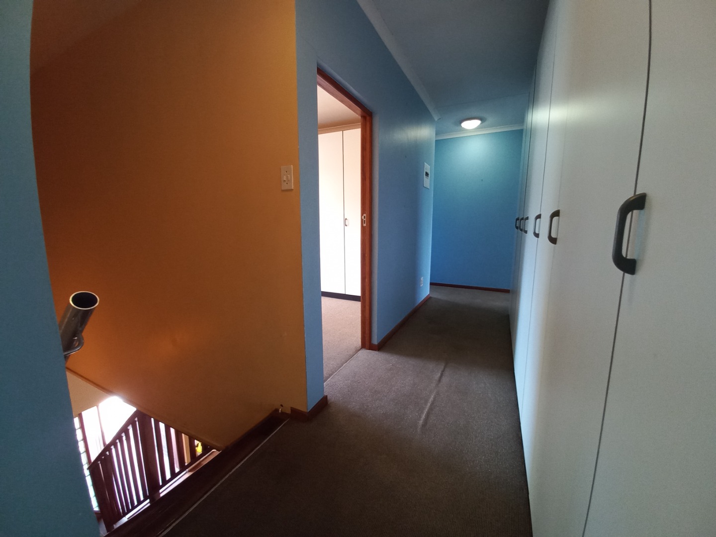 Taking the beautiful wooden staircase upstairs you are welcomed with ample built in cupboard space to fit linen, Bathroom supplies as well as extra clothing space etc. To the left you will find your 4th bedroom it is cozy and offers a peaceful escape including spacious built in cupboards, the 5th and 2nd master bedroom is simply Devine with an expansive floor to ceiling length open cupboards and massive bedroom space with an incredible patio that allows space for a lovely couch set and table that will let you take in a glorious 180 degree view of jhb whether it be for early morning sunrises and tea or an evening sunset with a glass of wine or cognac, the 6th bedroom is spacious with a lovely view and offering spacious built in cupboards, your 7th bedroom is spacious with built in cupboard space as well as a en-suite bathroom that offers 2 toilets, bath shower and his and her sink, it also shares the lovely 180 degree view as well as the patio, there is a 3rd bathroom which serves as a space for bedroom 4 and 6.