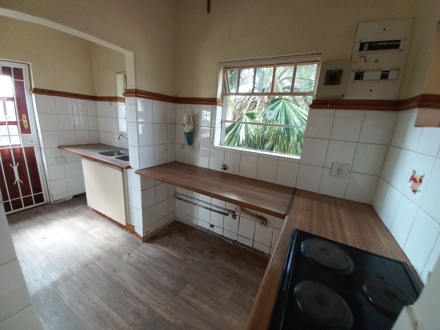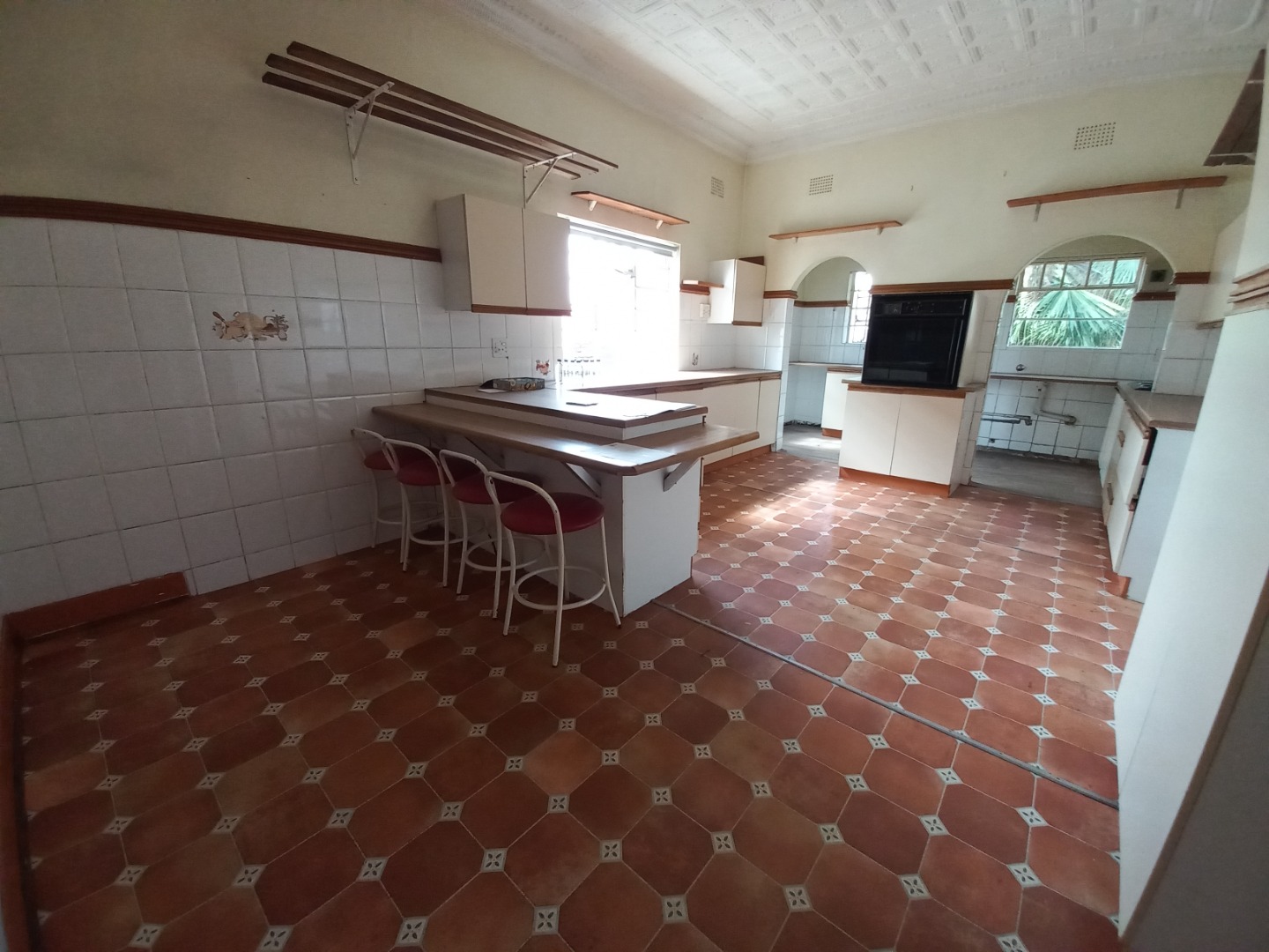 The kitchen is the heart of the home, with a lovely long kitchen countertop and ample cupboard space and shelves, with your oven built in as well as a scullery with your built stove top, the kitchen has a exit which allows you to go directly to the washing line as well as parking.