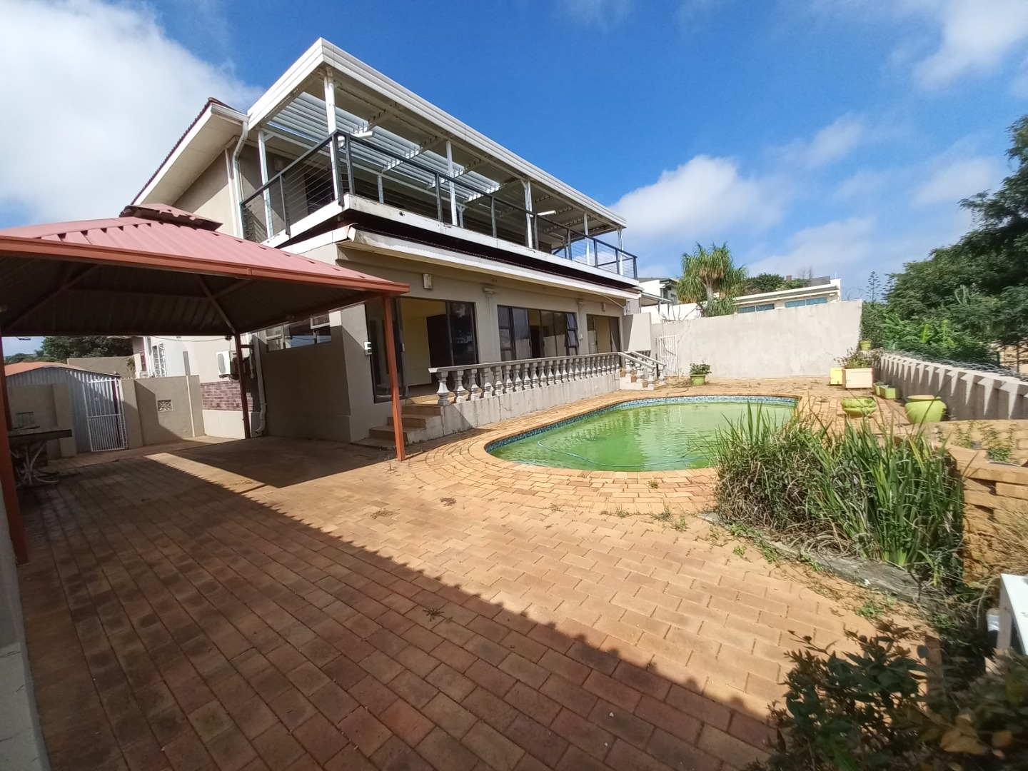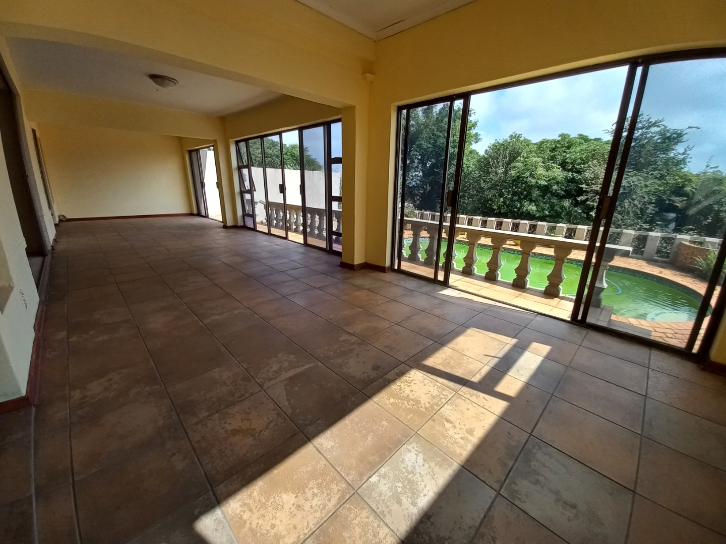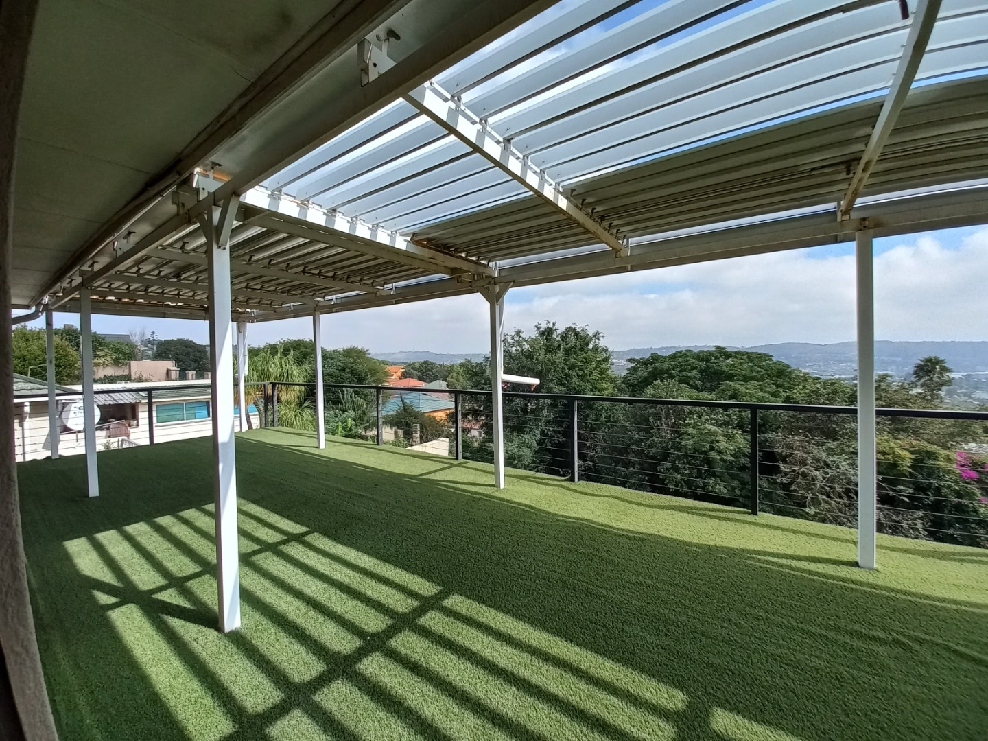 The pool area offers a wonderful view of jhb and has a space with covering perfect for family gatherings providing enough space for a pool side table, chairs or even a weather friendly couch.