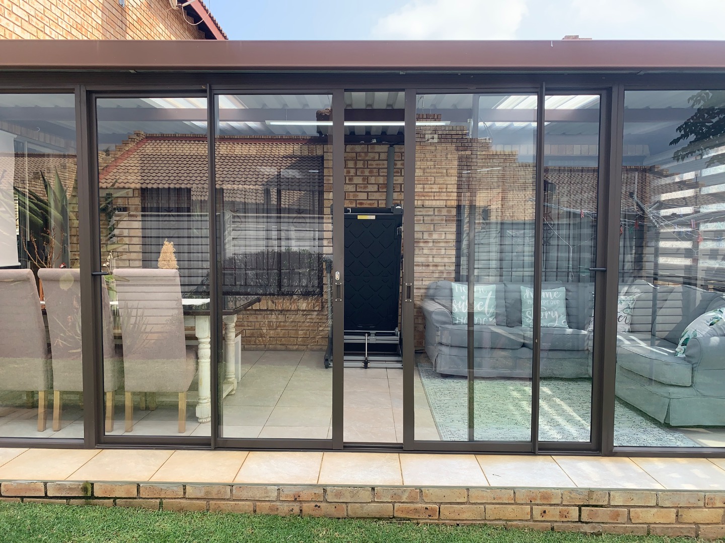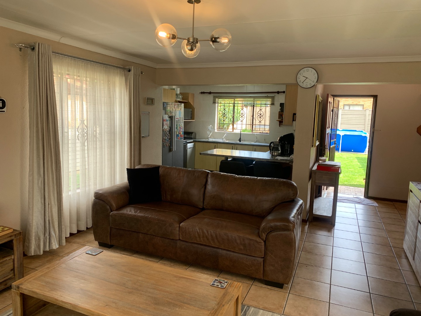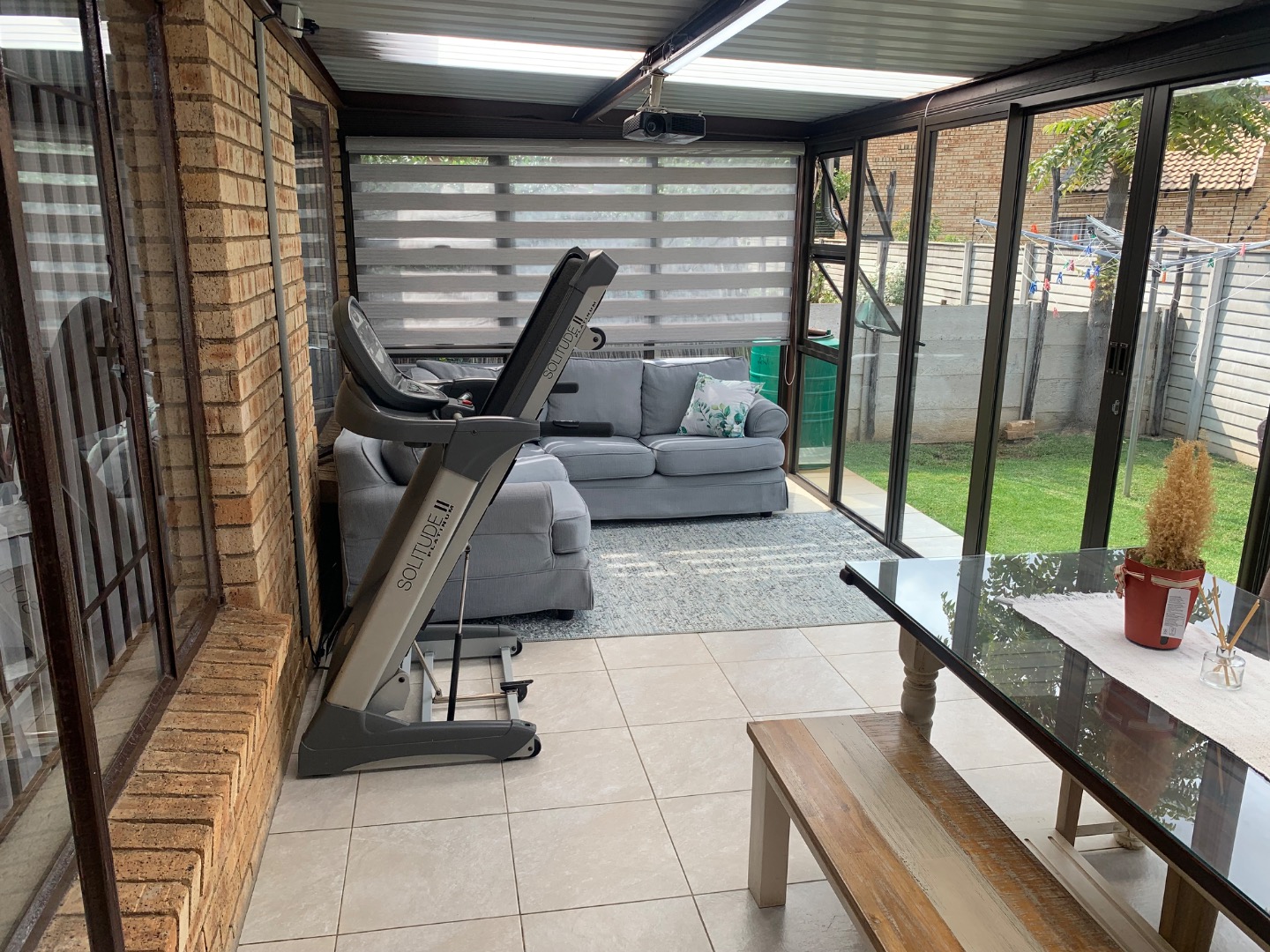 The interior features a functional layout, including a well-equipped kitchen, a dedicated dining room perfect for entertaining, and a comfortable lounge area. The property benefits from air conditioning, ensuring a pleasant environment throughout the year. Sliding doors enhance the flow between indoor and outdoor spaces, promoting a bright and airy atmosphere.